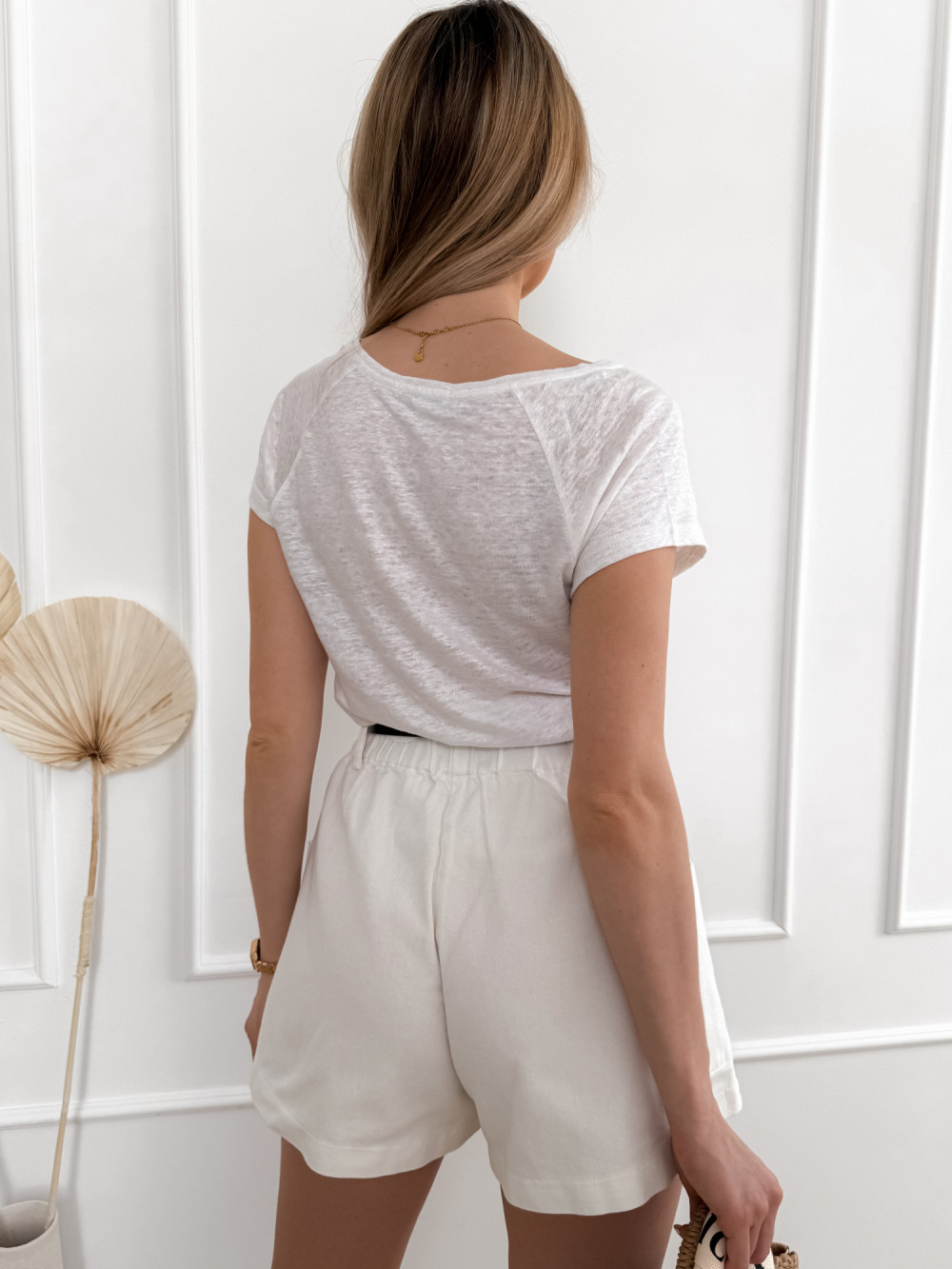 T-shirt BRIN z dekoltem V w kolorze śmietankowym to idealna propozycja na lato dla miłośniczek naturalnych tkanin i ponadczasowej klasyki. Uszyty w 100% z lnu, zapewnia przewiewność, lekkość i pełen komfort noszenia nawet w największe upały. Subtelny dekolt w serek dodaje kobiecego uroku, a śmietankowy odcień pasuje do wszystkiego i rozświetla stylizację. Lniany T-shirt BRIN świetnie sprawdzi się zarówno w casualowych zestawach, jak i bardziej eleganckich połączeniach – to niezastąpiona baza w letniej garderobie.