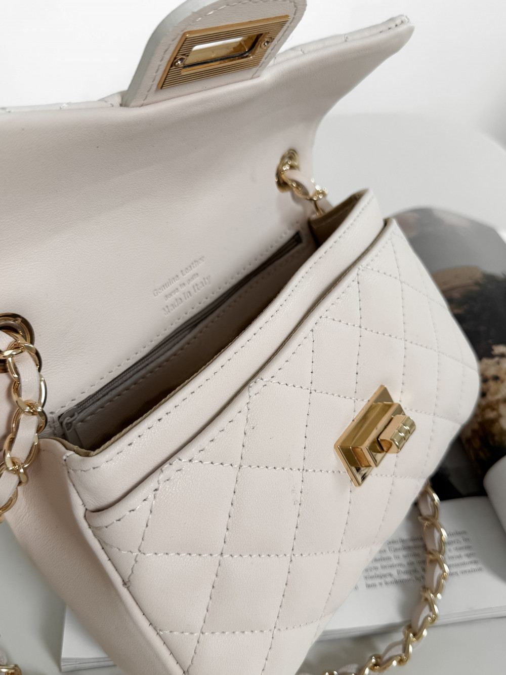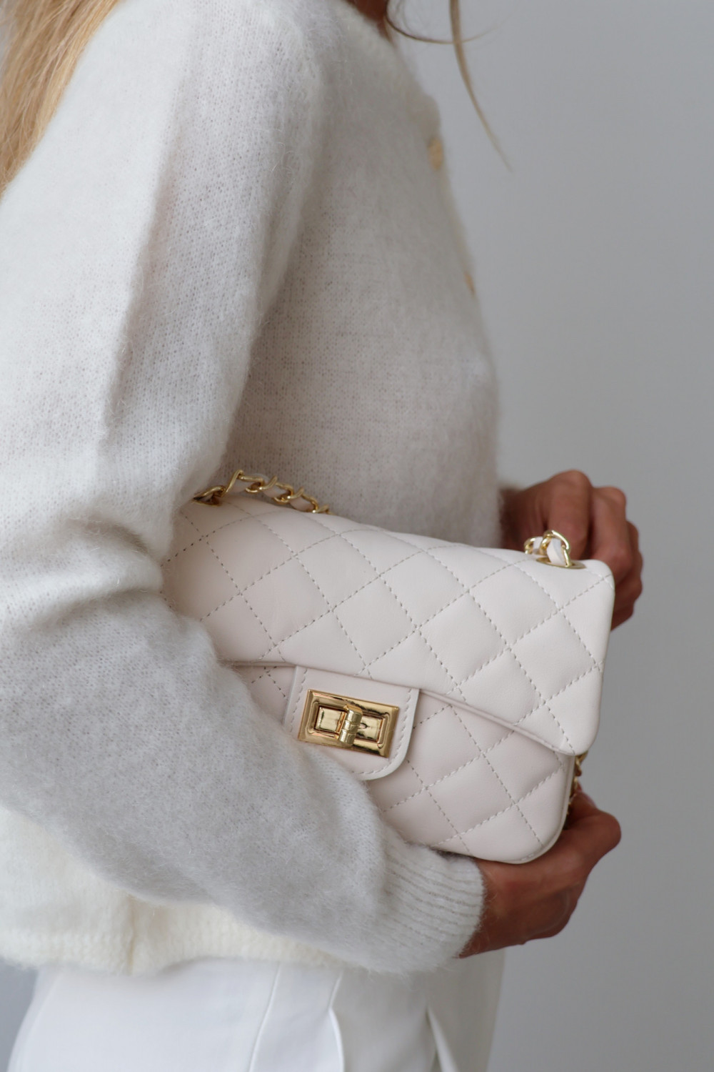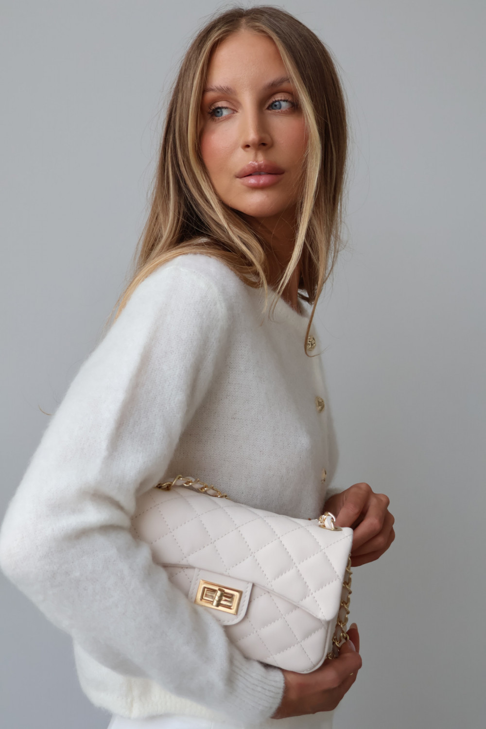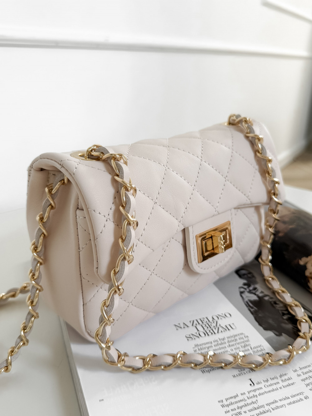 Kompaktowa elegancja bez kompromisów – torebka VANITY MINI w odcieniu krem to esencja klasyki w nowoczesnym wydaniu. Wykonana w 100% z najwyższej jakości skóry naturalnej, zachwyca pikowanym wzorem i subtelnym, jasnym odcieniem, który doskonale komponuje się z każdą stylizacją. Precyzyjne wykończenie i dbałość o detale podkreślają luksusowy charakter modelu.