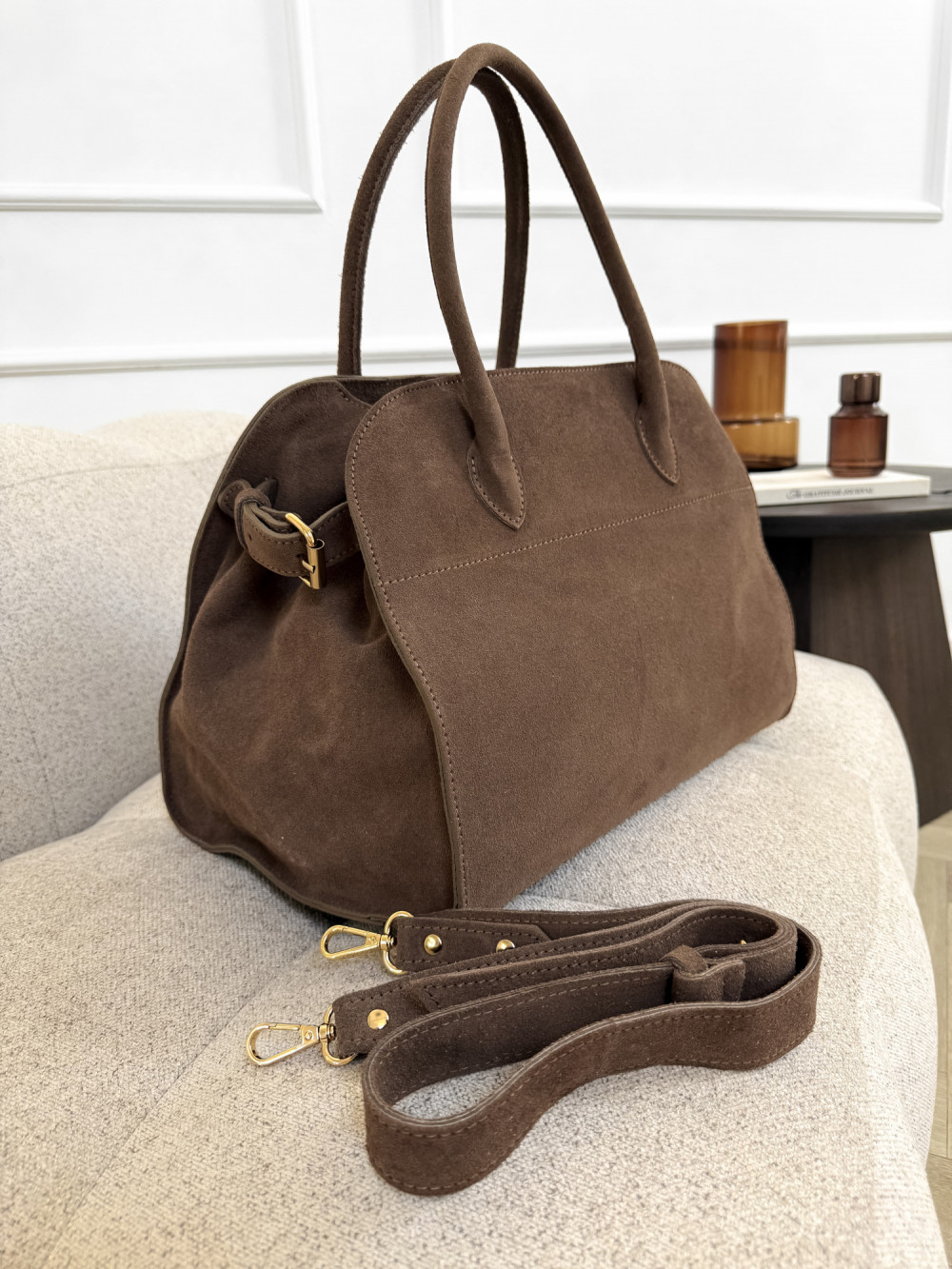 Torebka ROV z naturalnej skóry zamszowej w odcieniu mocha to elegancki, ponadczasowy model, który wnosi luksusowy akcent do każdej stylizacji. Miękka skóra zamszowa zachwyca przyjemną fakturą i subtelnym, matowym połyskiem, a ciepły odcień mocha nadaje torebce uniwersalnego i wyrafinowanego charakteru. ROV sprawdzi się zarówno w codziennych, jak i bardziej eleganckich zestawach, dodając stylowego i ponadczasowego akcentu.