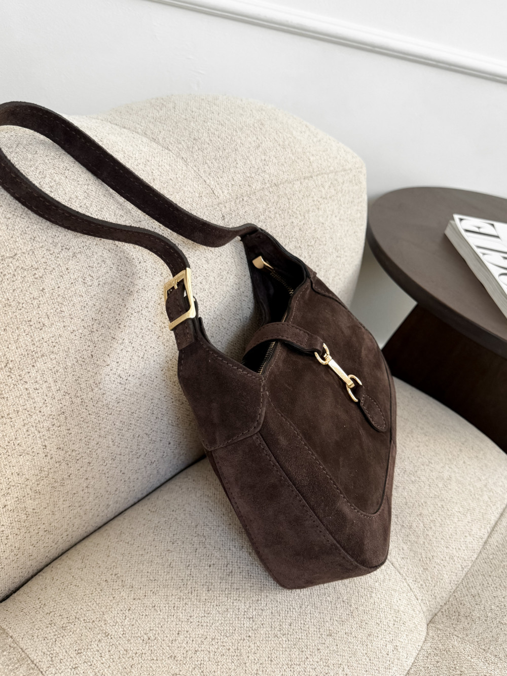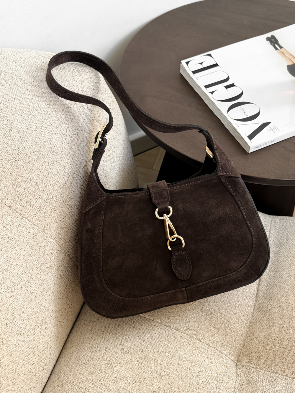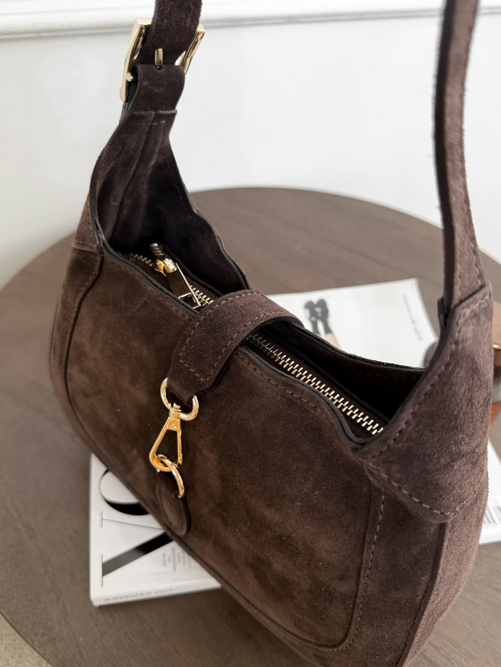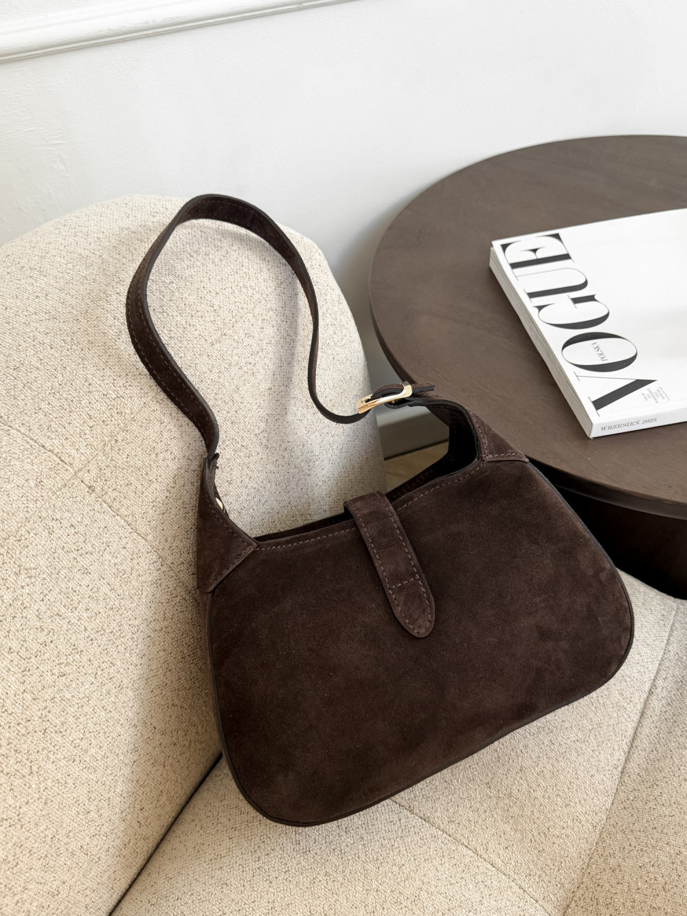 Torebka typu HOBO 100% skóra zamszowa MAISON w kolorze czekolady to elegancki dodatek, który doda klasy każdej stylizacji. Ta miękka torebka hobo w głębokim czekoladowym odcieniu łączy luksus skóry zamszowej z praktycznym designem, który świetnie dopasowuje się do sylwetki. Torebka typu HOBO MAISON będzie idealna na codzienne wyjścia, spotkania ze znajomymi czy wieczorne spacery po mieście. Miękka skóra zamszowa jest przyjemna w dotyku, trwała i naturalnie odporna na zarysowania, a złote detale dodają jej subtelnego szyku, sprawiając, że każda stylizacja zyskuje wyrafinowany charakter.