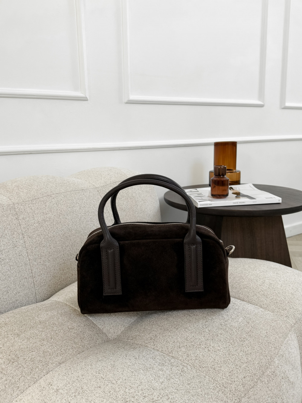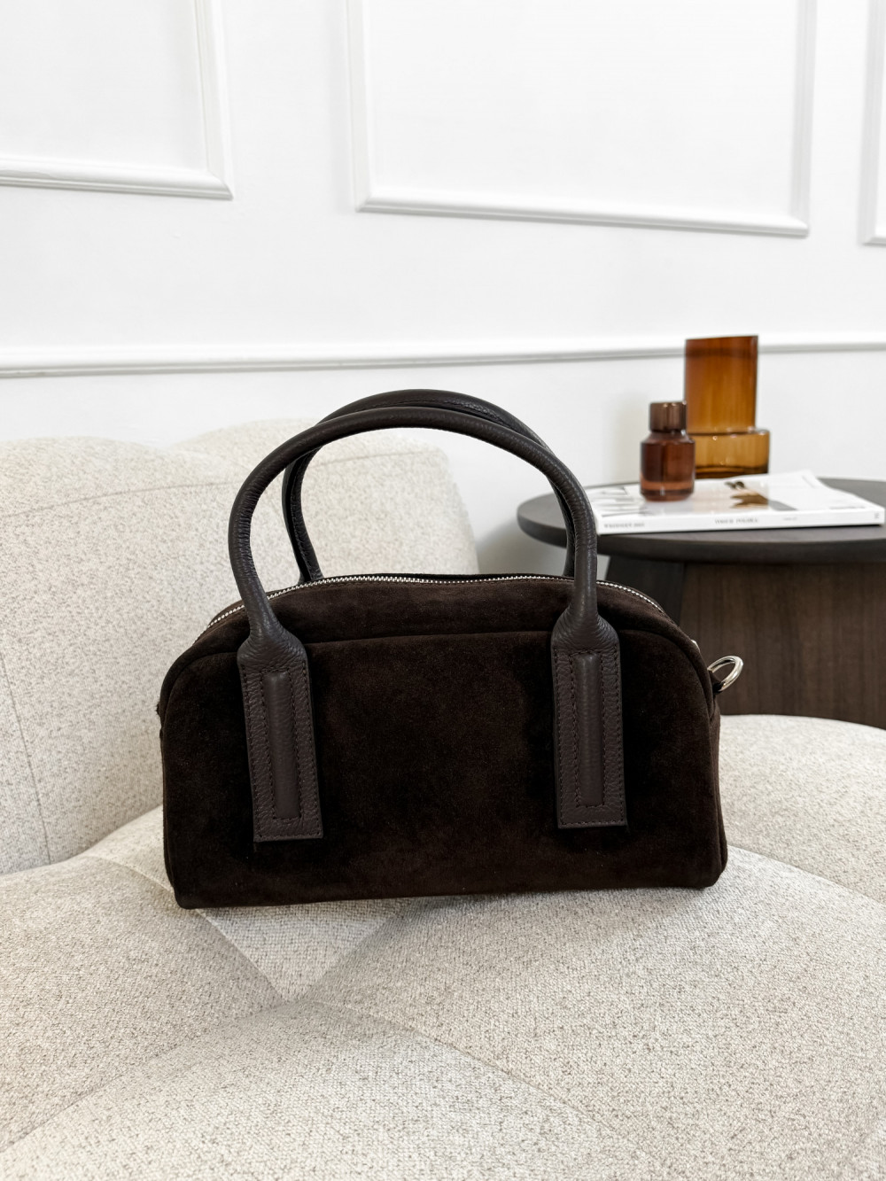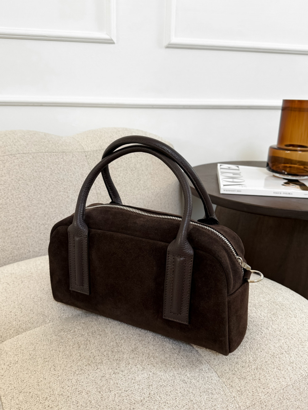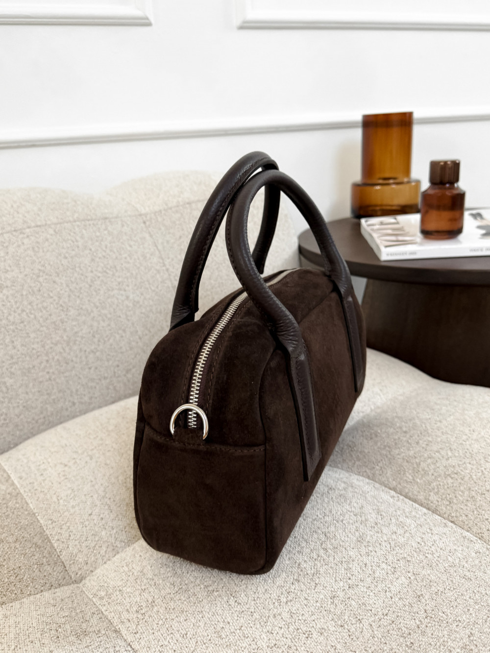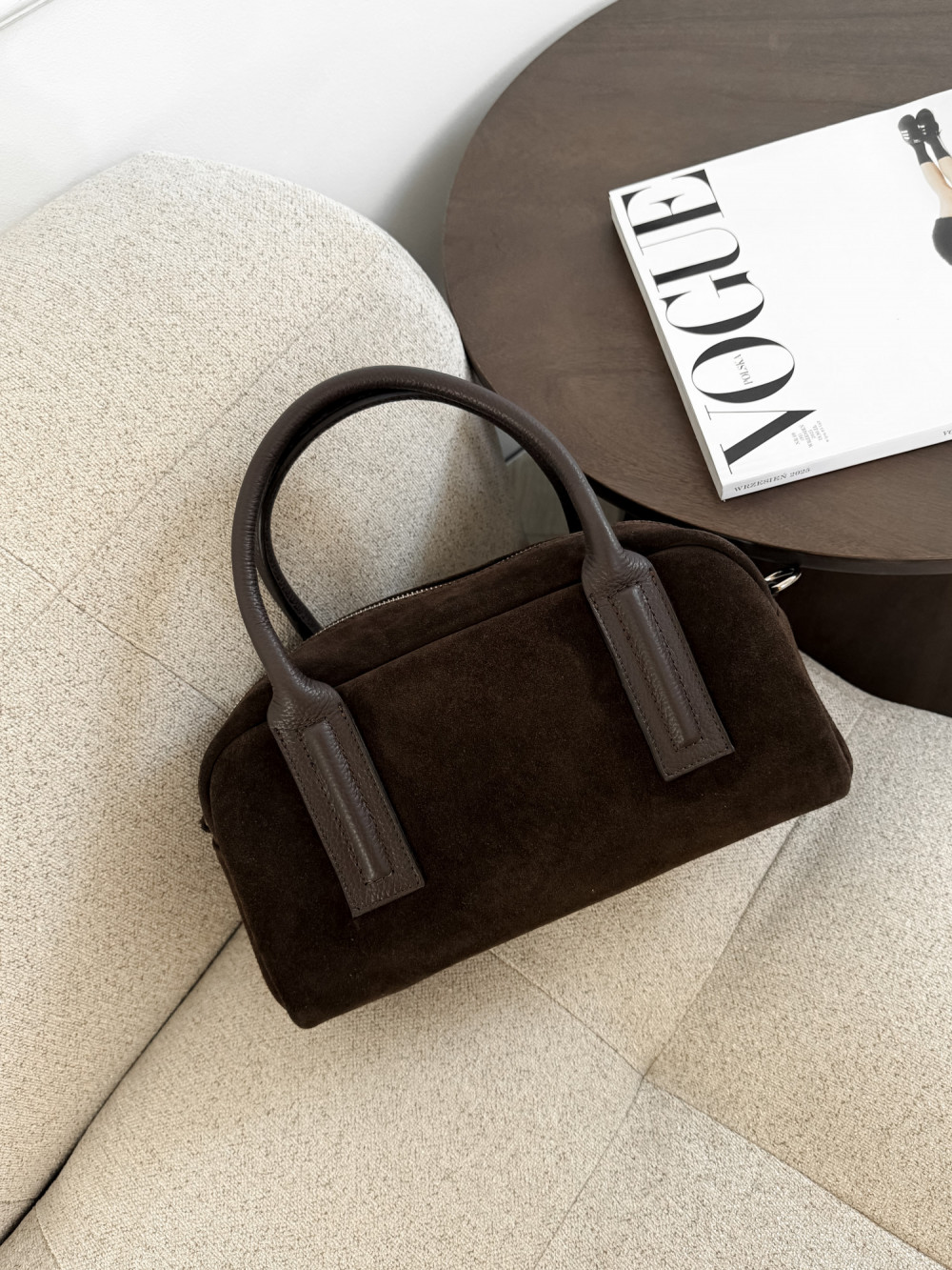 Torebka LASSE z naturalnej skóry zamszowej w kolorze czekolady to elegancki i ponadczasowy model, który wprowadza luksusowy akcent do każdej stylizacji. Miękka skóra zamszowa zachwyca przyjemną fakturą i subtelnym, matowym połyskiem, a głęboki odcień czekolady nadaje torebce wyrafinowanego, uniwersalnego charakteru. LASSE świetnie sprawdzi się zarówno w codziennych, jak i bardziej eleganckich zestawach, dodając stylowego i ponadczasowego akcentu.