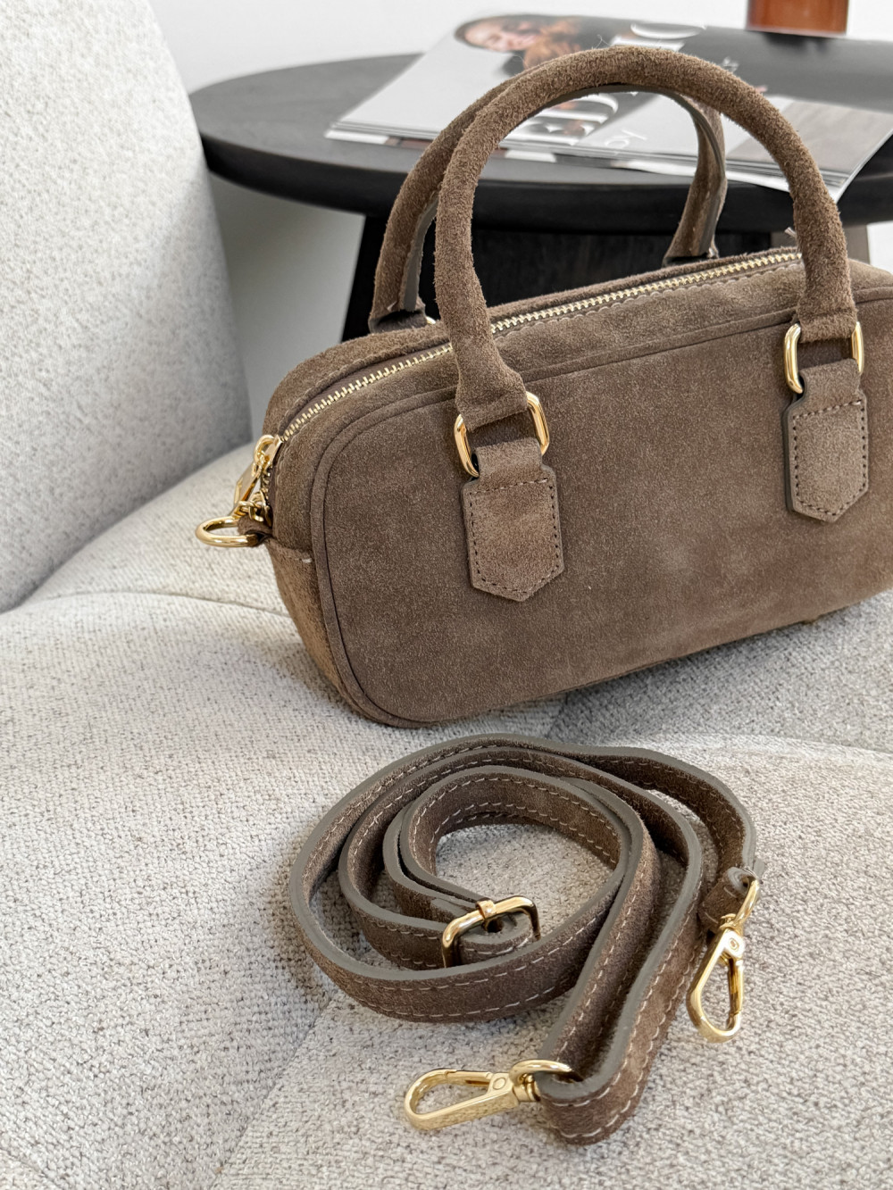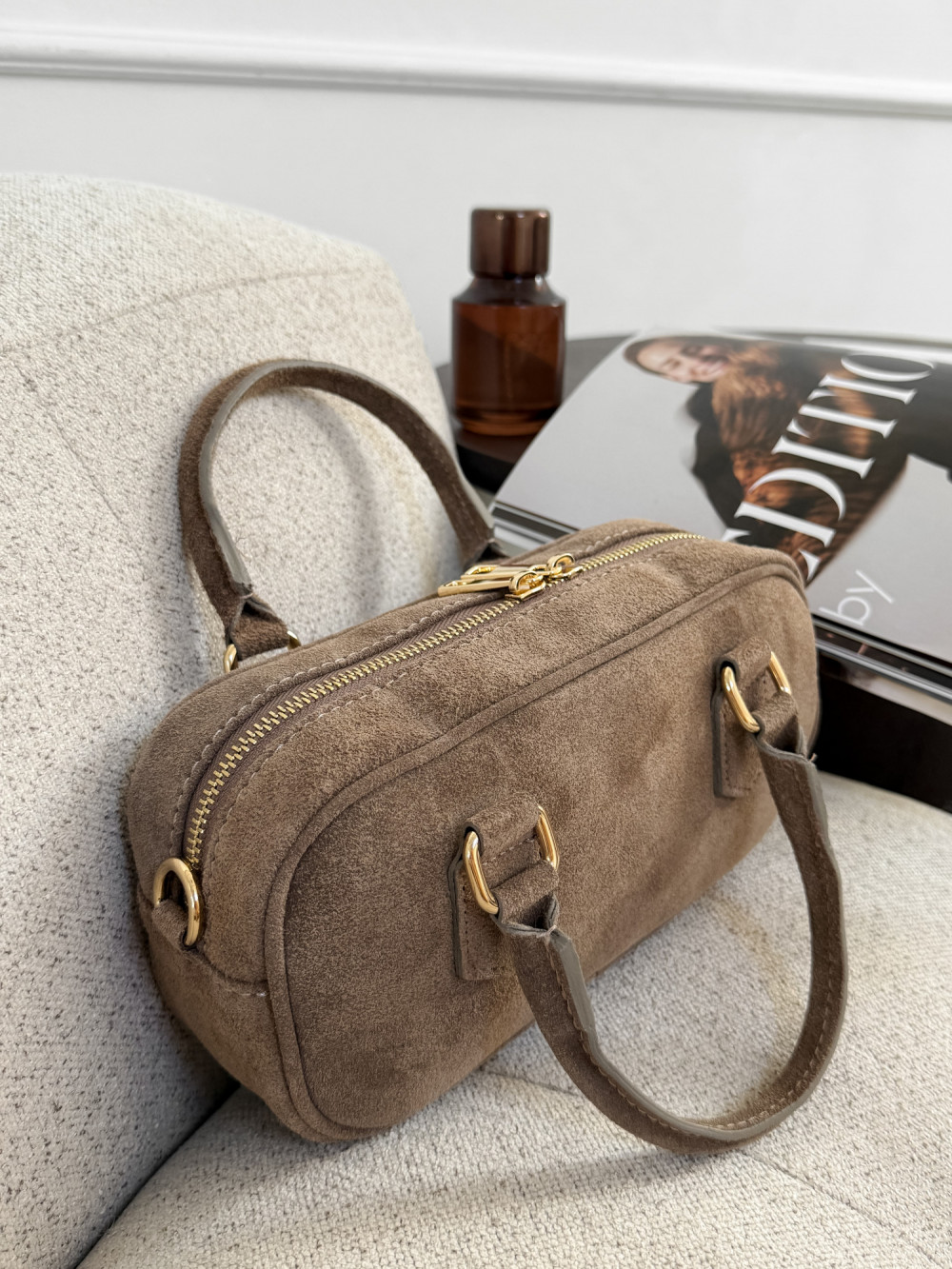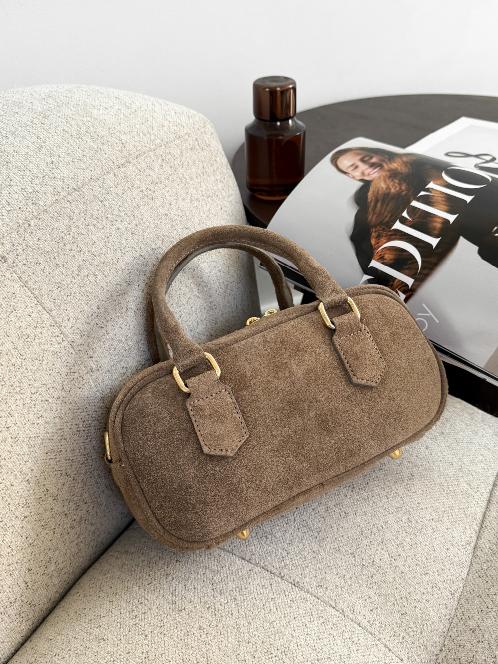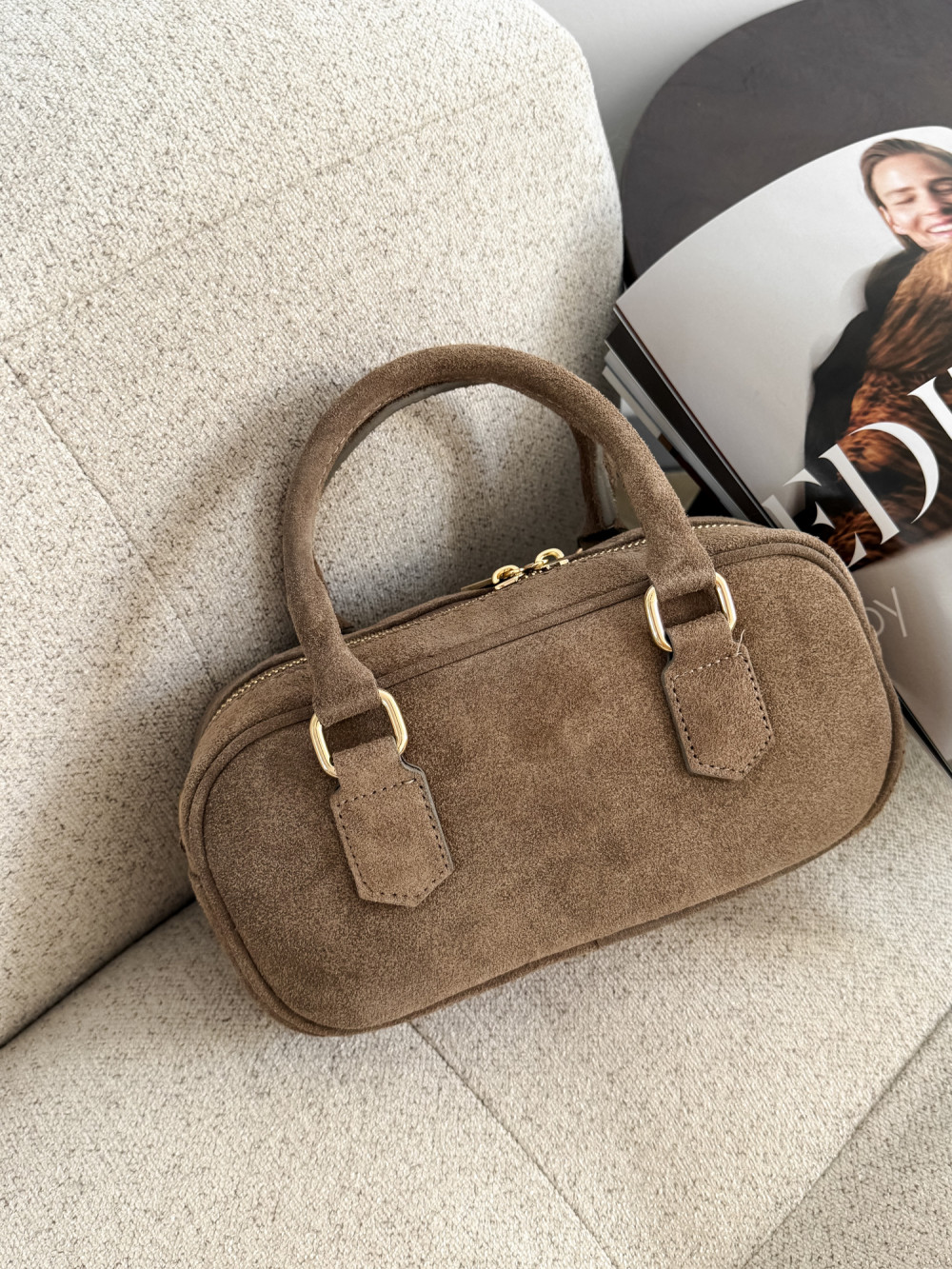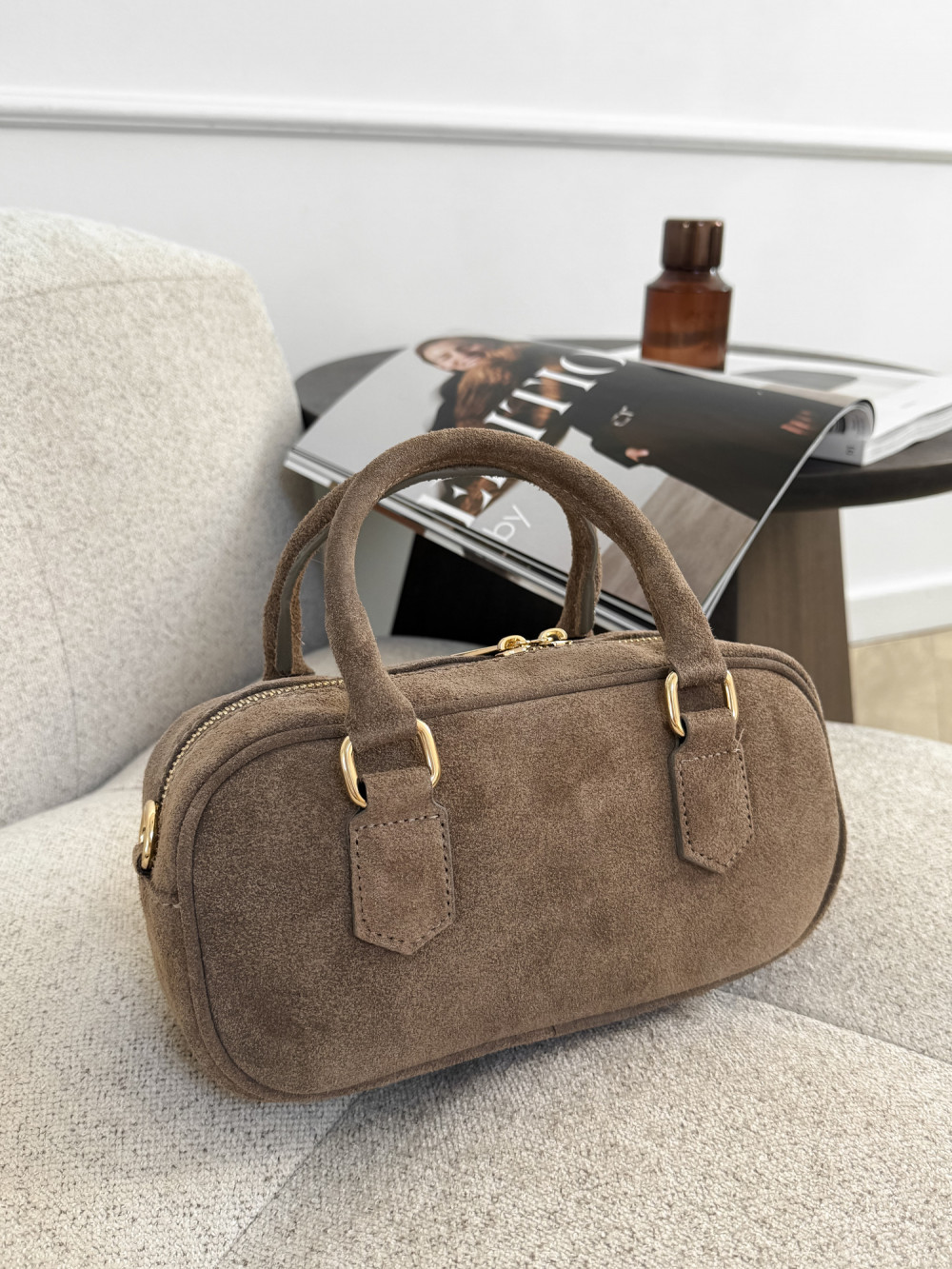 Torebka BOWL z naturalnej skóry zamszowej w odcieniu mocha to elegancki i nowoczesny model, który wnosi subtelny, luksusowy akcent do każdej stylizacji. Miękka skóra zamszowa zachwyca przyjemną fakturą, a ciepły odcień mocha nadaje torebce uniwersalnego i wyrafinowanego charakteru. BOWL świetnie sprawdzi się zarówno w codziennych, jak i bardziej eleganckich zestawach, dodając stylowego i ponadczasowego akcentu.