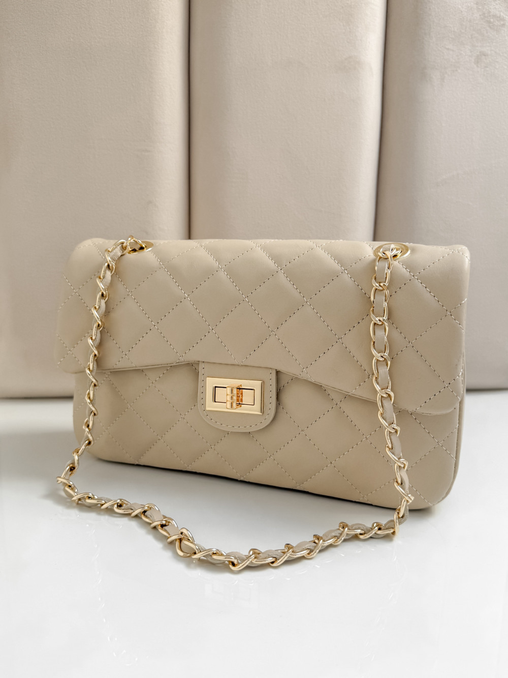Elegancja, która nie zna kompromisów – torebka VANITY w odcieniu jasny beż to kwintesencja klasyki w nowoczesnym wydaniu. Wykonana w 100% z najwyższej jakości skóry naturalnej, zachwyca subtelnym, uniwersalnym odcieniem, który świetnie komponuje się z każdą stylizacją. Pikowany wzór dodaje jej wyjątkowego charakteru, a precyzyjne wykończenie świadczy o dbałości o każdy detal.