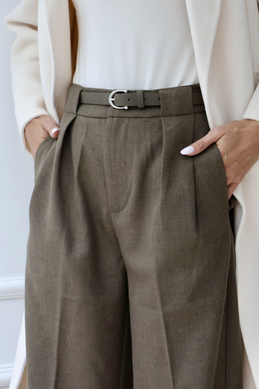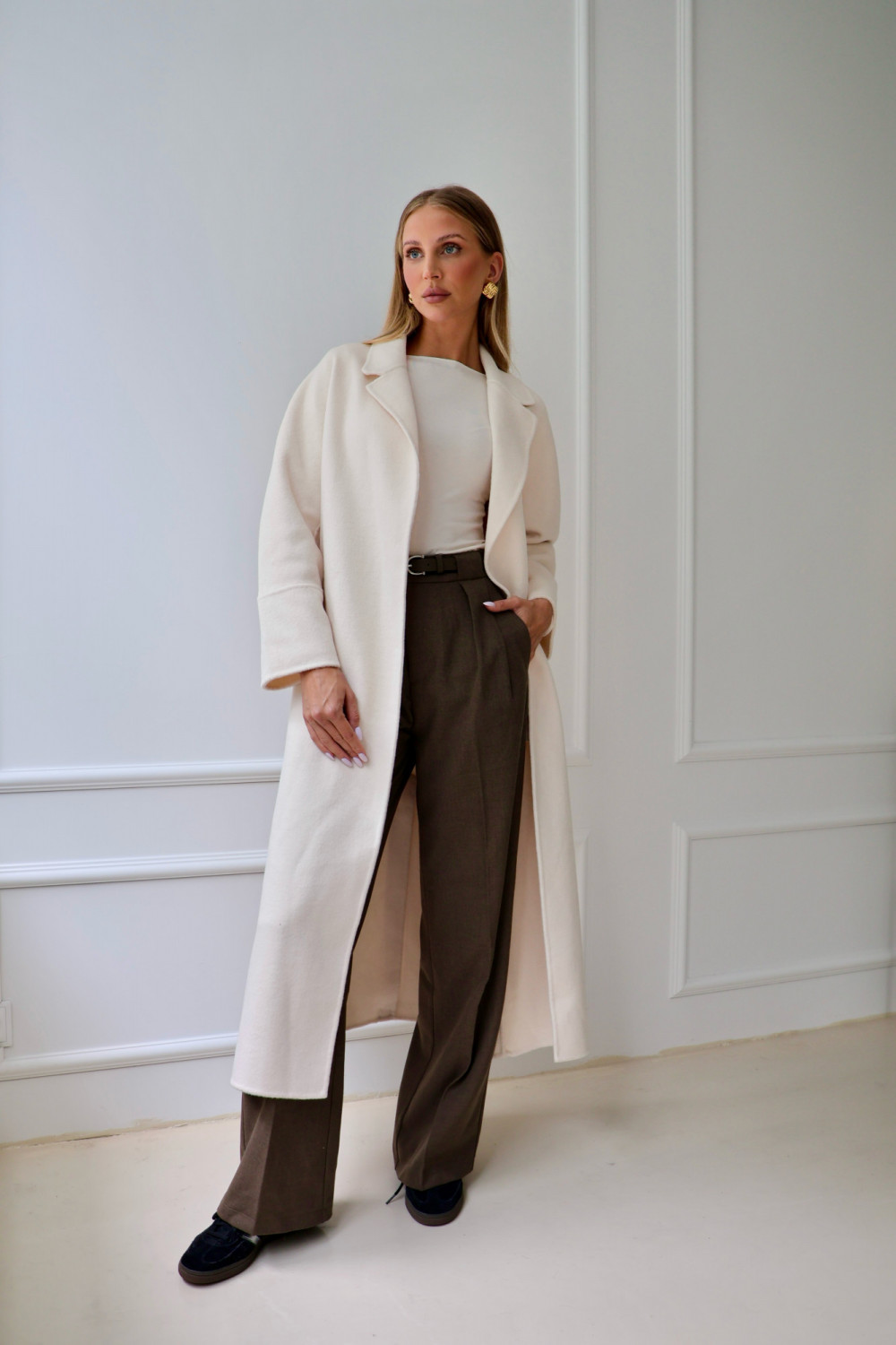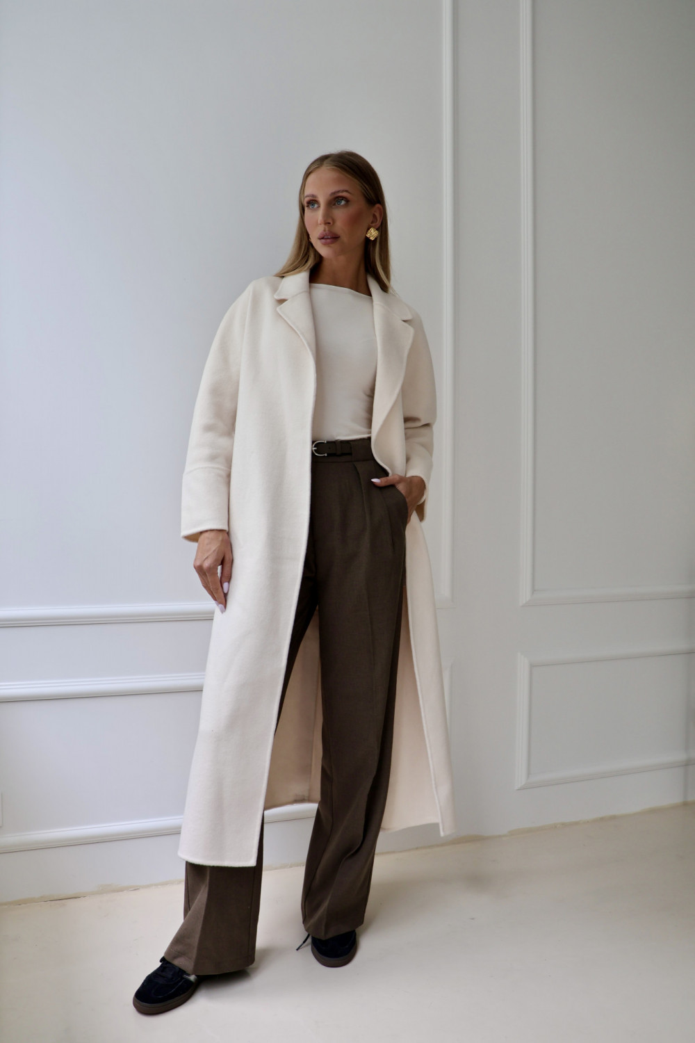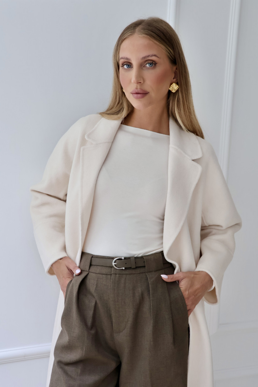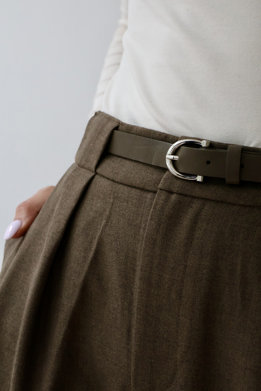 Spodnie rozszerzane CLARISE z paskiem i wysokim stanem w brązie to elegancki model, który podkreśla talię i dodaje lekkości sylwetce. Miękka mieszanka bawełny i poliestru zapewnia komfort noszenia, a elastan gwarantuje elastyczne dopasowanie i swobodę ruchów. Brązowy kolor sprawia, że spodnie CLARISE łatwo zestawić zarówno z koszulą, jak i casualowym swetrem, tworząc stylizacje pełne szyku. Spodnie rozszerzane z wysokim stanem i paskiem CLARISE to idealny wybór dla osób ceniących wygodę, elegancję i ponadczasowy styl.