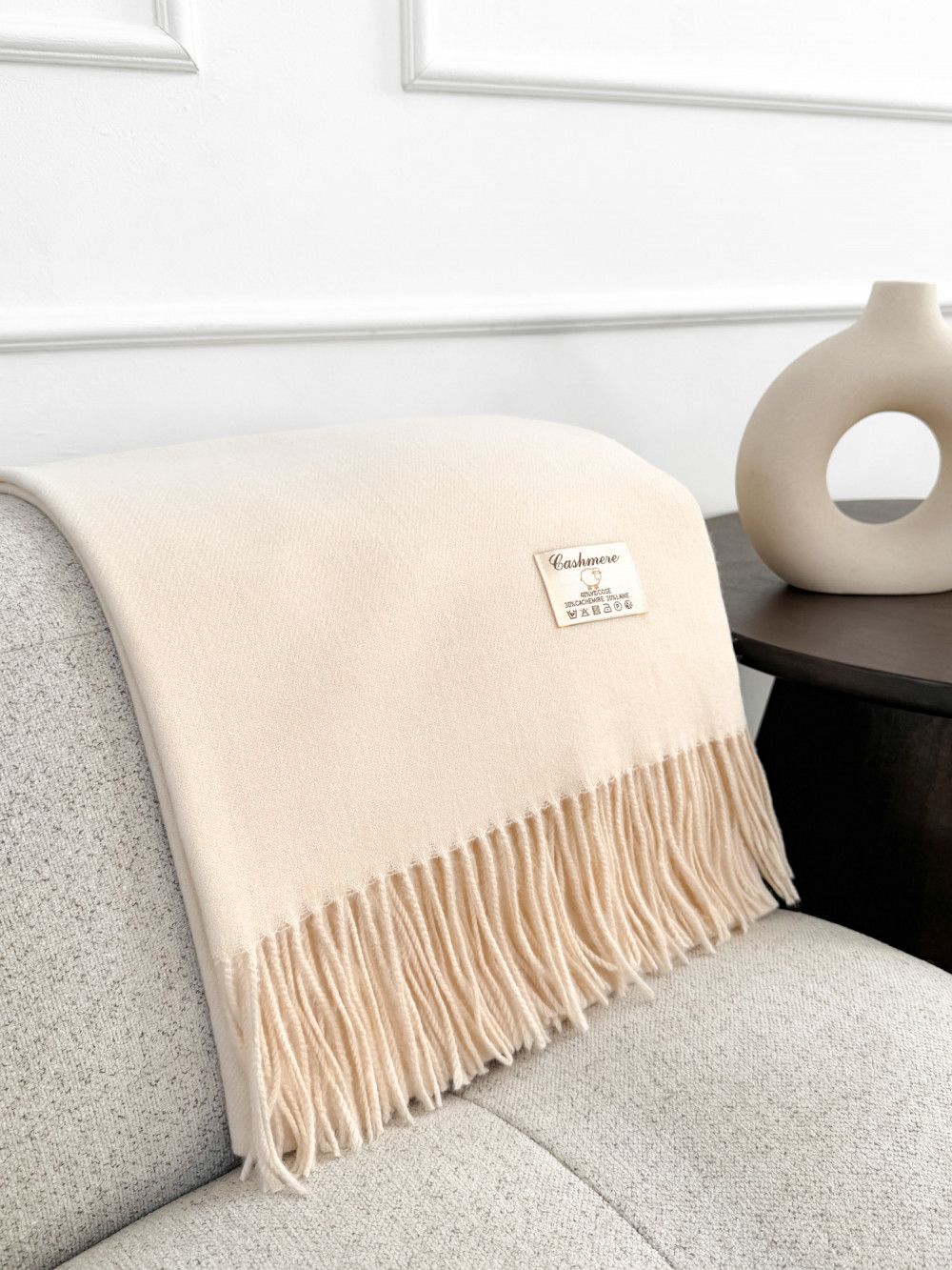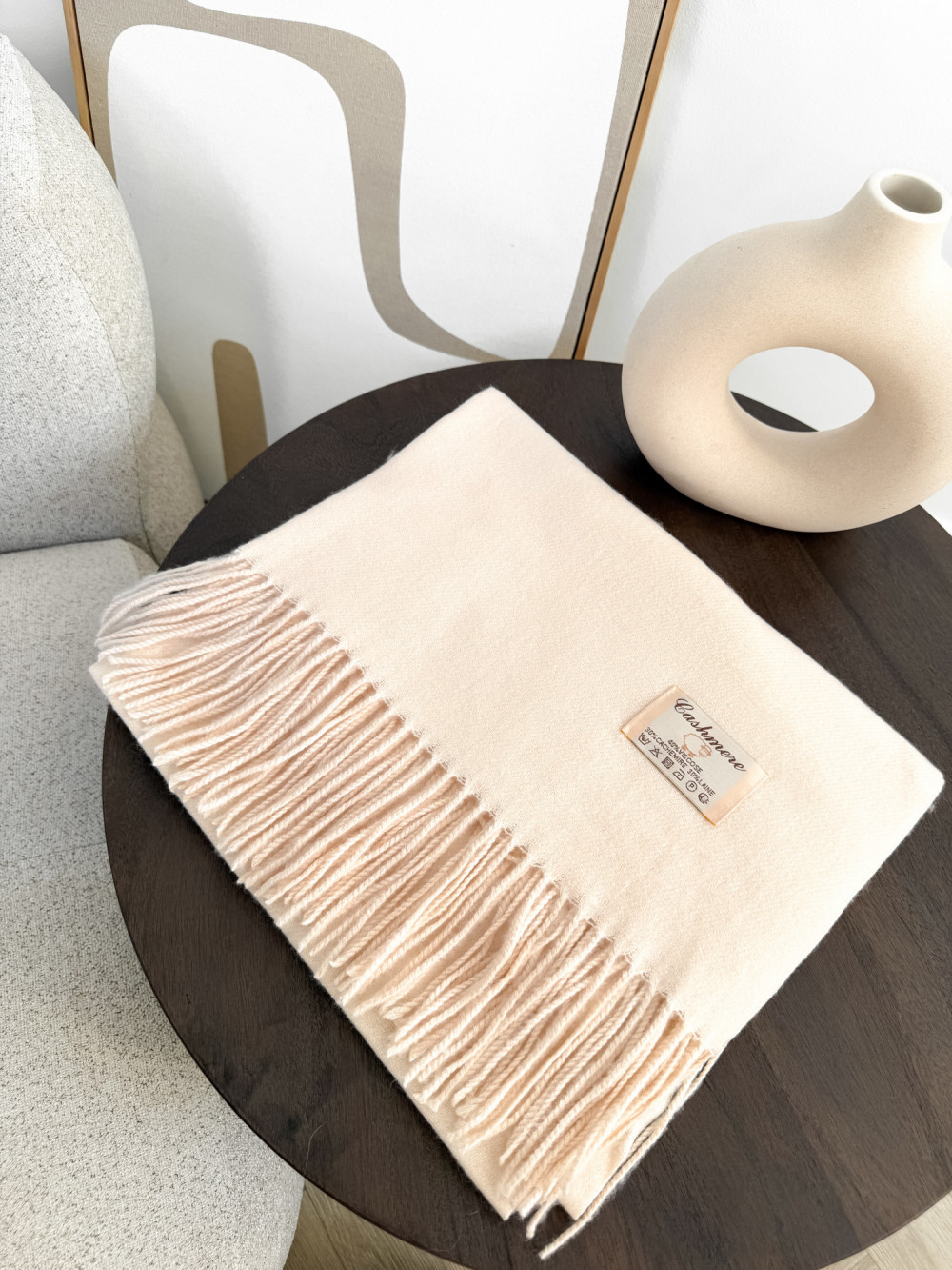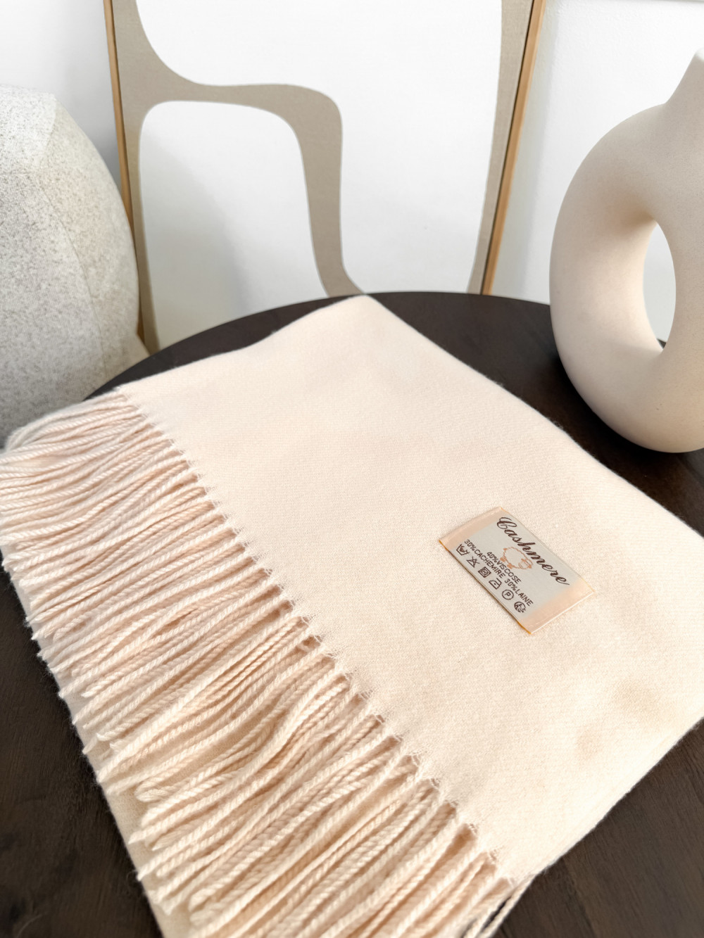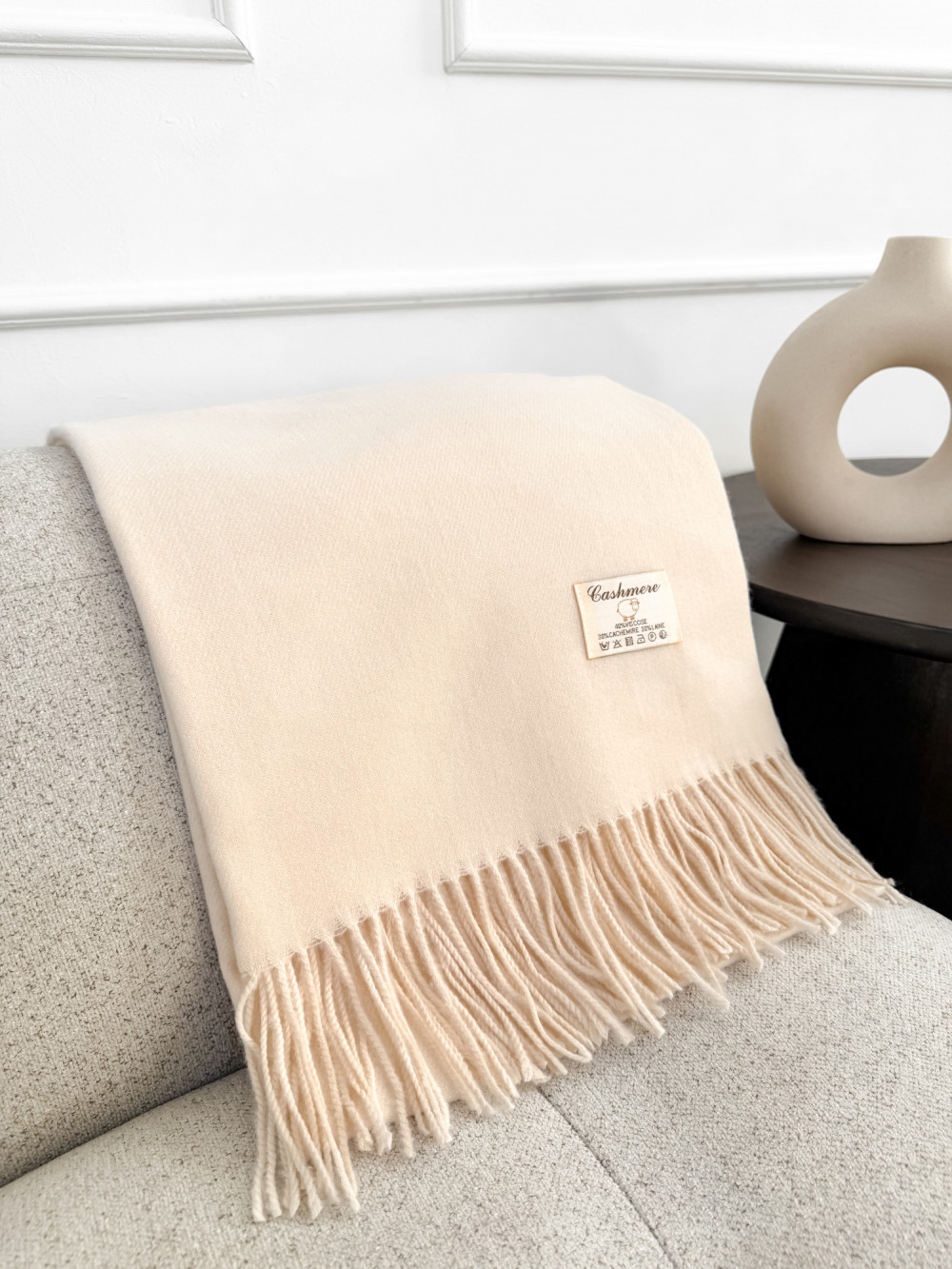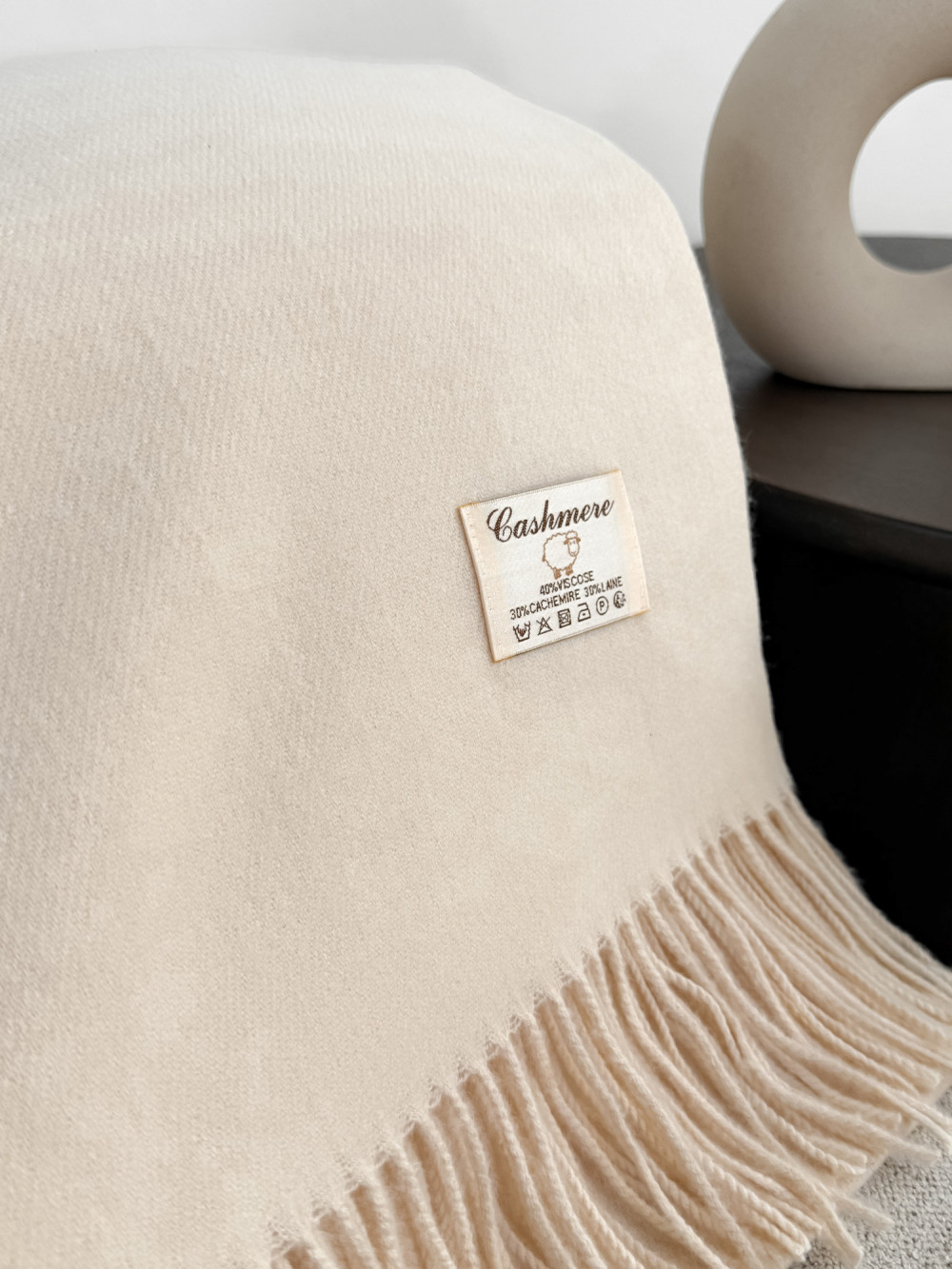 Szal z kaszmirem i wełną z frędzlami jasny beż SNOW