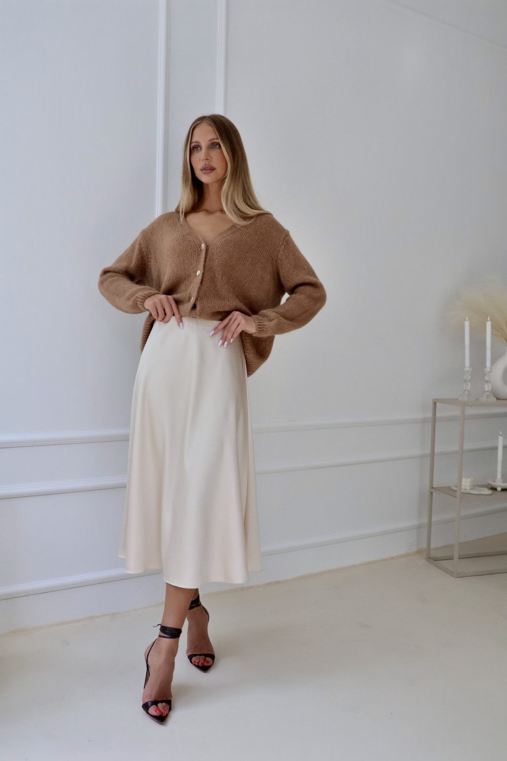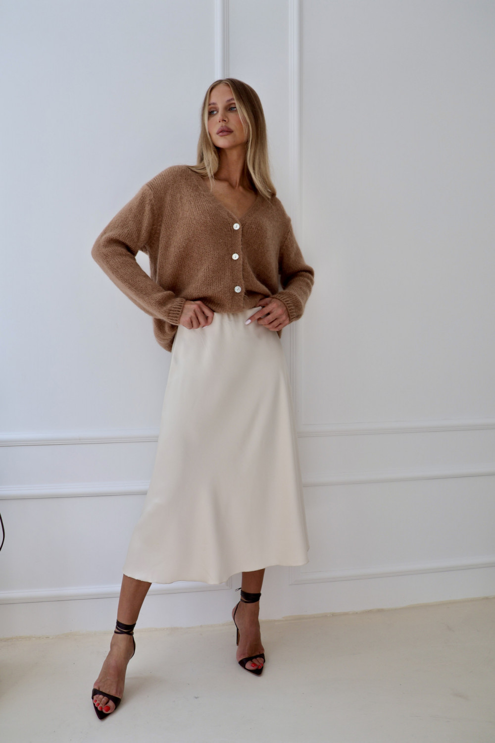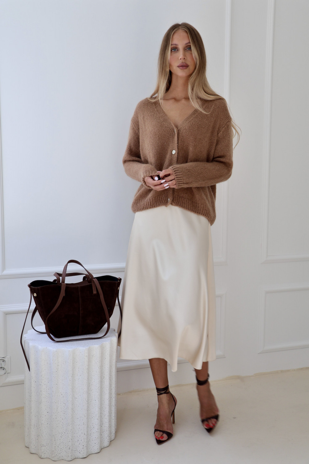 Kardigan TIVI z moherem w odcieniu camel to miękki, puszysty model, który dodaje ciepła i subtelnej elegancji codziennym stylizacjom. Delikatny moher otula przyjemnością w dotyku, a akryl z poliamidem zapewniają trwałość, komfort noszenia i elastyczne dopasowanie. Camelowy kolor nadaje kardiganowi uniwersalnego charakteru, dzięki czemu świetnie komponuje się zarówno z jeansami, jak i spódnicą. Kardigan TIVI to idealny wybór dla osób ceniących wygodę, miękkość materiału i modny wygląd.