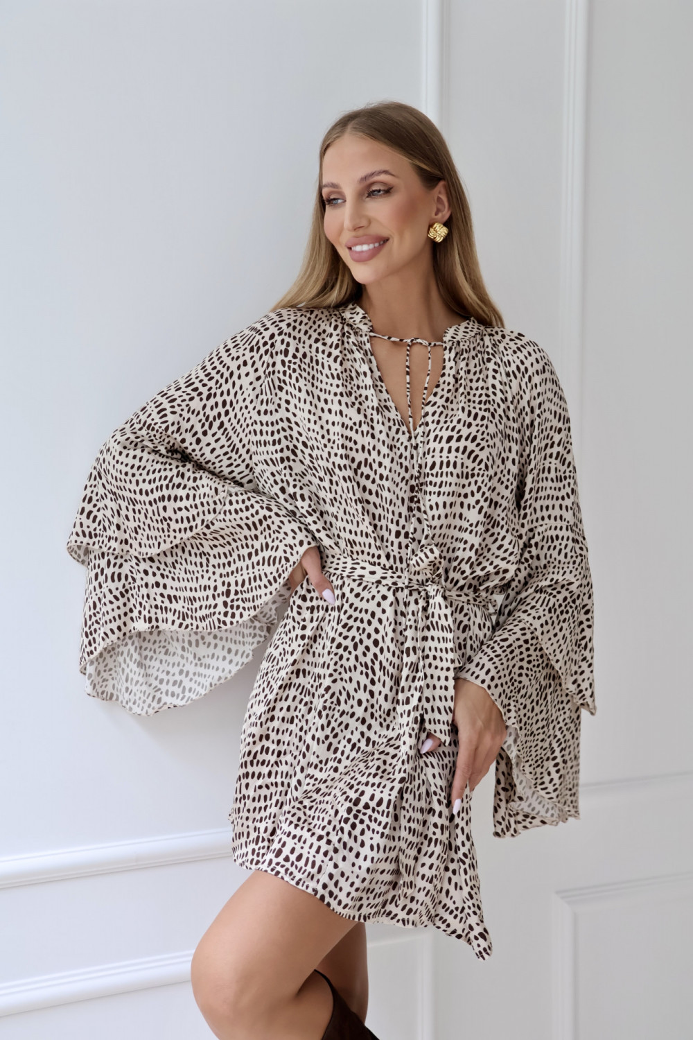 Sukienka 100% wiskoza ze wzorem beż MARREL