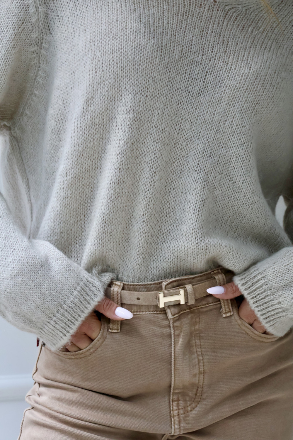Sweter ANGELO z moherem i dekoltem w serek w jasnym beżu to lekki, puszysty model, który dodaje stylu i subtelnej elegancji codziennym zestawom. Delikatny moher sprawia, że sweter jest miękki, ciepły i przyjemny w dotyku, a mieszanka akrylu i poliamidu zapewnia komfort noszenia i trwałość. Jasny beż w klasycznym kroju ANGELO świetnie komponuje się zarówno z jeansami, jak i spódnicą, tworząc stylizacje z nutą luksusu. Sweter z moherem i dekoltem V ANGELO to idealny wybór na chłodniejsze dni, łączący wygodę z modnym designem.
