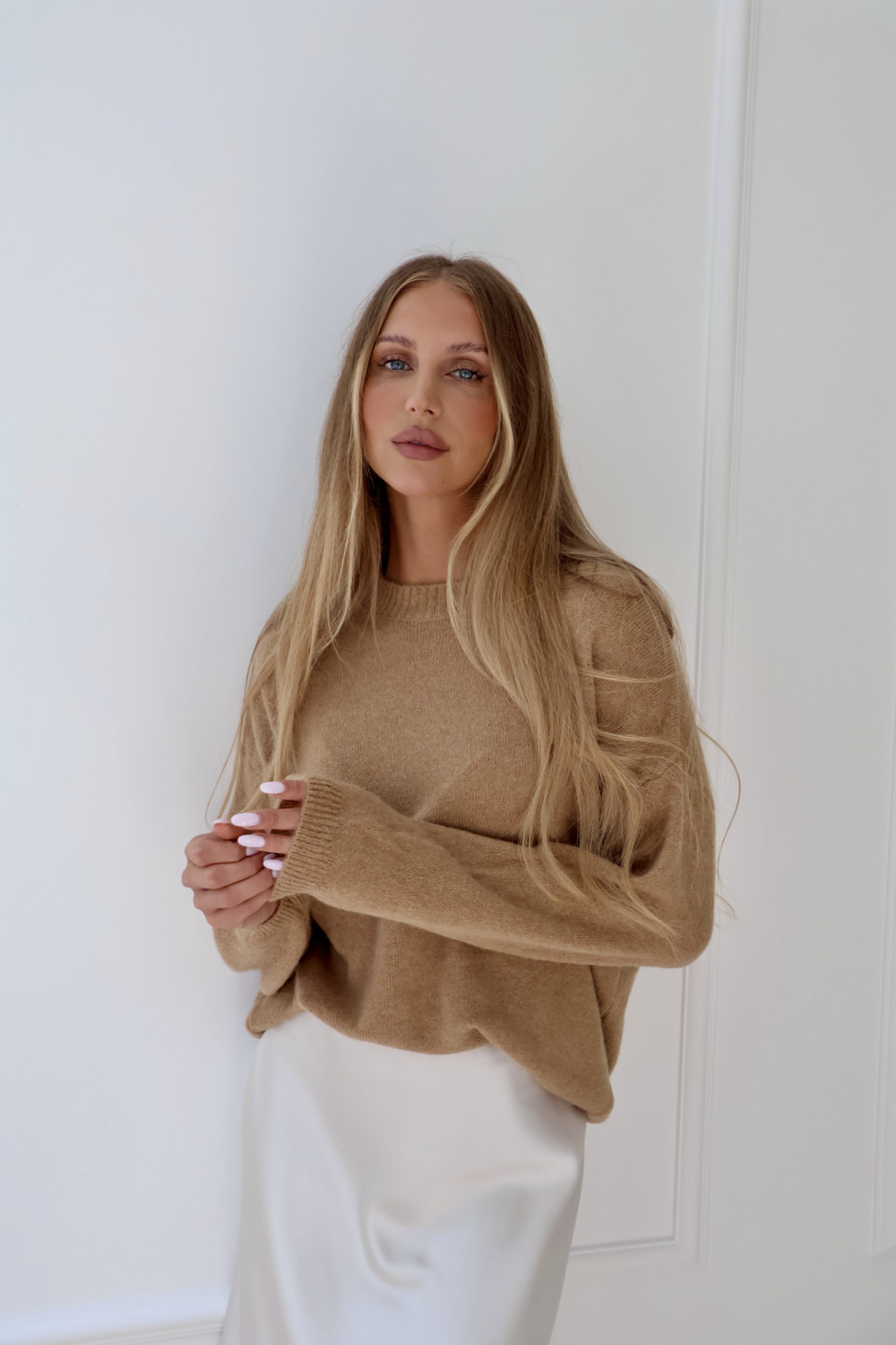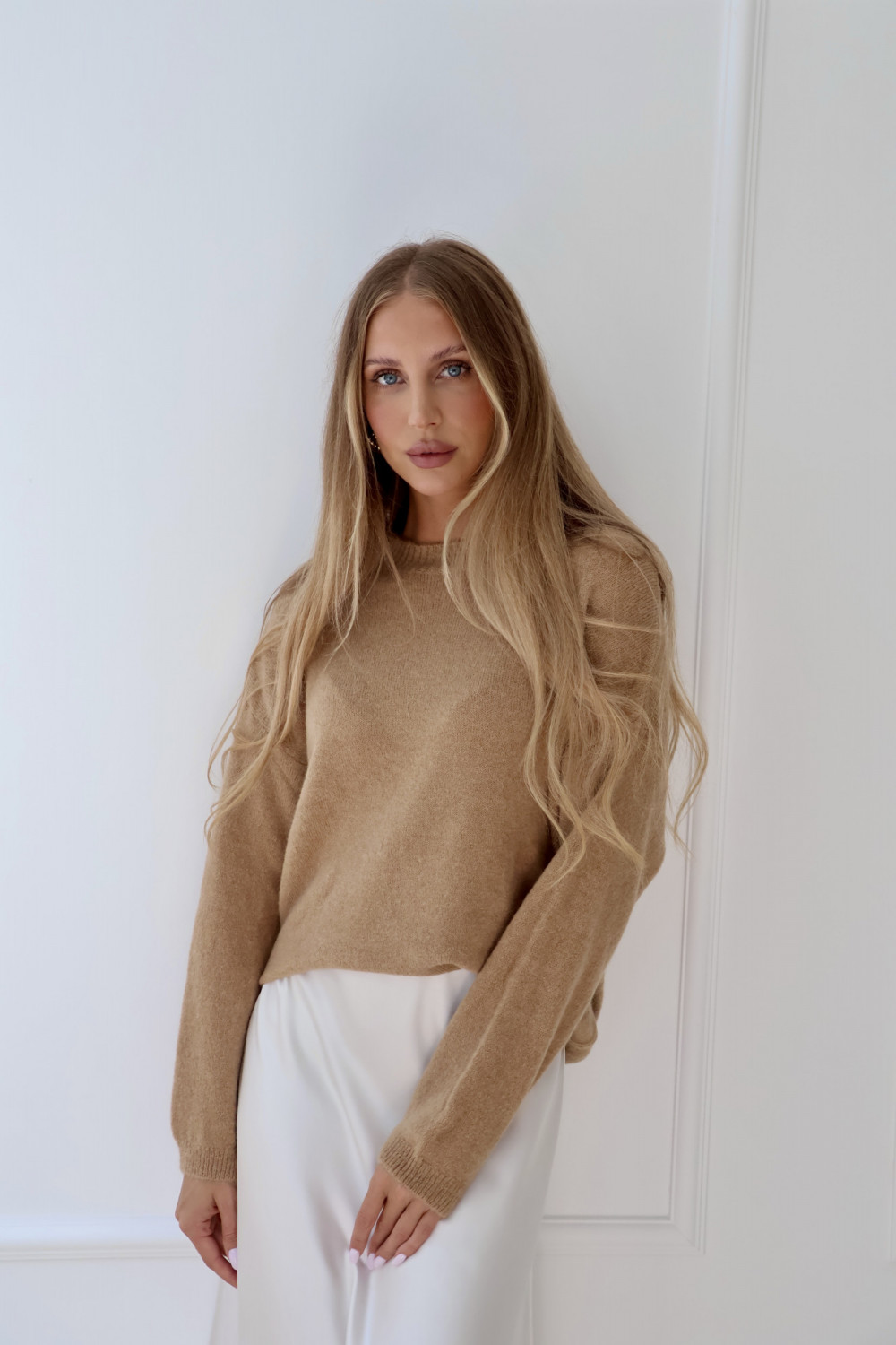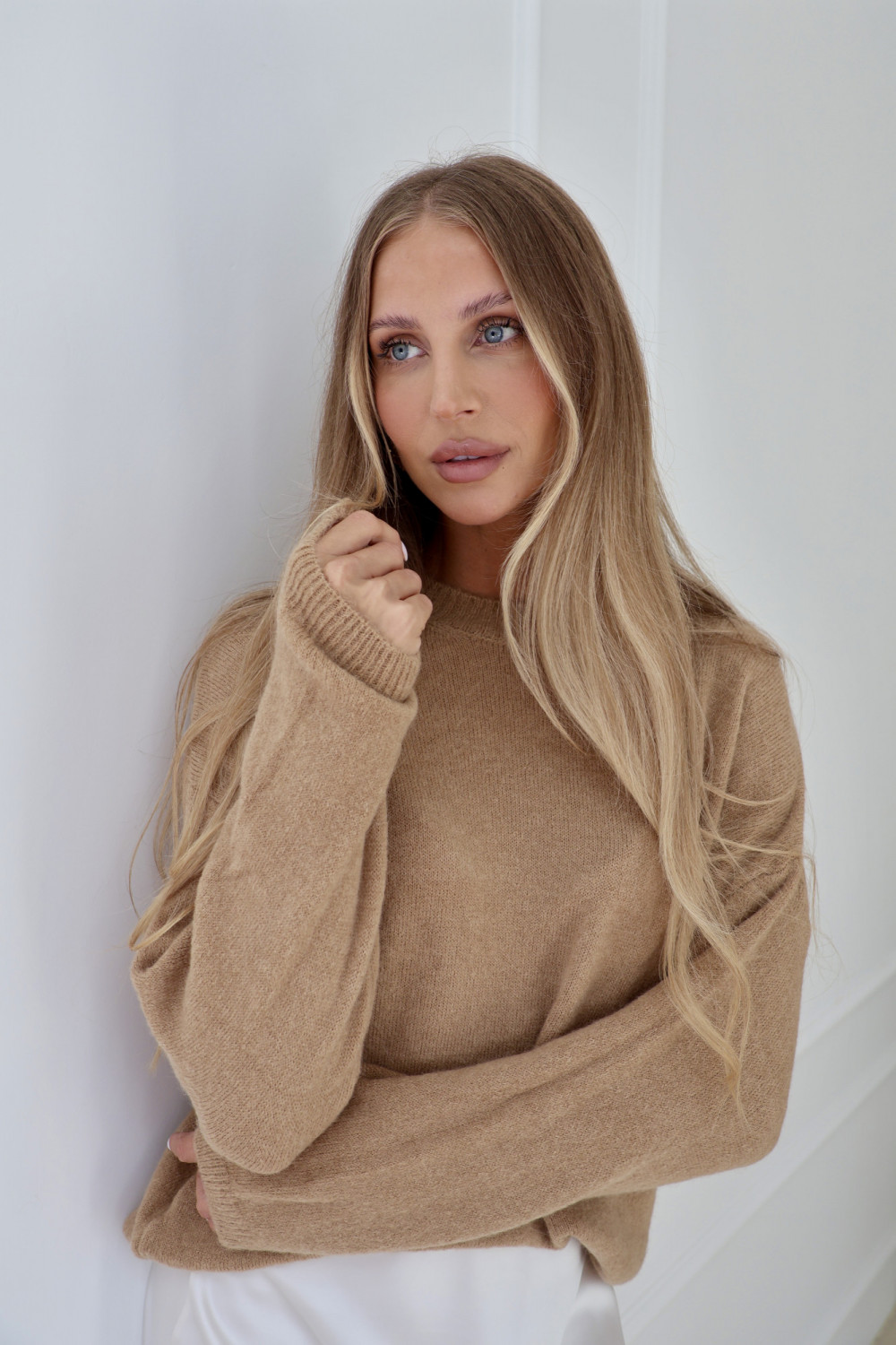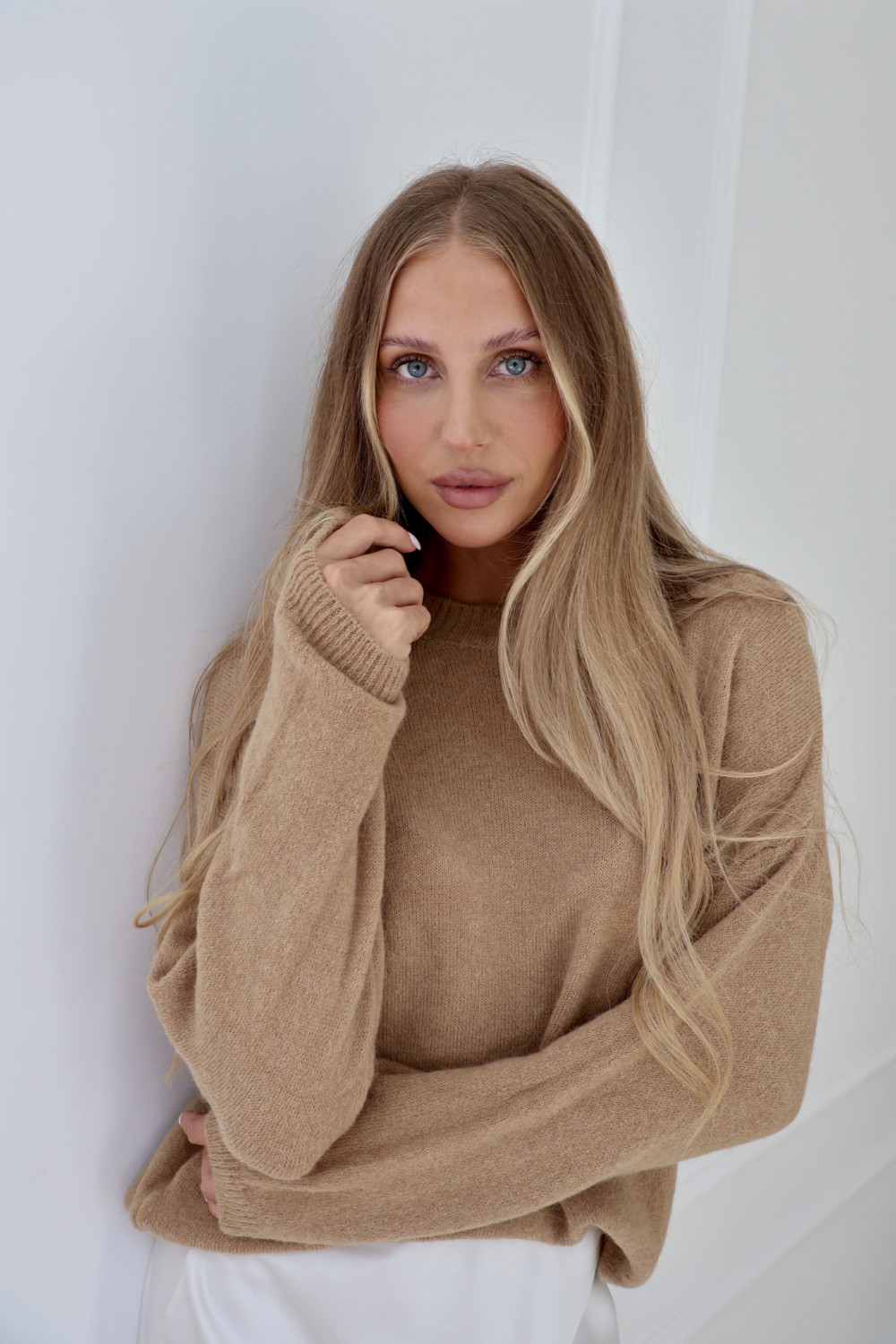 Sweter CARMINE z baby alpaką w odcieniu camel to miękki, przyjemny w dotyku model, który zapewnia komfort i ciepło w codziennych stylizacjach. Delikatna baby alpaka nadaje lekkości i subtelnej elegancji, a akryl z poliamidem gwarantują trwałość i wygodne dopasowanie. Camelowy kolor sprawia, że sweter CARMINE łatwo zestawić zarówno z jeansami, jak i spódnicą, tworząc stylizacje pełne szyku. Sweter z baby alpaką CARMINE to doskonały wybór dla osób ceniących komfort, elegancję i miękkość materiału.