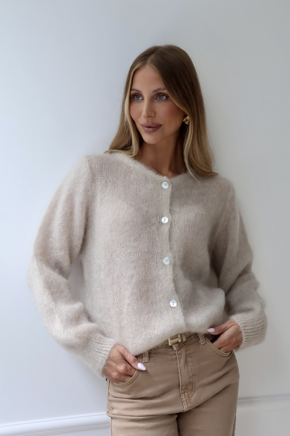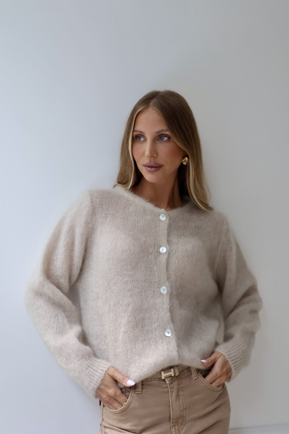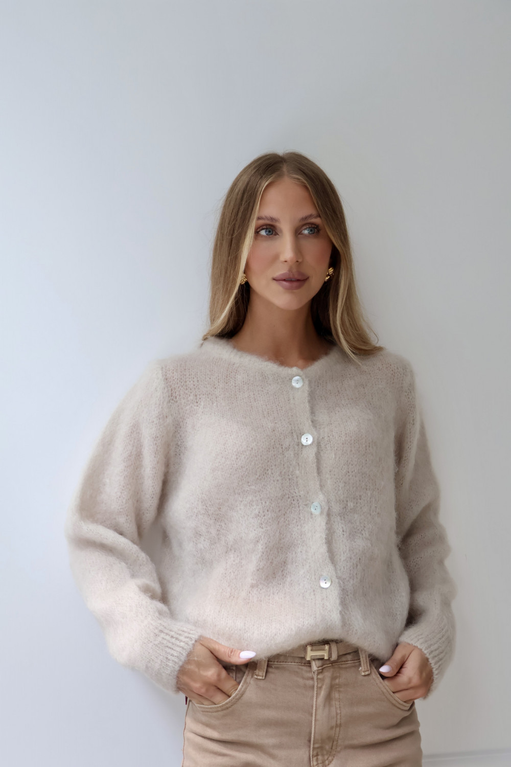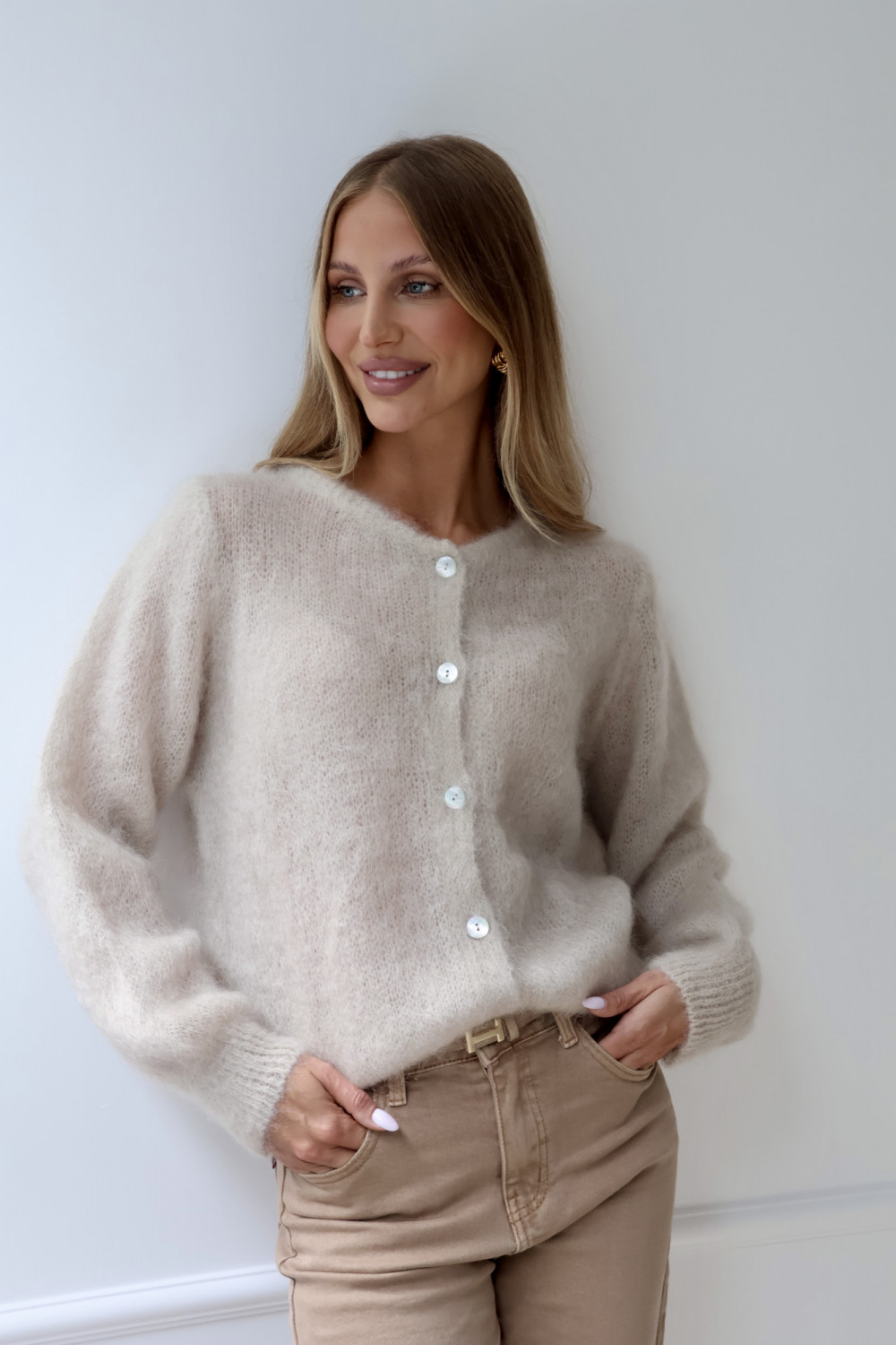 Kardigan HUXLEY z kid moherem premium w beżu to elegancki i lekki model, który wnosi ciepło i subtelny szyk do jesiennych i zimowych stylizacji. Delikatny kid moher premium zapewnia przyjemny dotyk i lekkość, a poliamid z elastanem gwarantują trwałość, wygodę noszenia i elastyczne dopasowanie. Beżowy odcień nadaje kardiganowi uniwersalnego charakteru, który świetnie komponuje się zarówno z jeansami, jak i spódnicą. Kardigan HUXLEY to idealny wybór dla osób ceniących komfort, styl i luksusowy materiał.