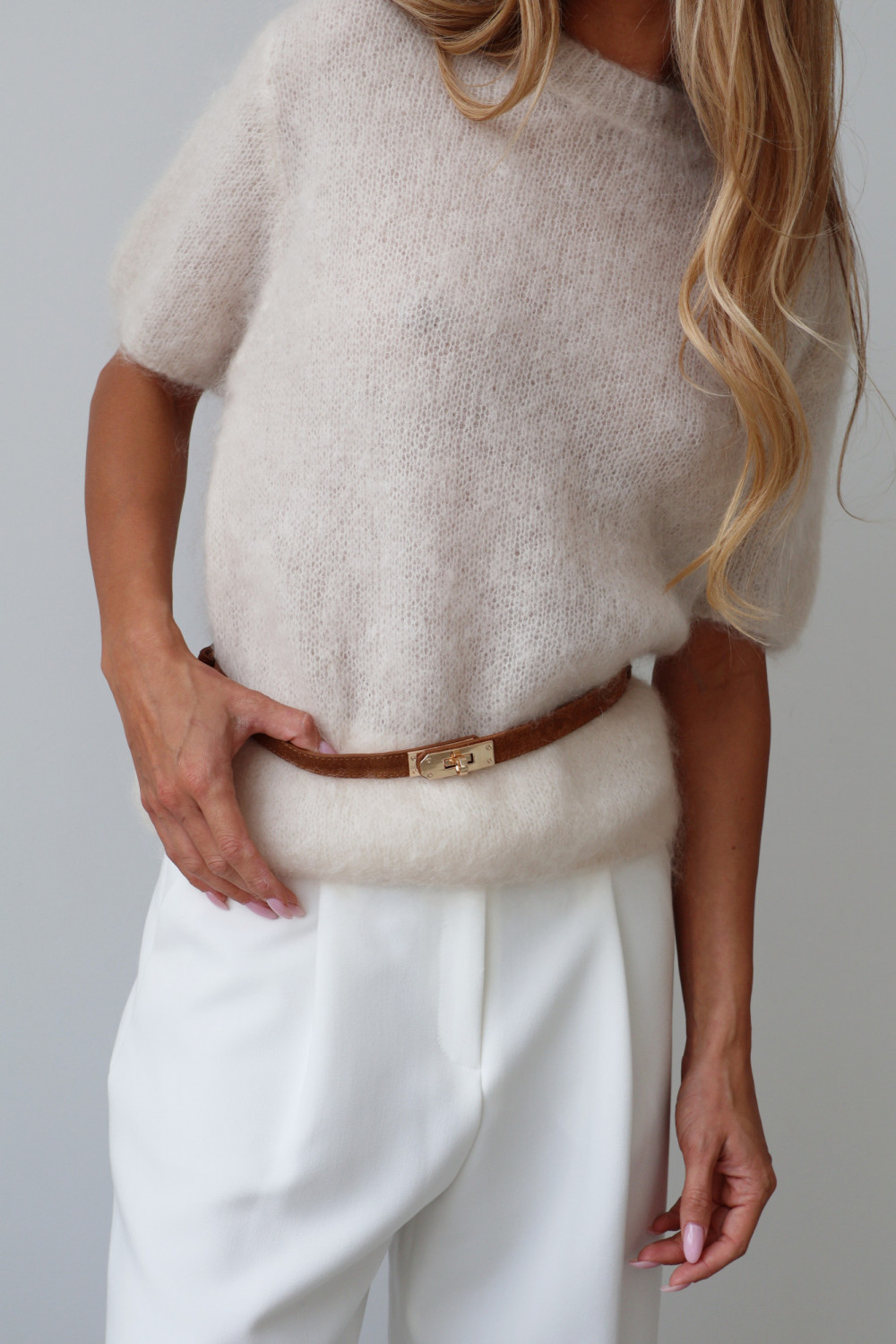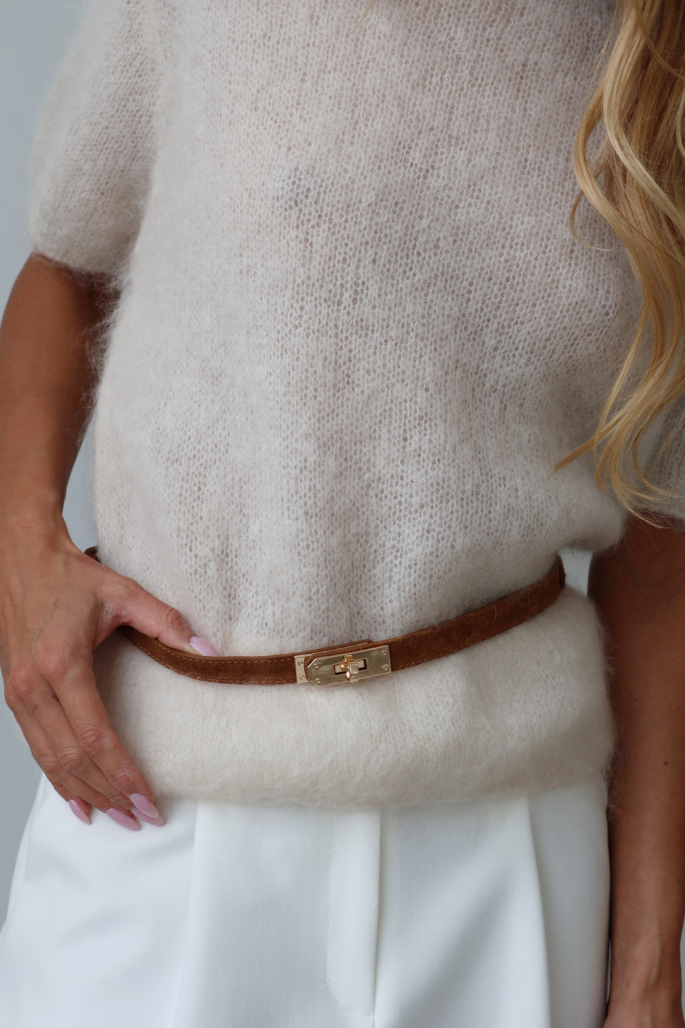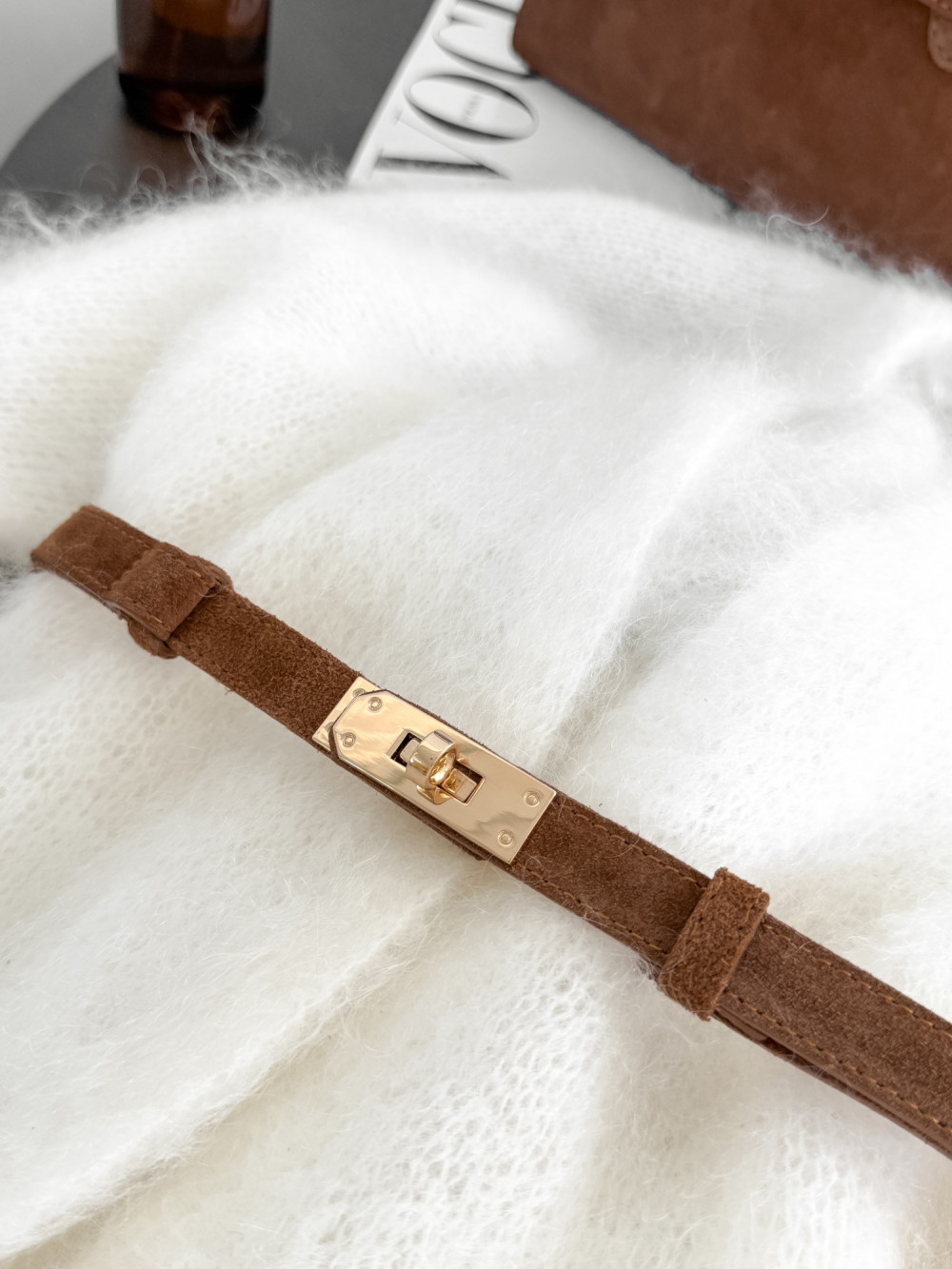 Pasek 100% skóra naturalna zamszowa HERME cynamon