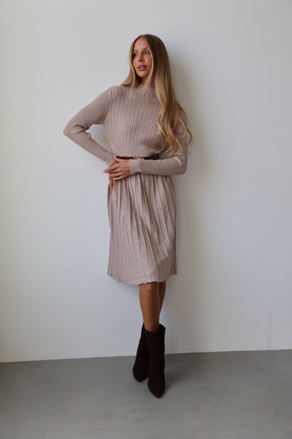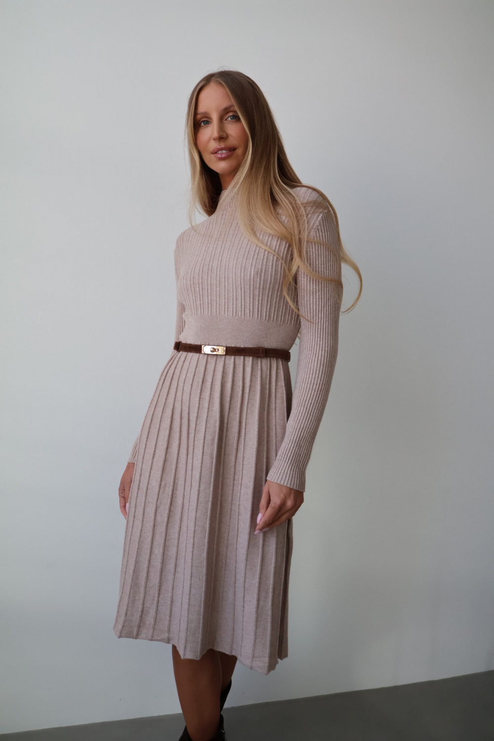 Sukienka plisowana długa beż CHARLOTTE