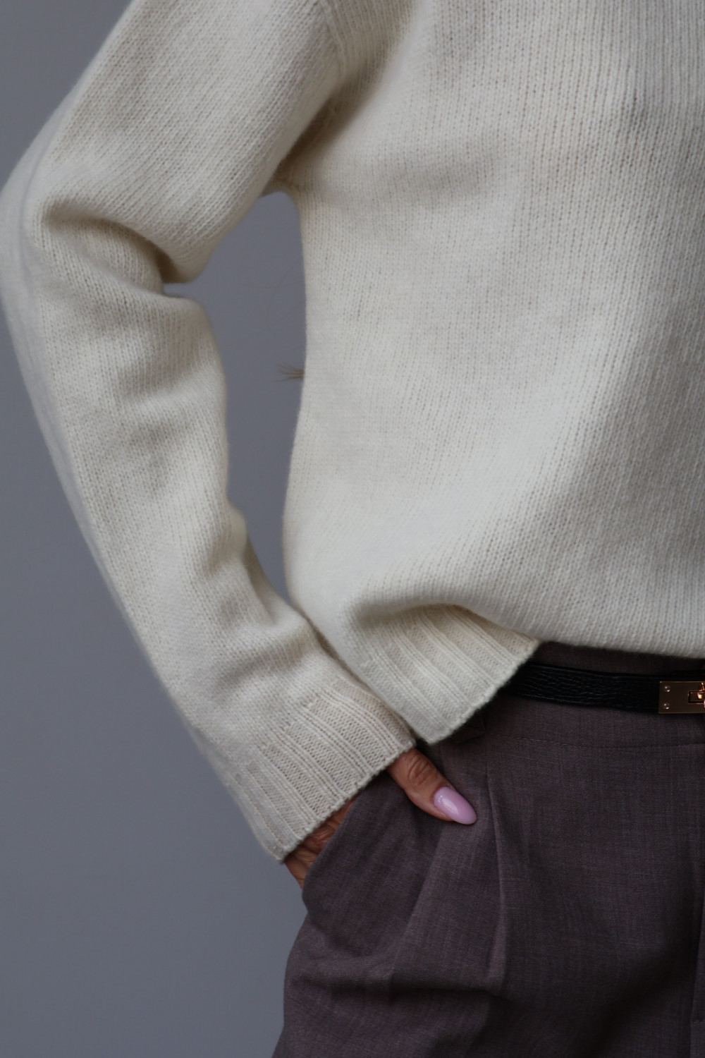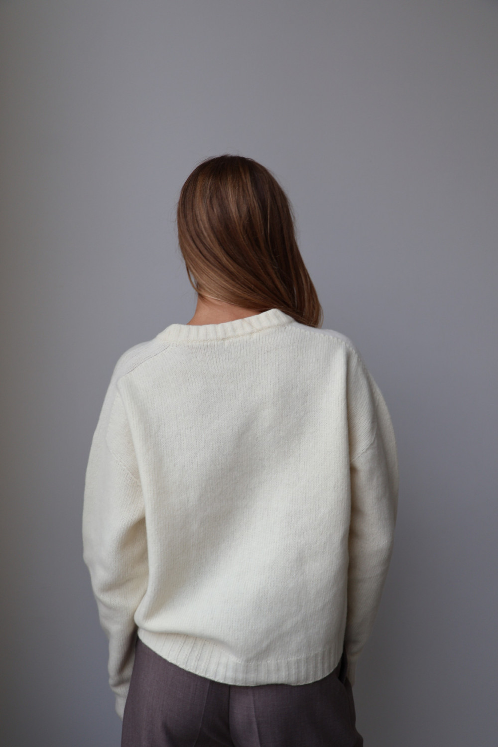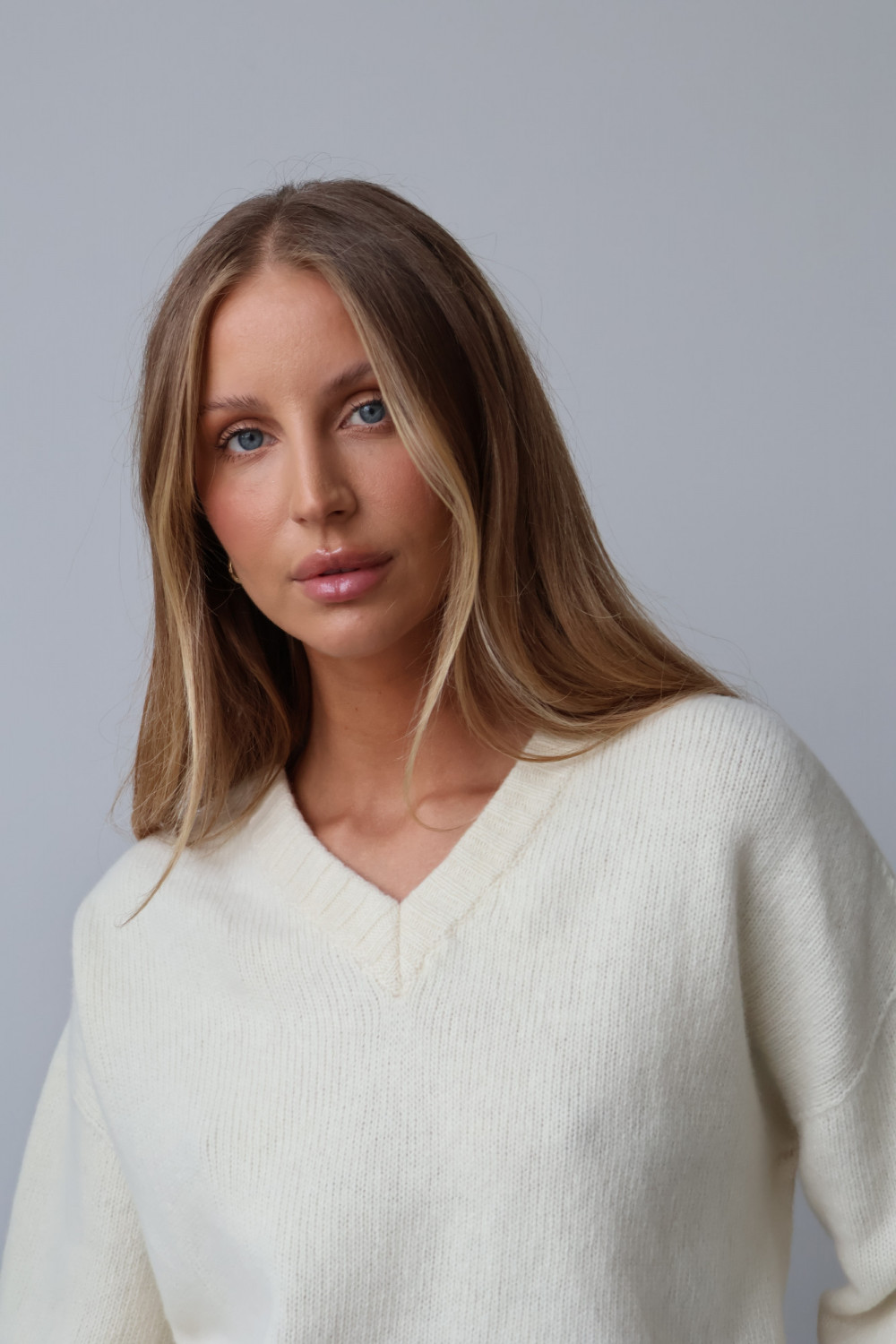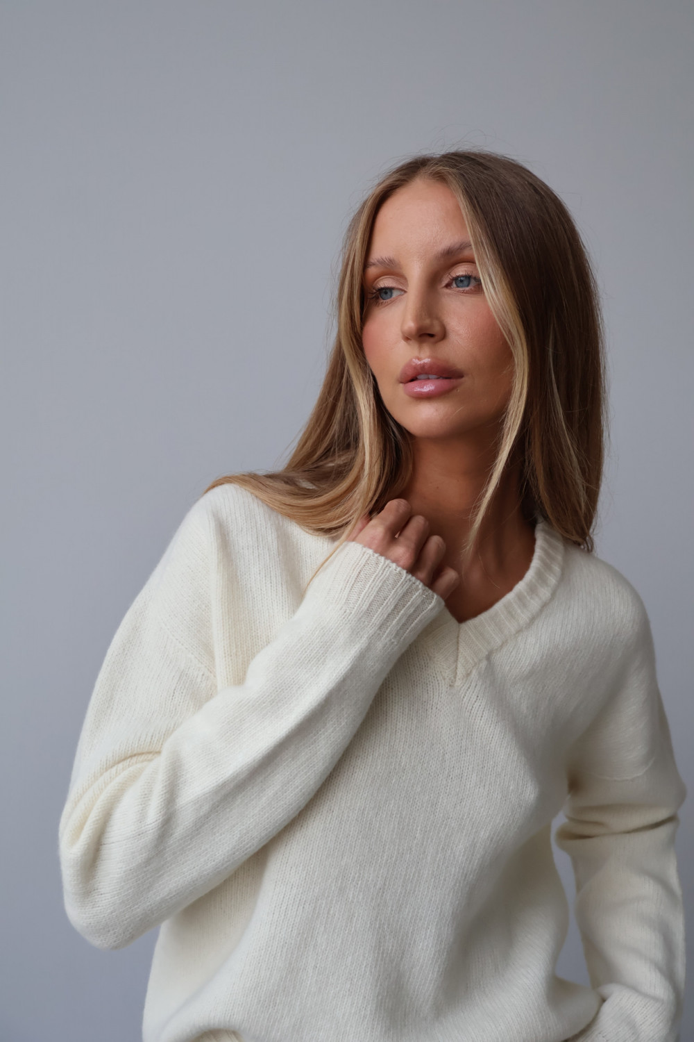 Sweter z dekoltem V 100% wełna merino premium śmietanka SELINE