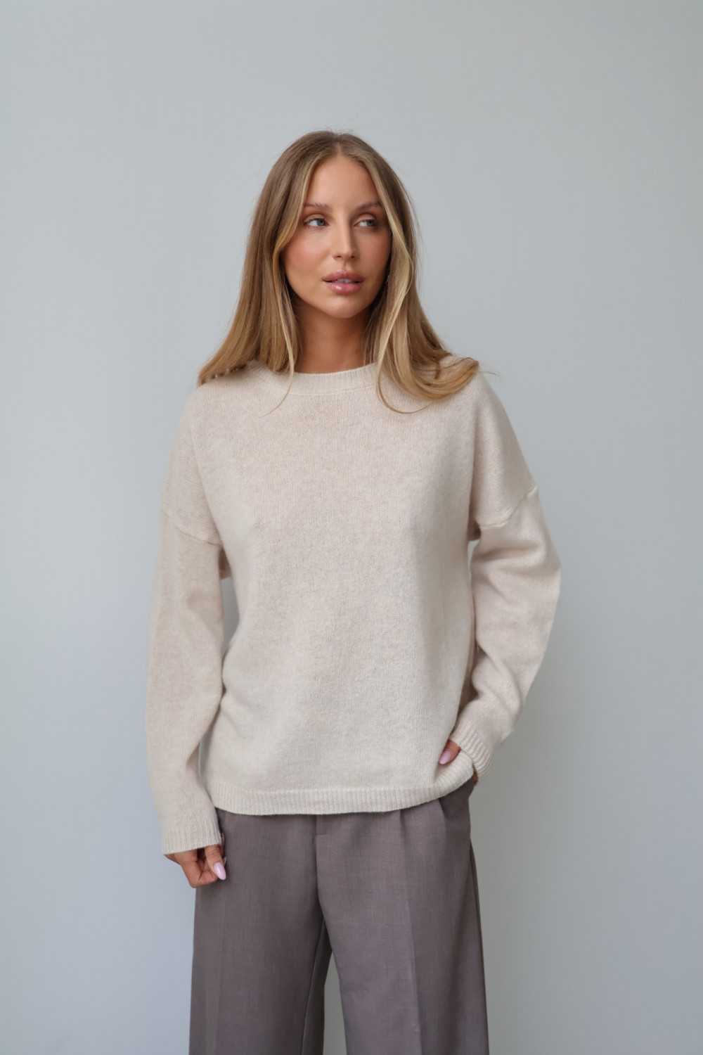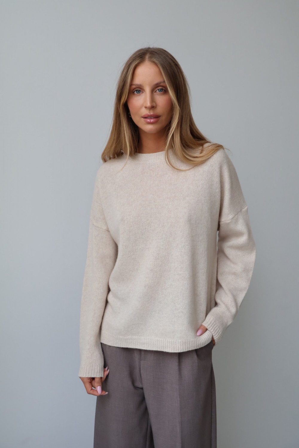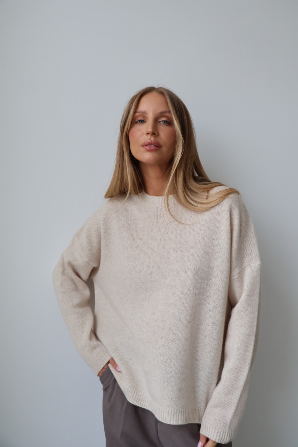 Sweter 100% wełna merino premium MERENE jasny beż