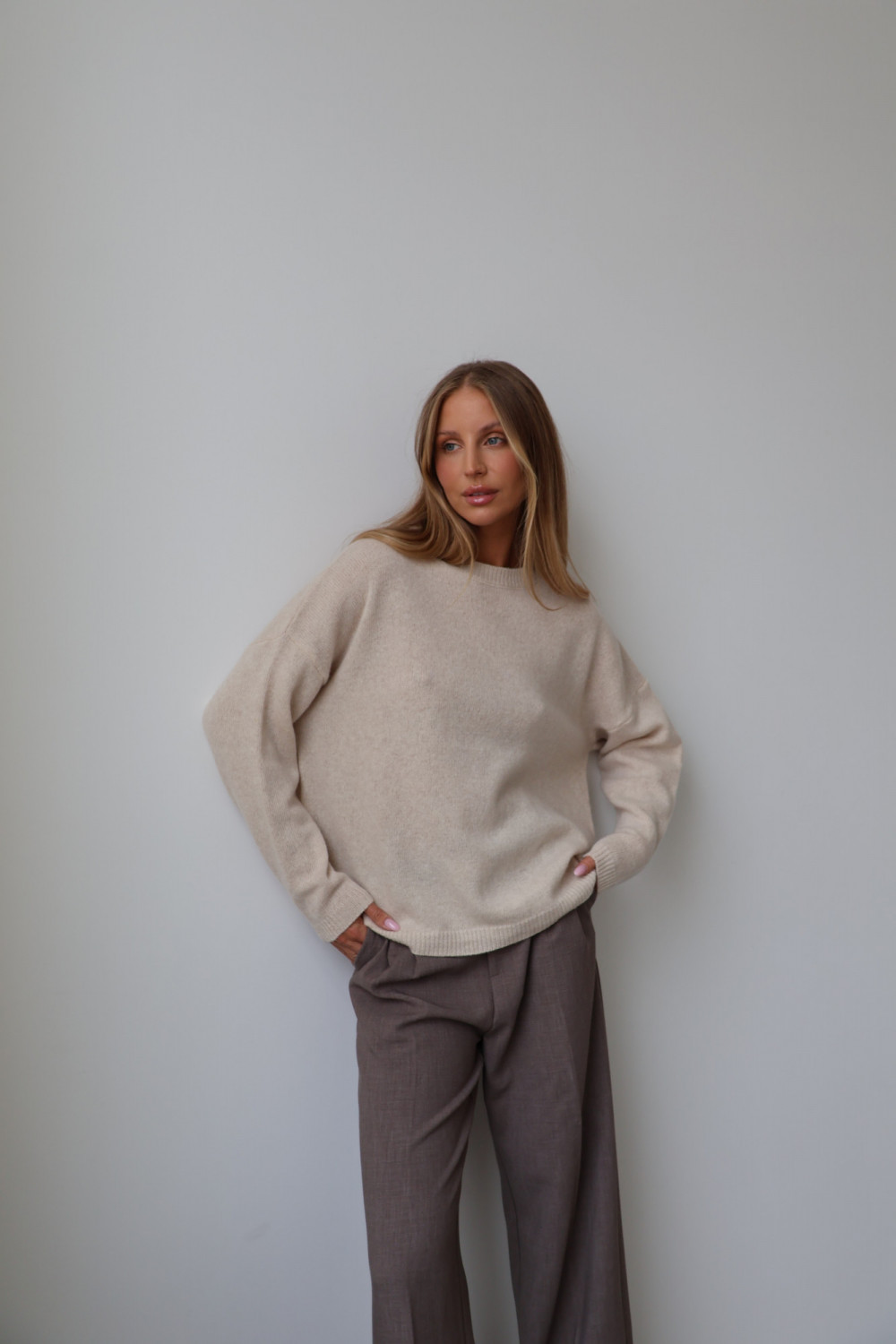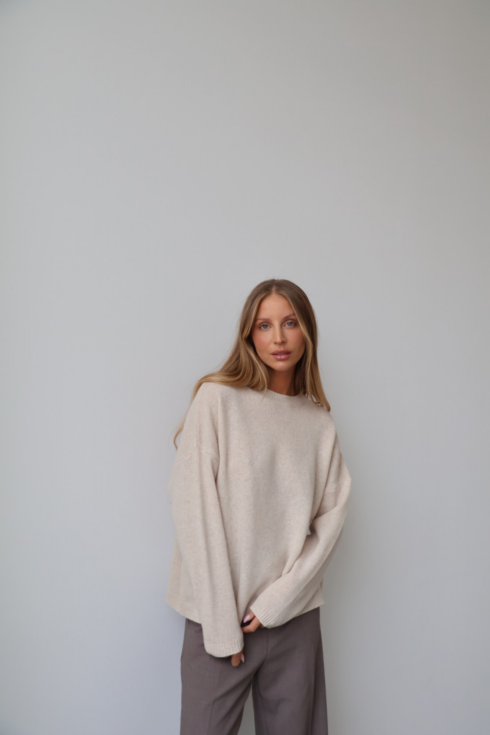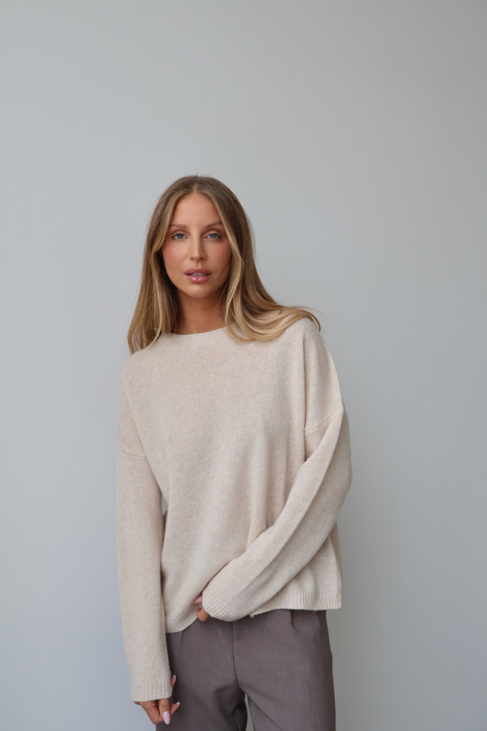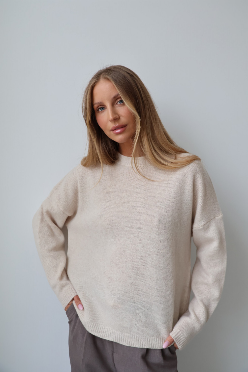 Sweter 100% wełna merino premium MERENE jasny beż