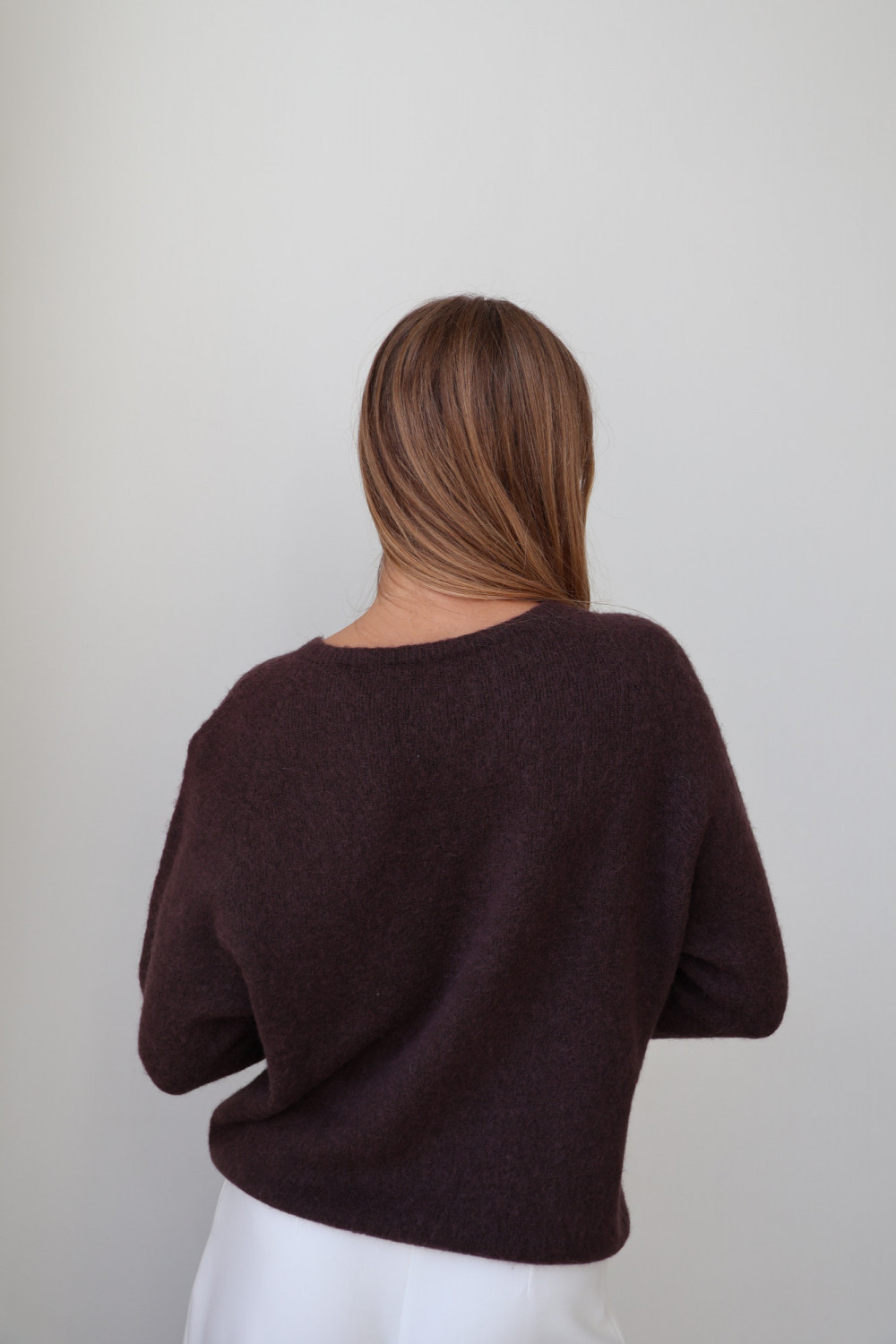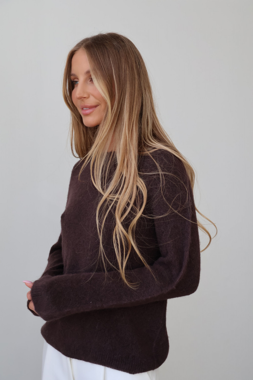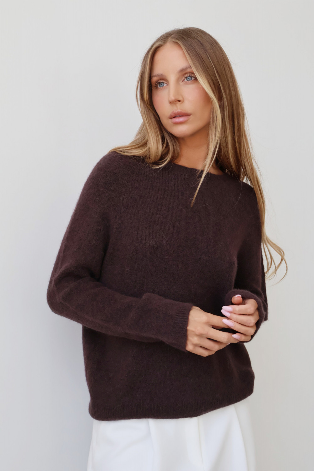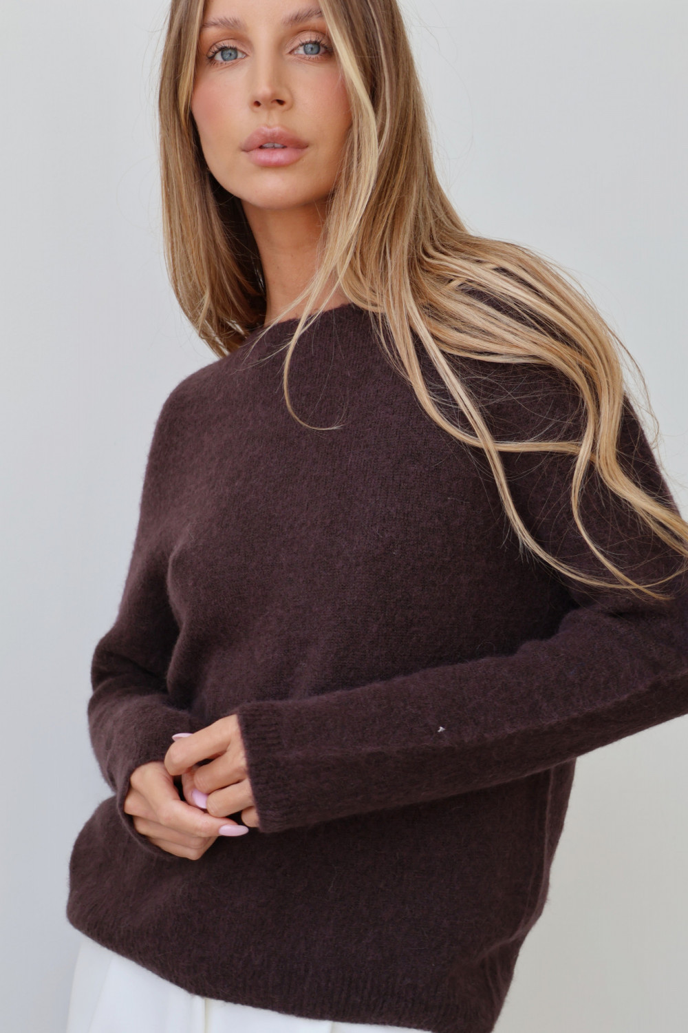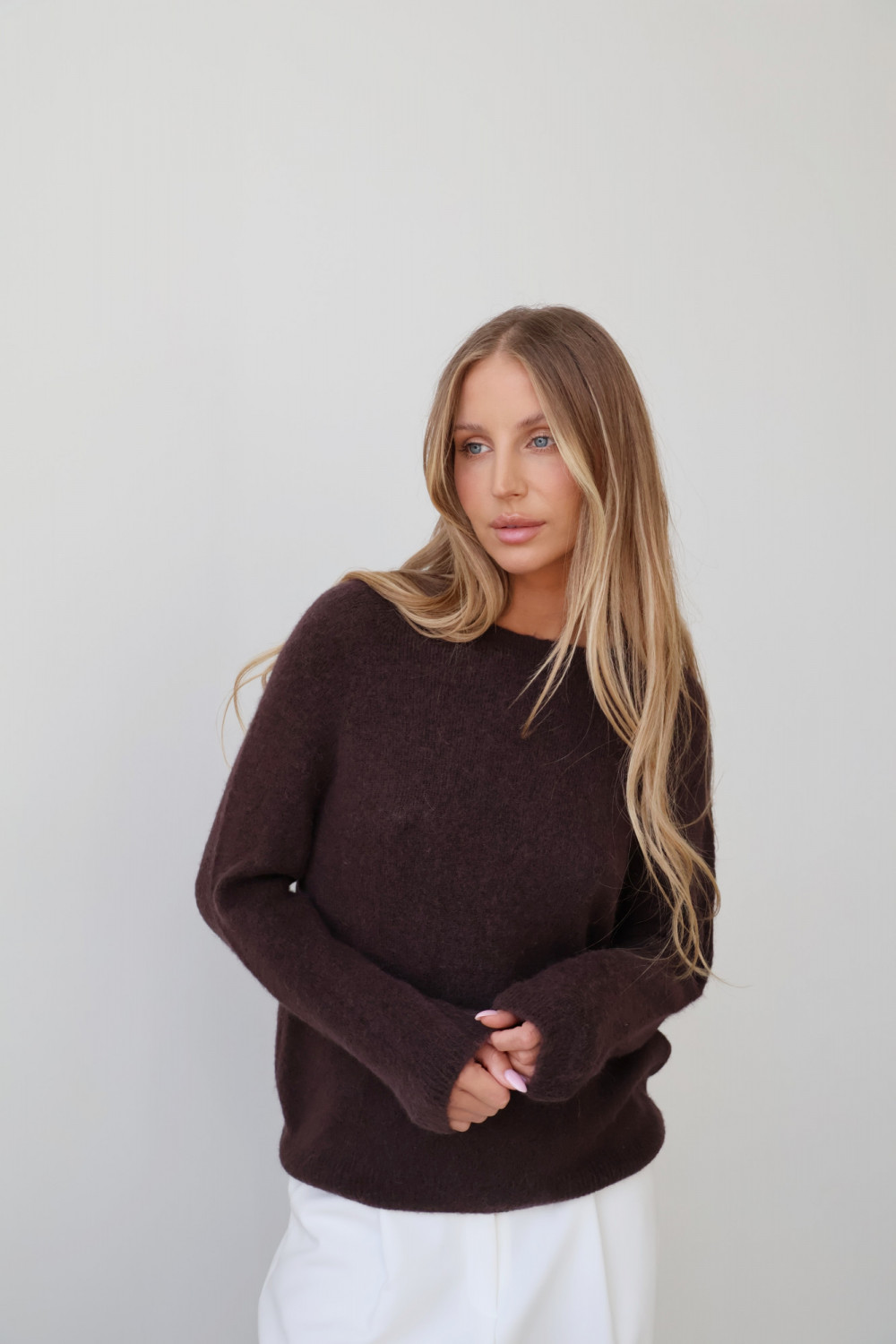 Sweter z baby alpaką gorzka czekolada AROSA