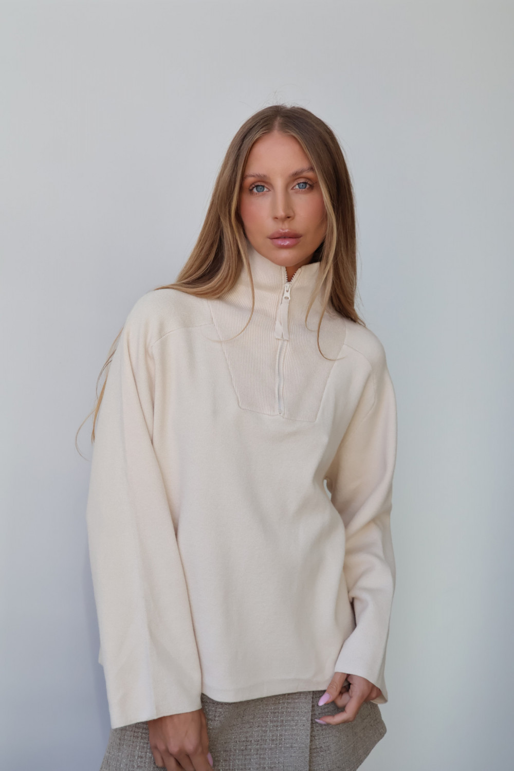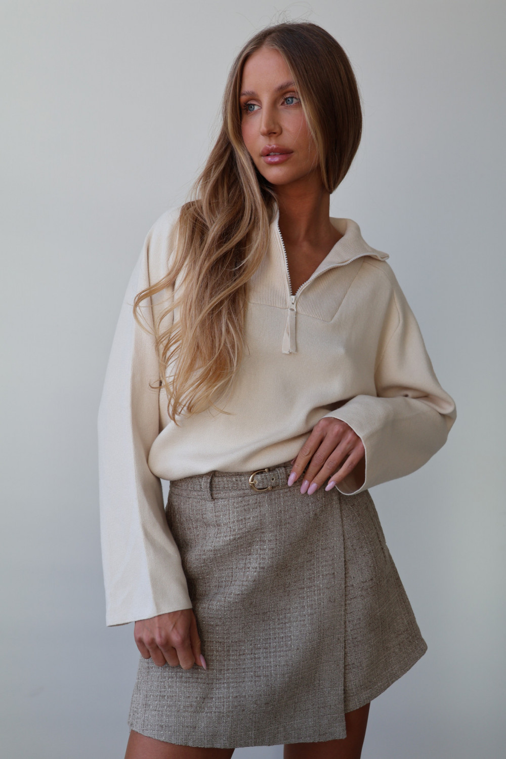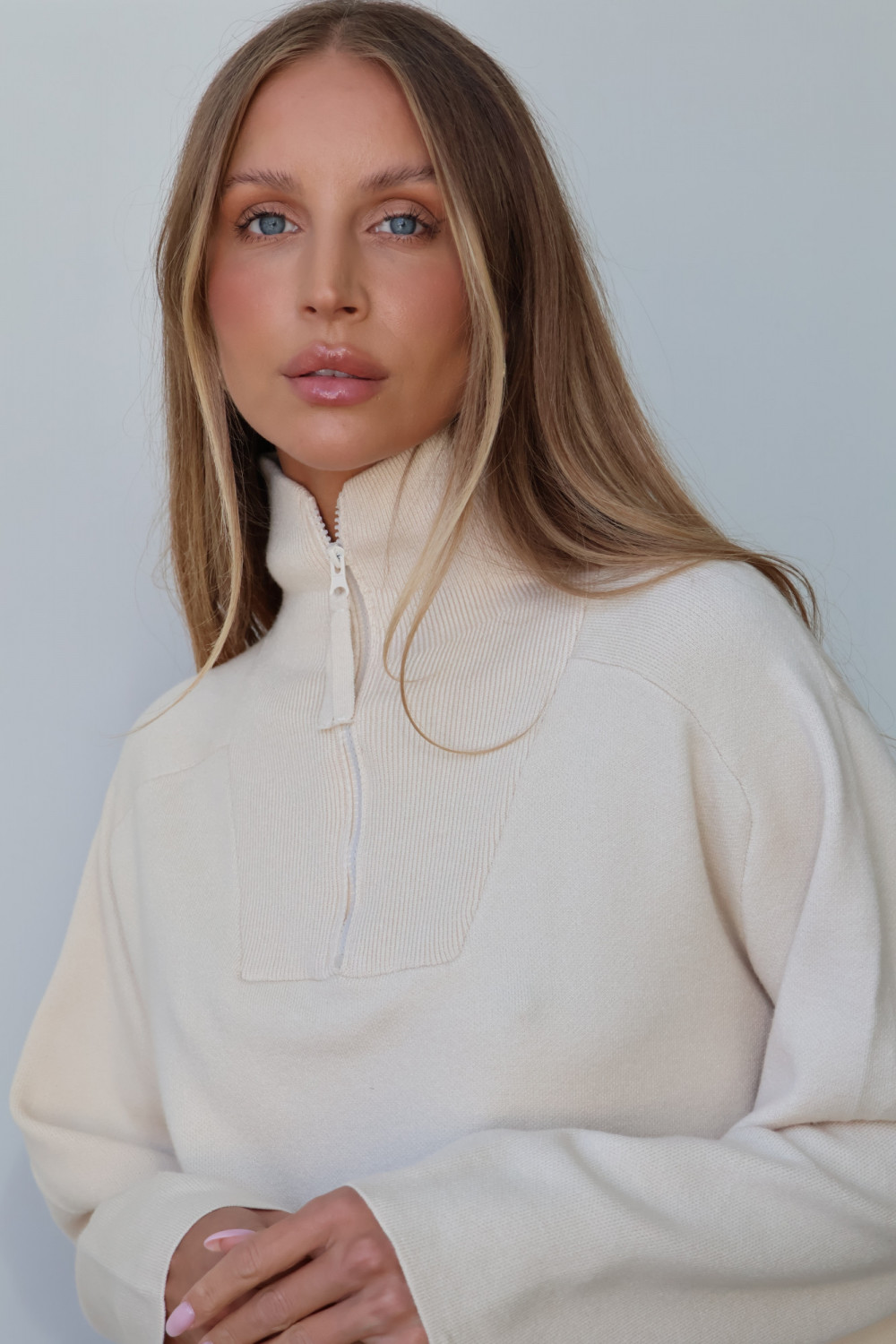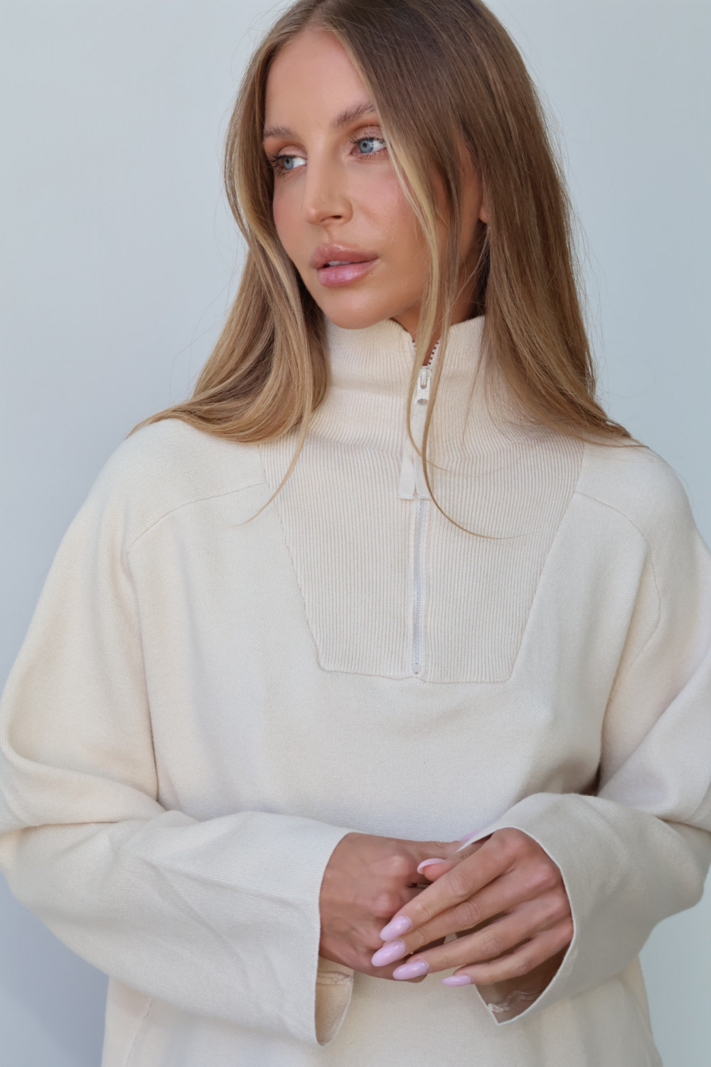 Sweter polo Arlon w beżowym odcieniu wykonany jest z miękkiego materiału z wiskozą, która nadaje mu lekkość, delikatny połysk i przyjemną miękkość w dotyku. Materiał jest komfortowy dla skóry i naturalnie oddychający, a klasyczny fason polo z zamkiem dodaje nowoczesnego charakteru. Idealny wybór dla osób ceniących elegancję połączoną z codziennym komfortem.