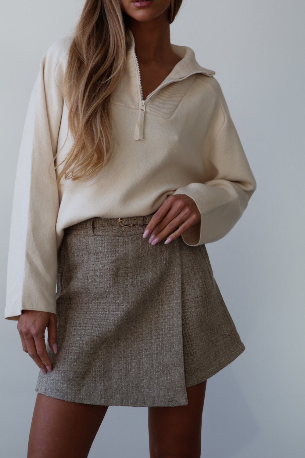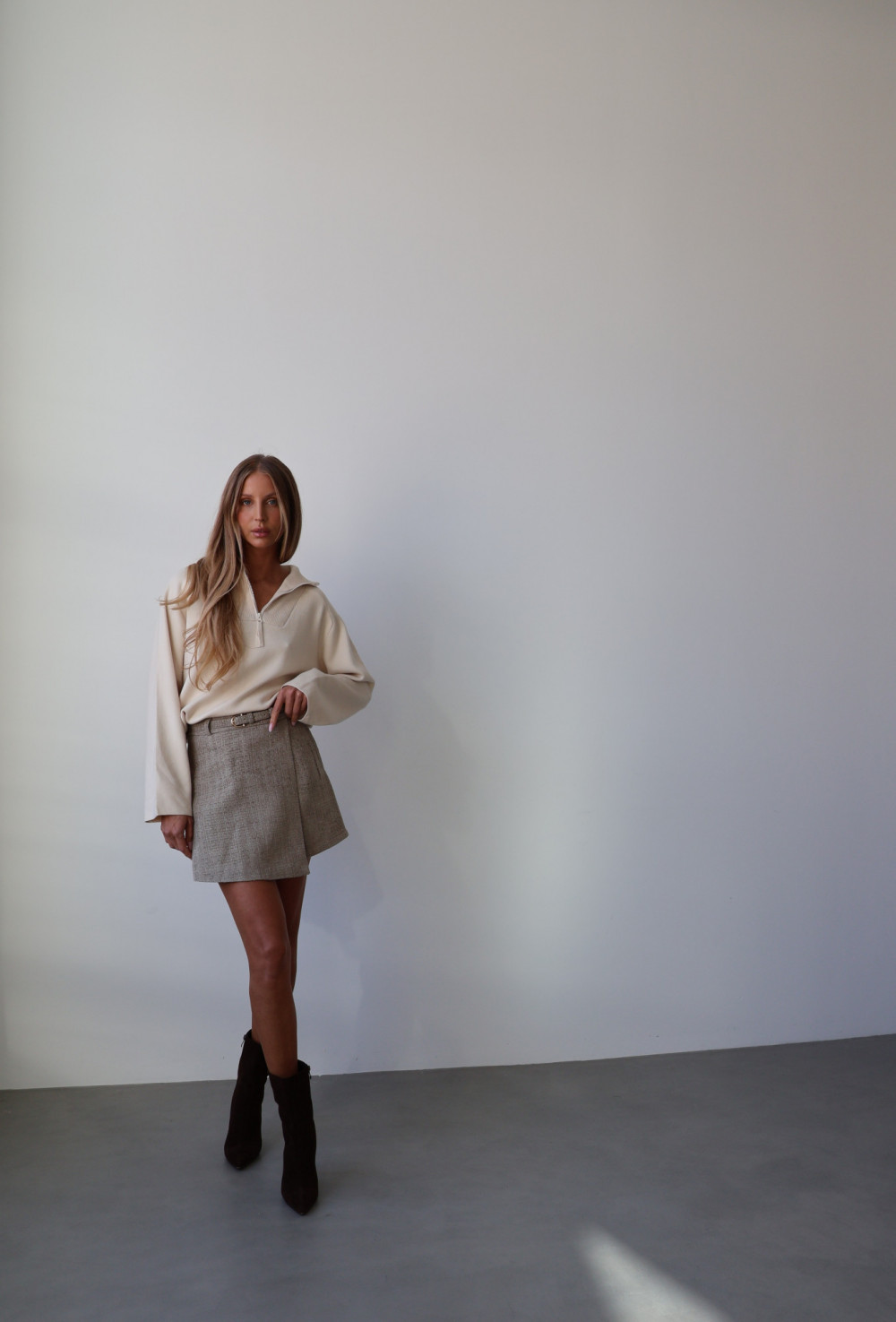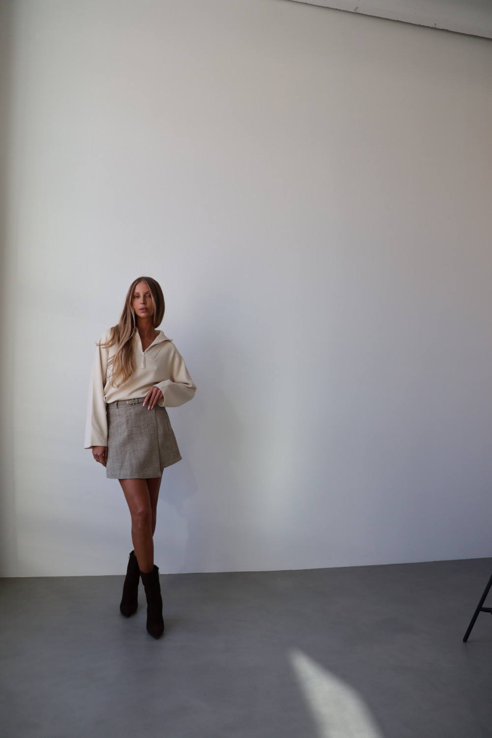 Sweter polo Arlon w beżowym odcieniu wykonany jest z miękkiego materiału z wiskozą, która nadaje mu lekkość, delikatny połysk i przyjemną miękkość w dotyku. Materiał jest komfortowy dla skóry i naturalnie oddychający, a klasyczny fason polo z zamkiem dodaje nowoczesnego charakteru. Idealny wybór dla osób ceniących elegancję połączoną z codziennym komfortem.