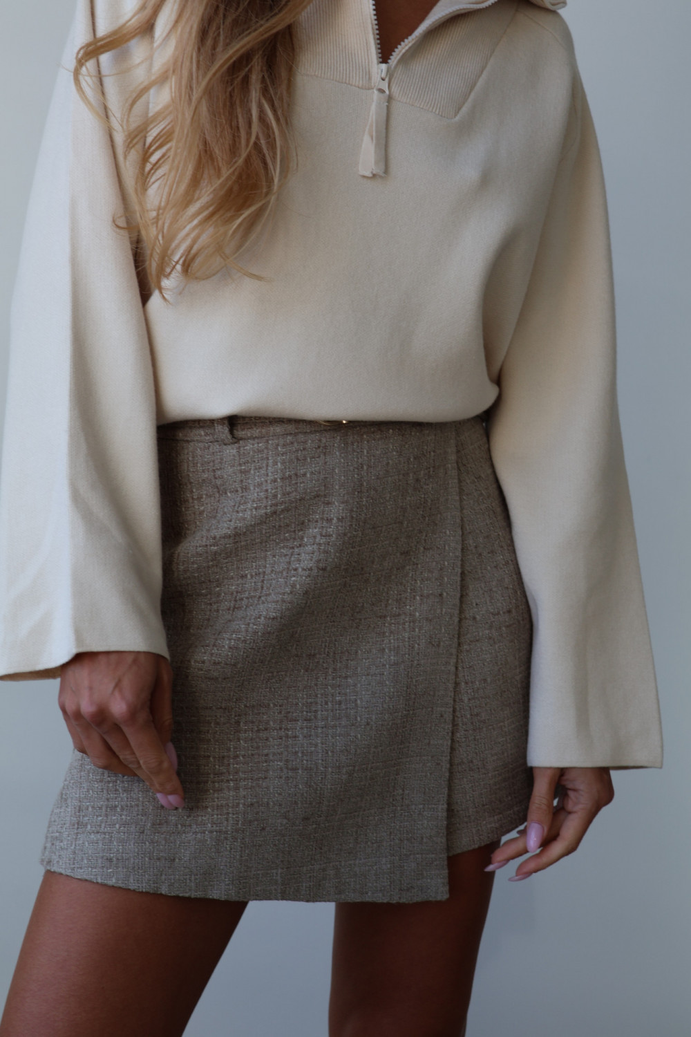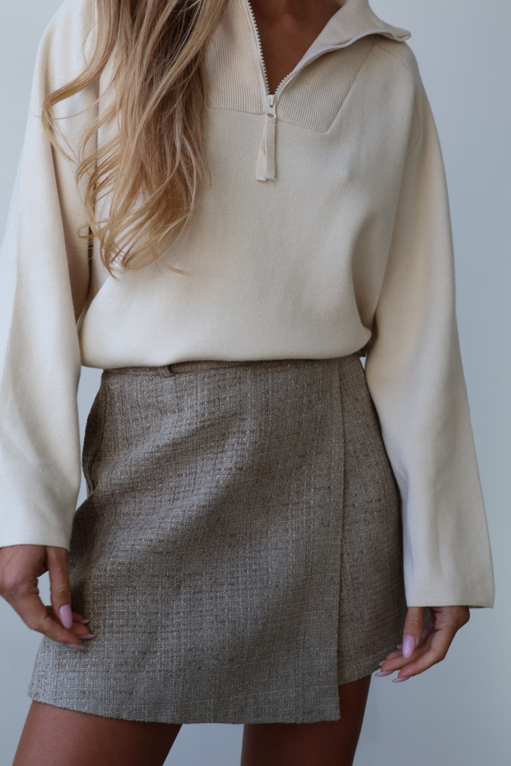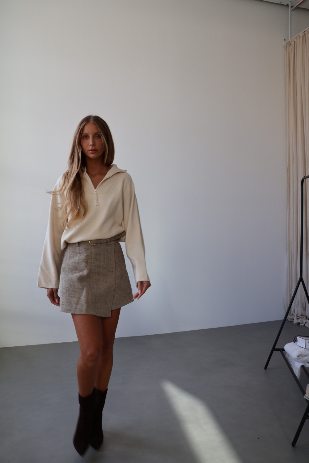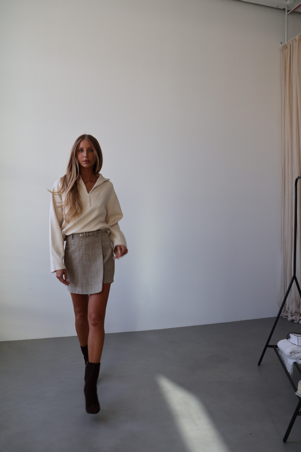 Sweter polo Arlon w beżowym odcieniu wykonany jest z miękkiego materiału z wiskozą, która nadaje mu lekkość, delikatny połysk i przyjemną miękkość w dotyku. Materiał jest komfortowy dla skóry i naturalnie oddychający, a klasyczny fason polo z zamkiem dodaje nowoczesnego charakteru. Idealny wybór dla osób ceniących elegancję połączoną z codziennym komfortem.