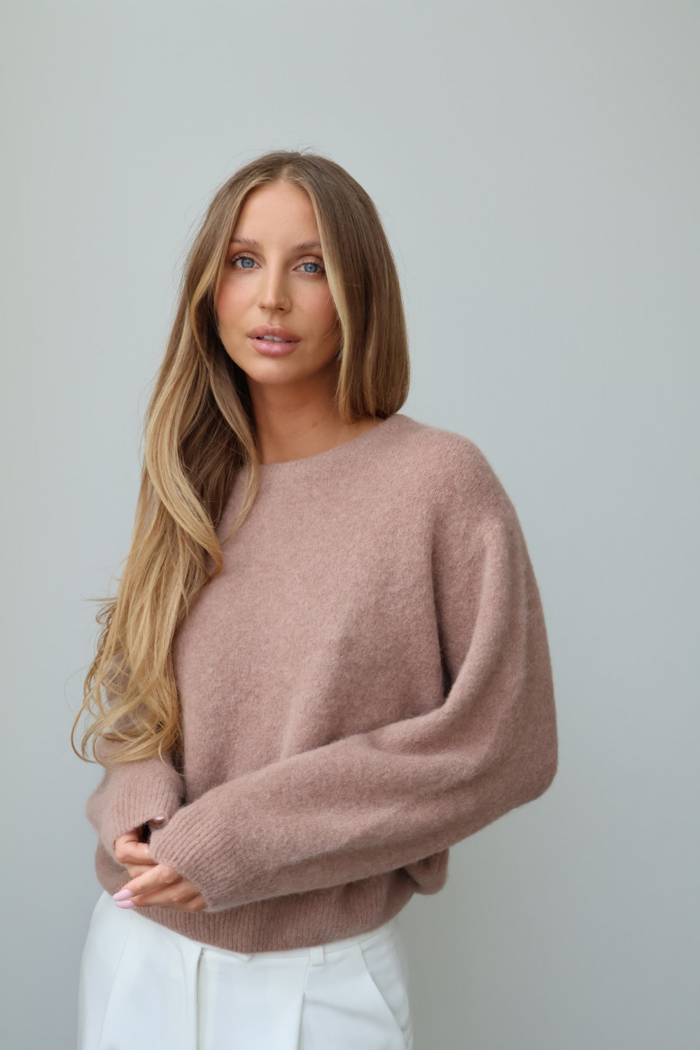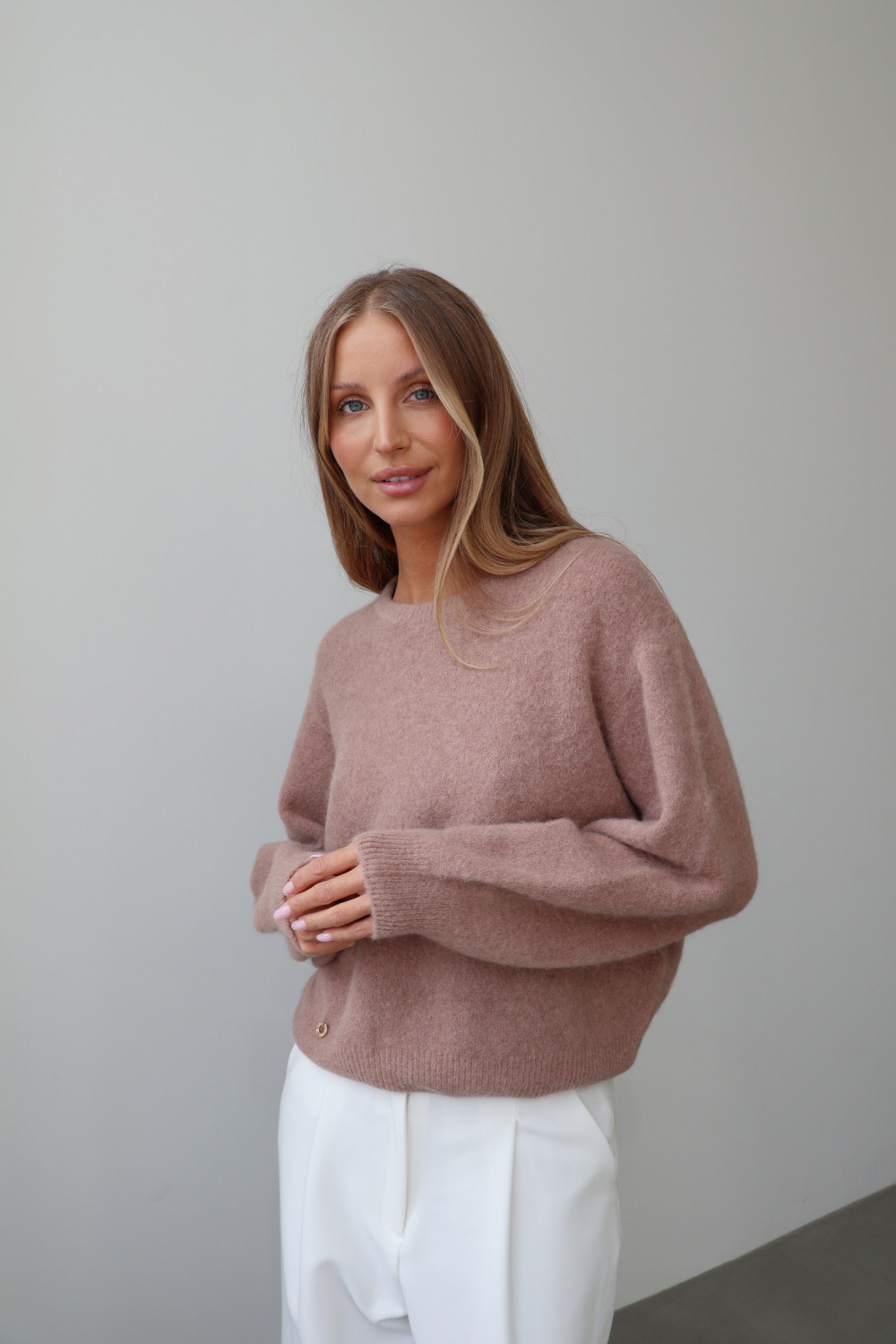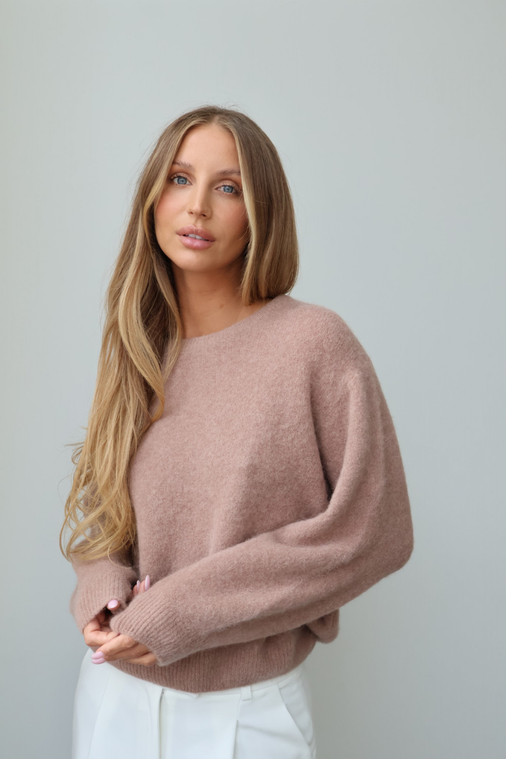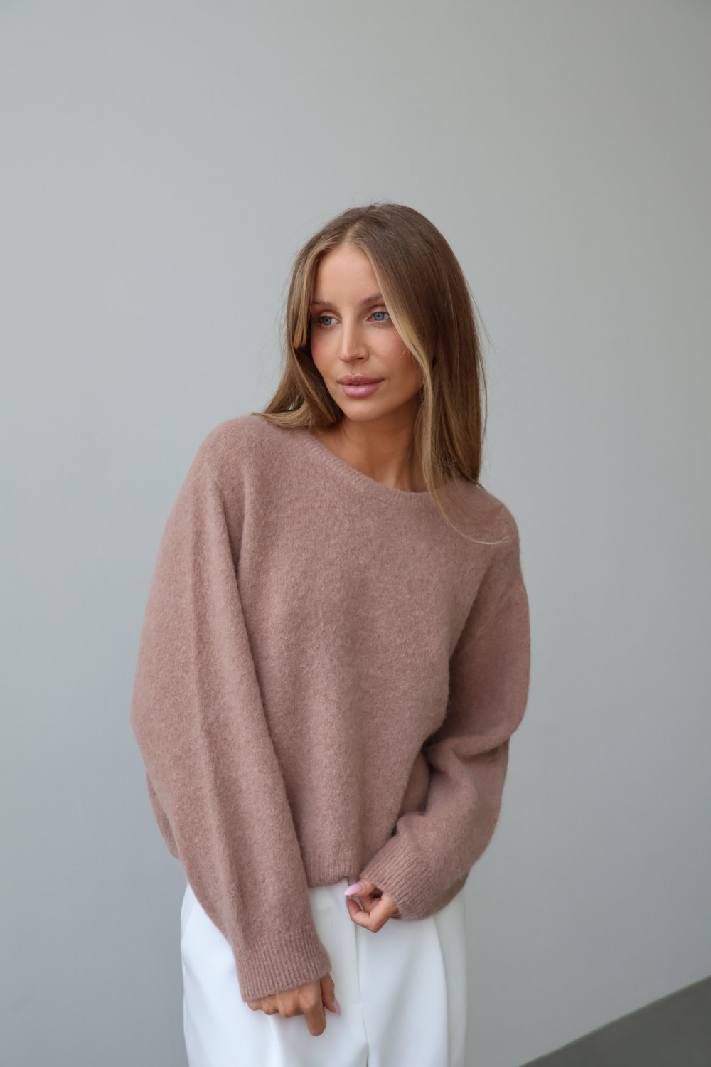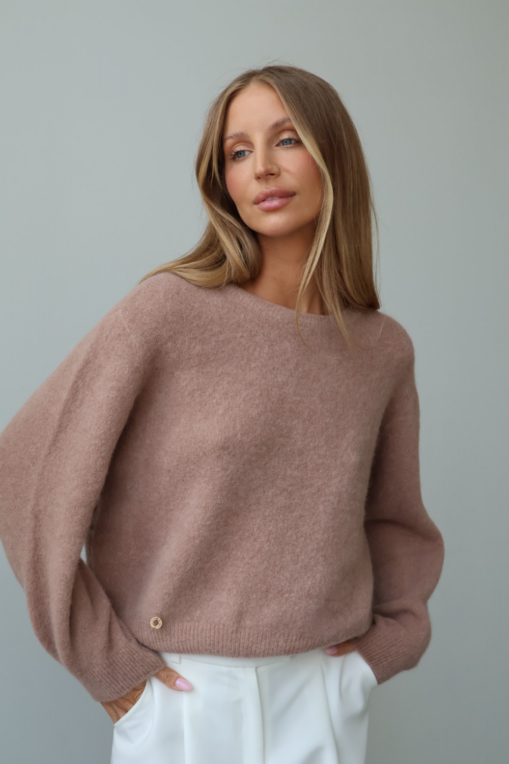 Sweter z baby alpaką i wełną merino CLARESE blush taupe