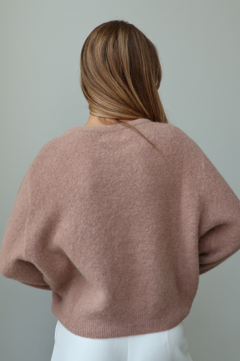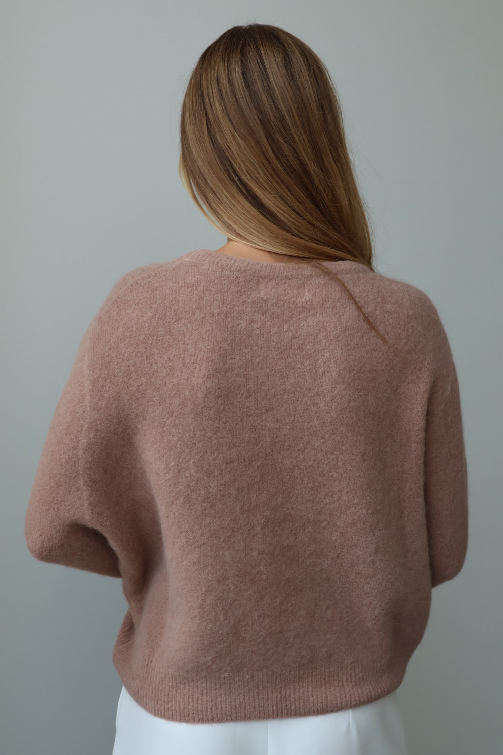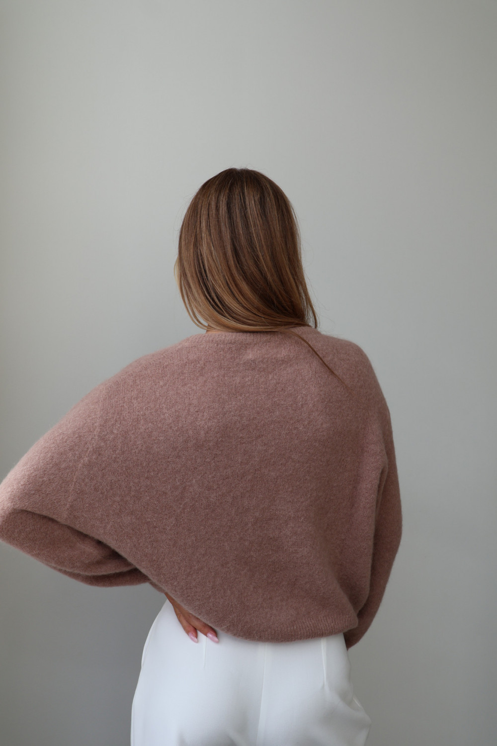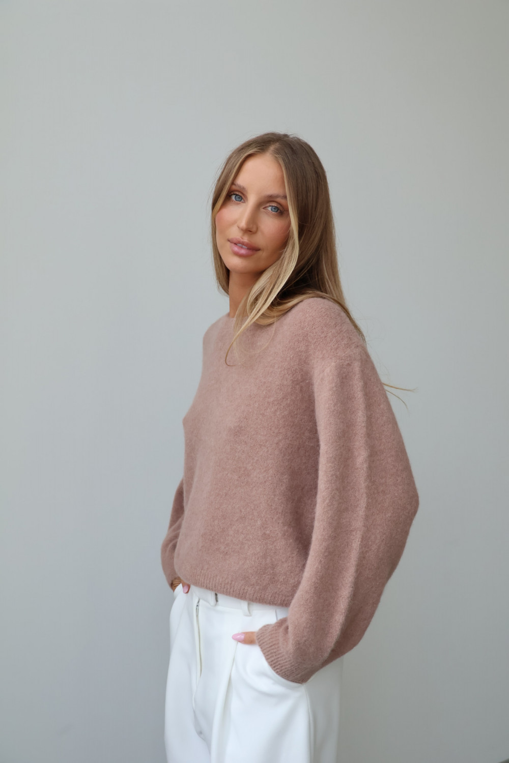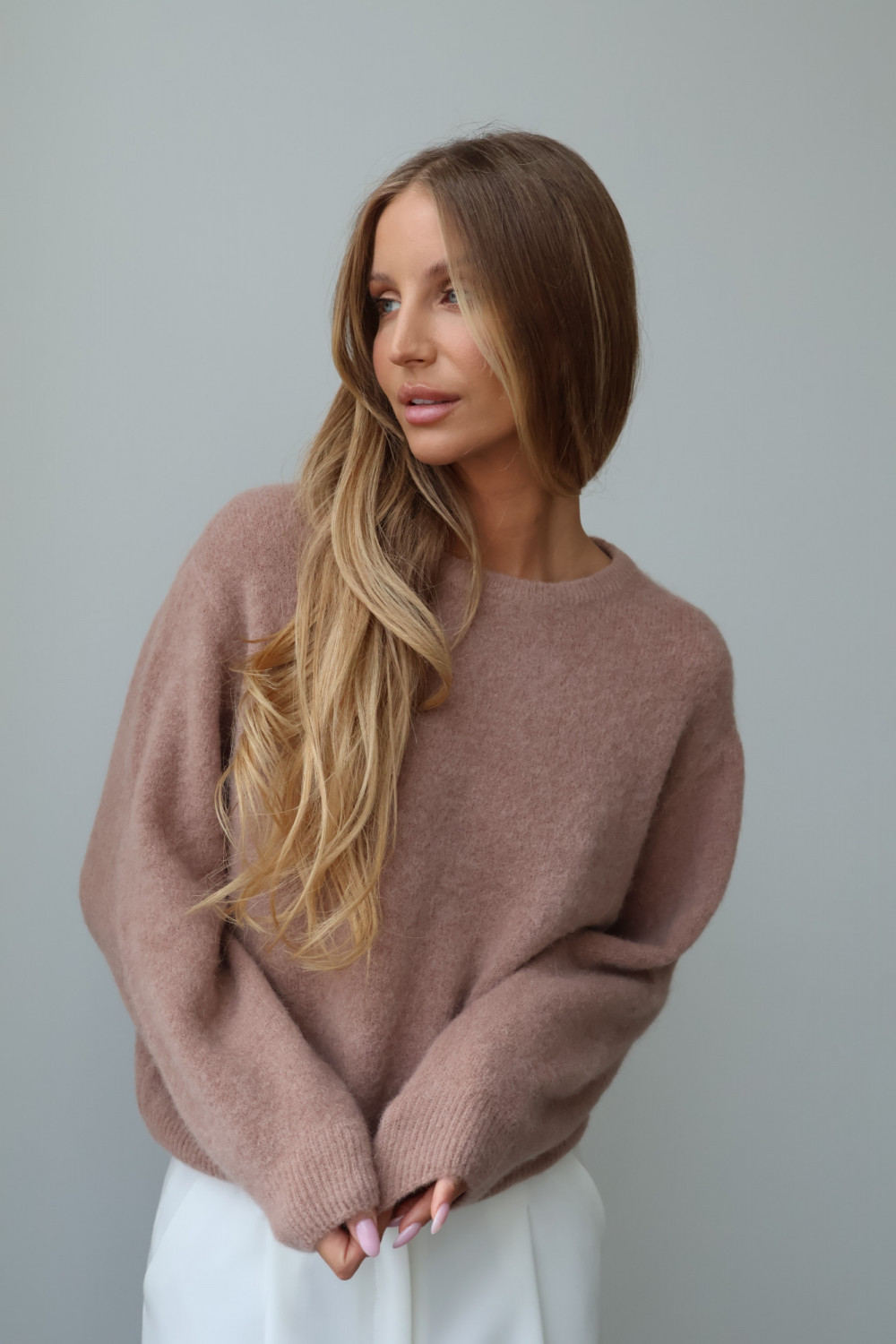 Sweter z baby alpaką i wełną merino CLARESE blush taupe