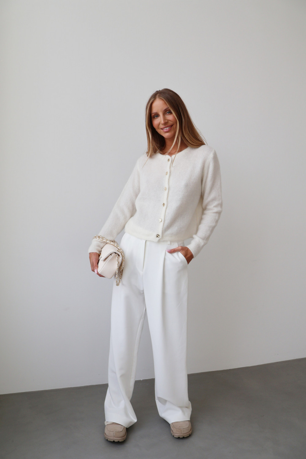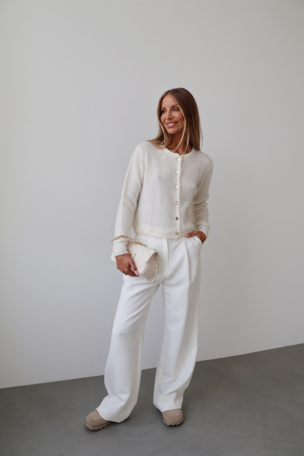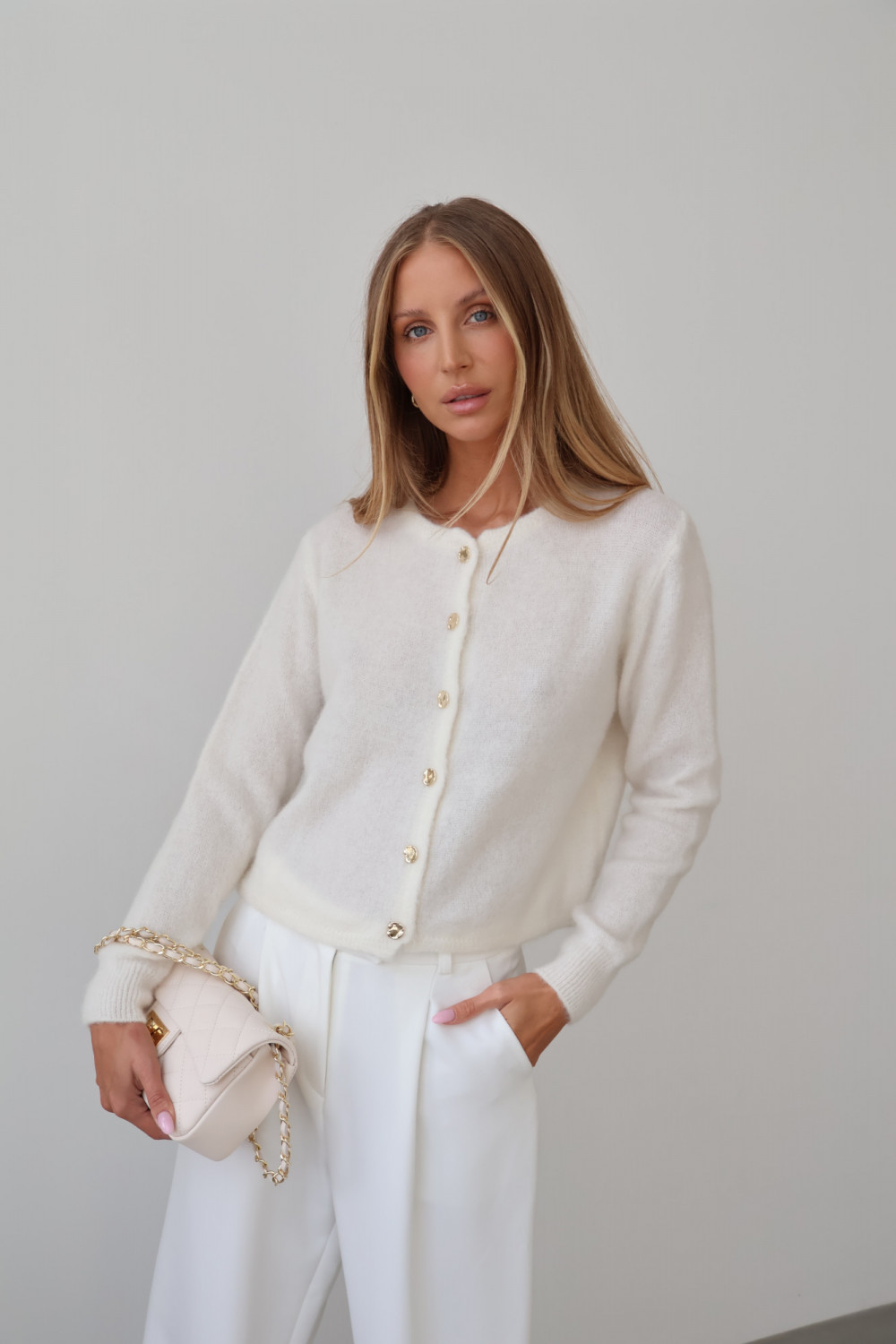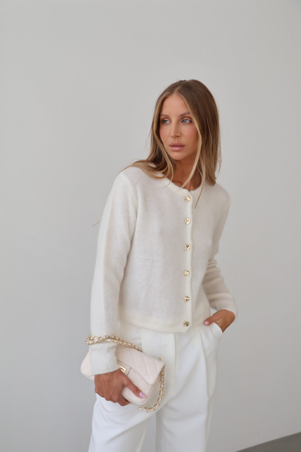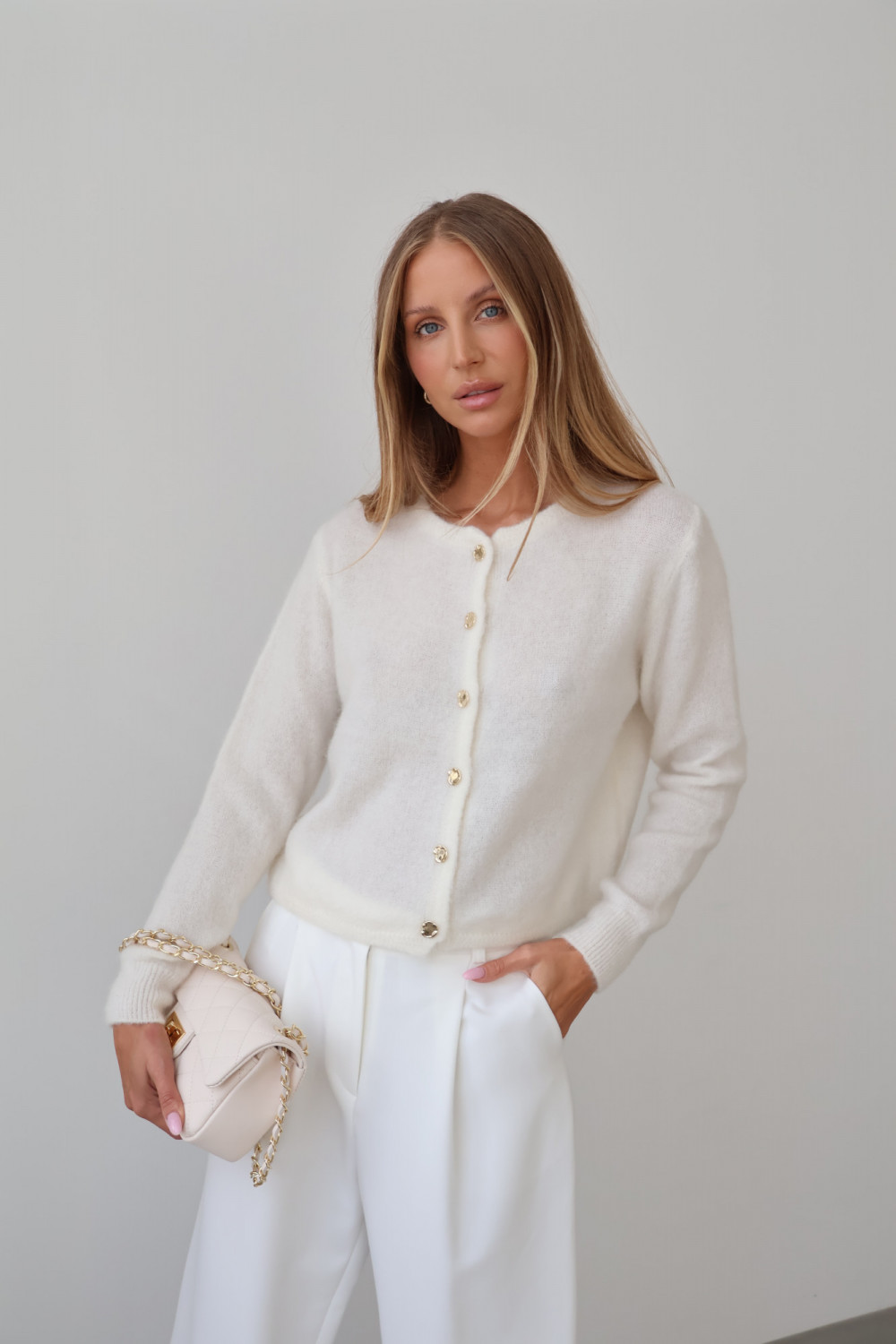 Kardigan z kid moherem i wełną merino premium ze złotymi guzikami premium śmietanka AURE