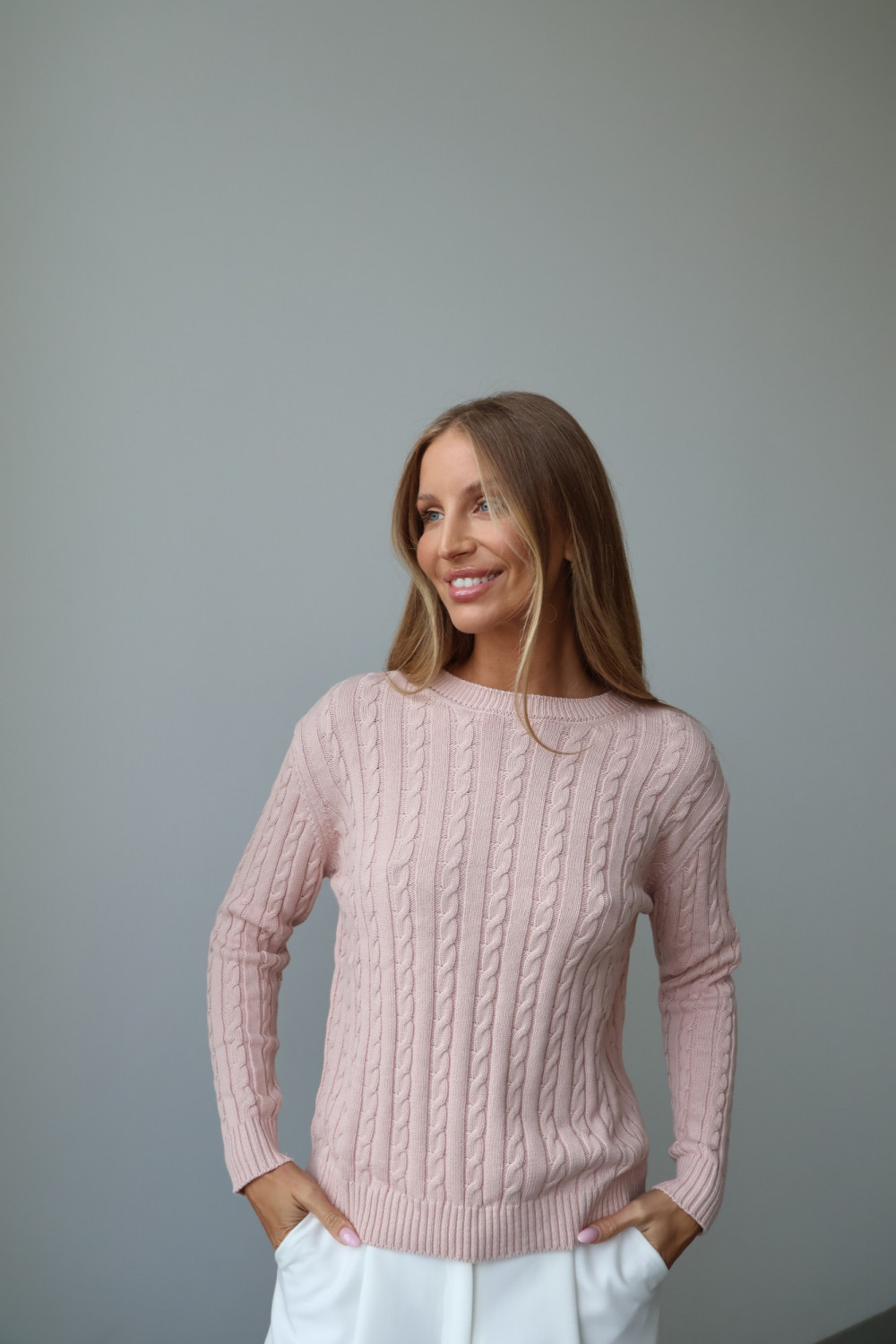 Sweter 100% bawełna pudrowy róż OXFORD