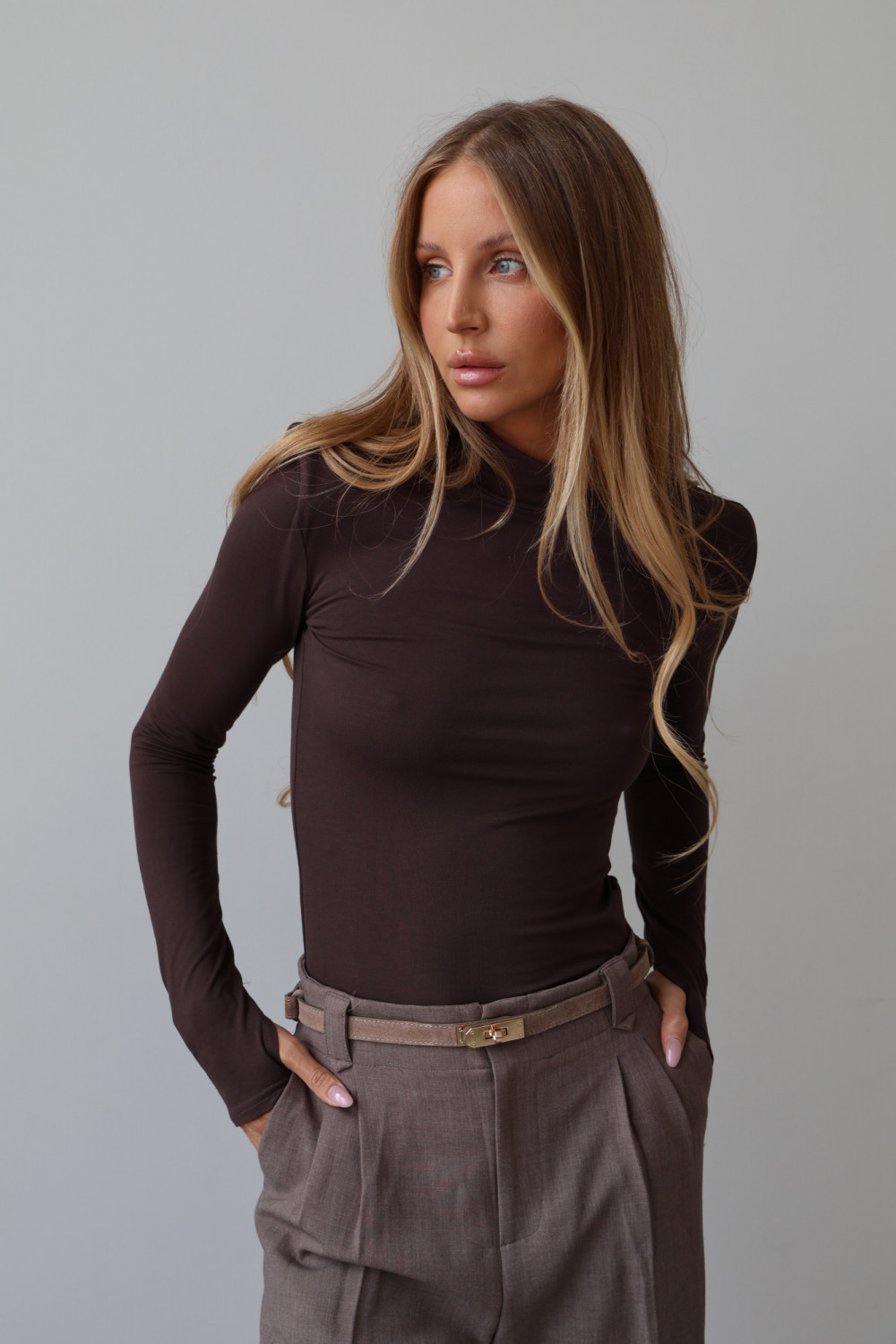 Golf AMELINE w kolorze czekolady to idealny wybór dla kobiet ceniących komfort, modny design i ponadczasowy szyk w codziennych oraz wyjściowych stylizacjach.