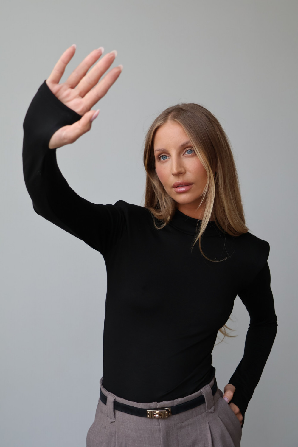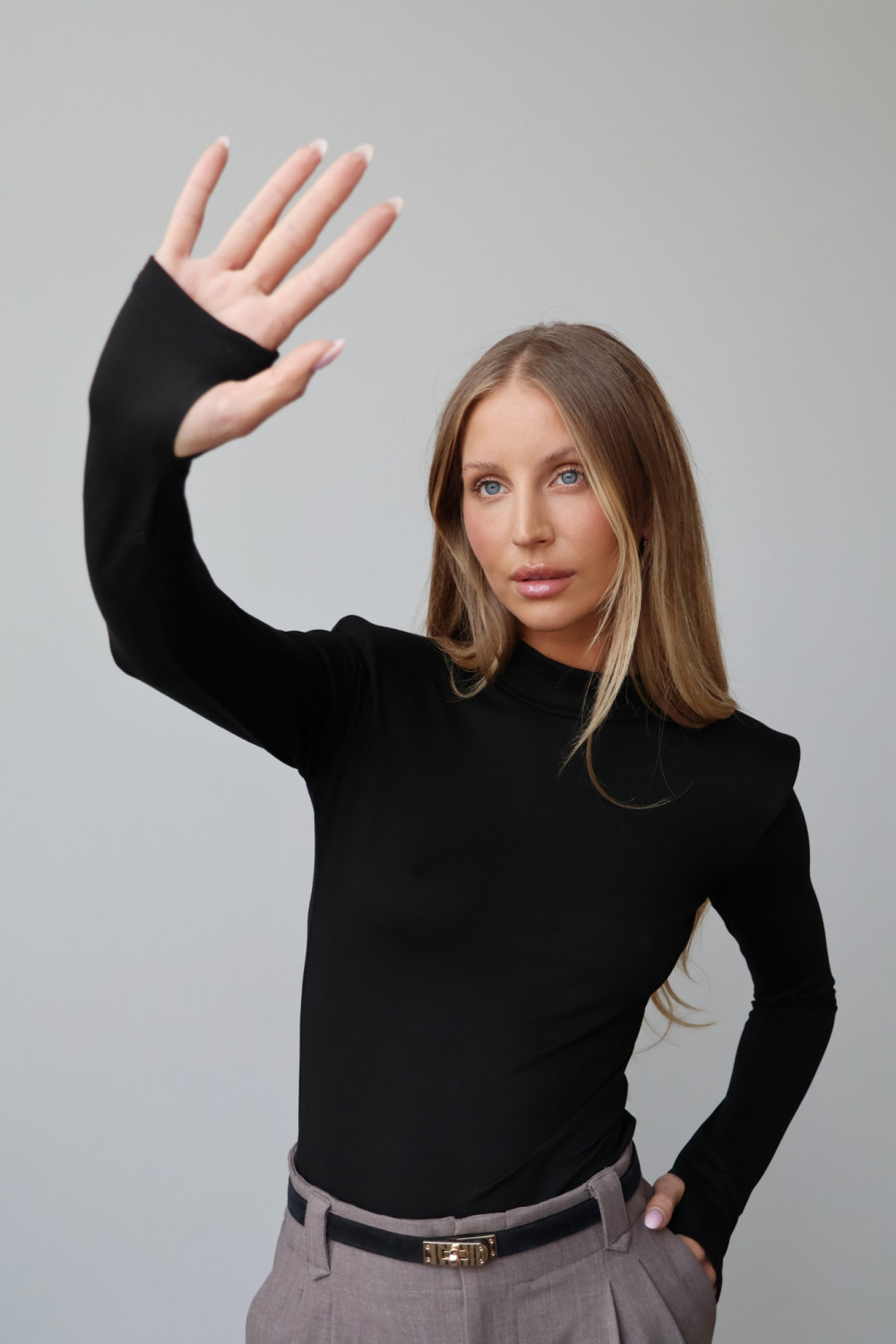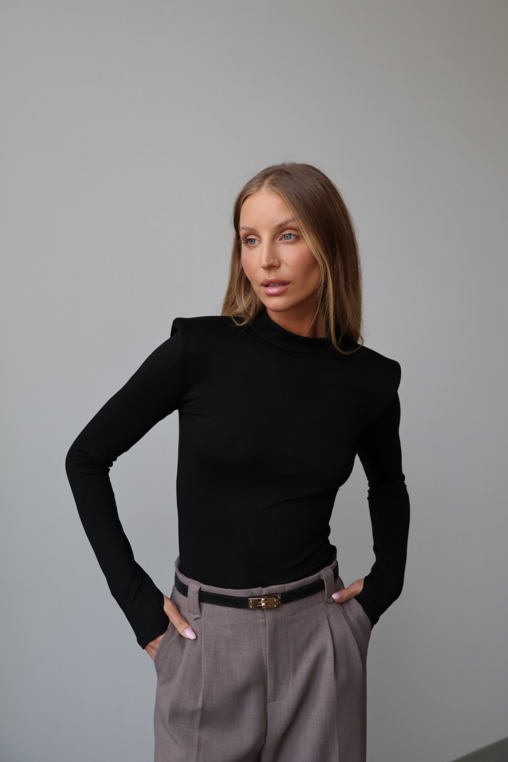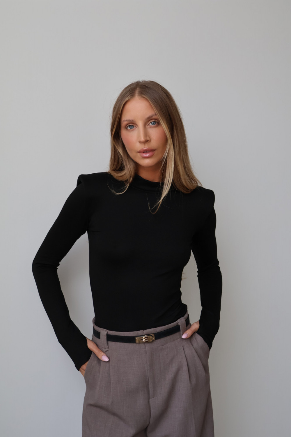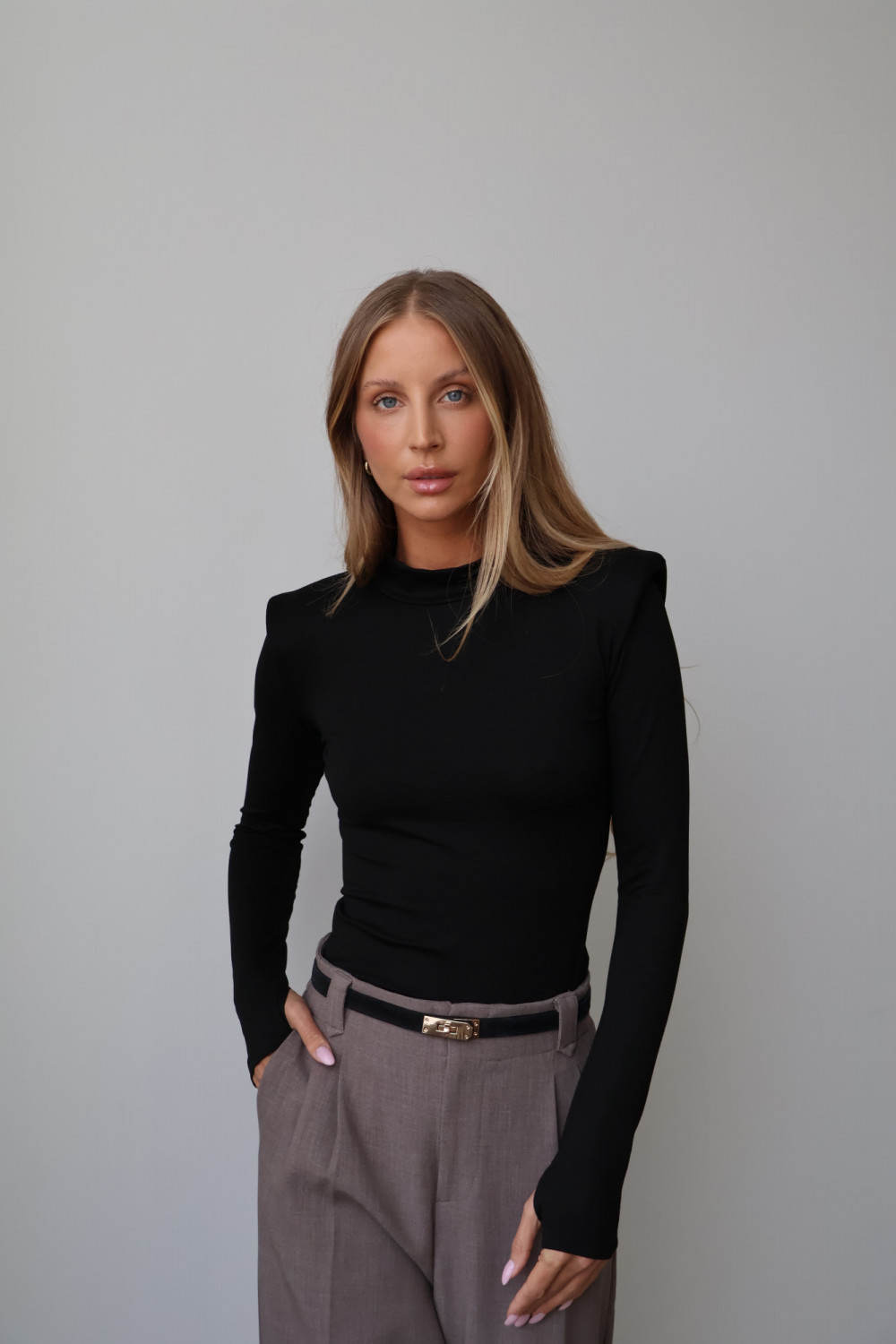 Poduszki na ramionach nadają golfowi modnego, subtelnie awangardowego charakteru, podkreślając sylwetkę i dodając stylowego akcentu każdej stylizacji. Klasyczny, czarny kolor sprawia, że golf AMELINE jest uniwersalny i łatwo zestawić go zarówno z casualowymi, jak i eleganckimi outfitami.