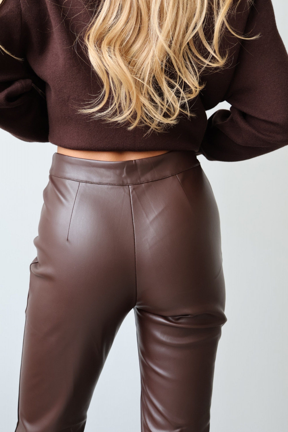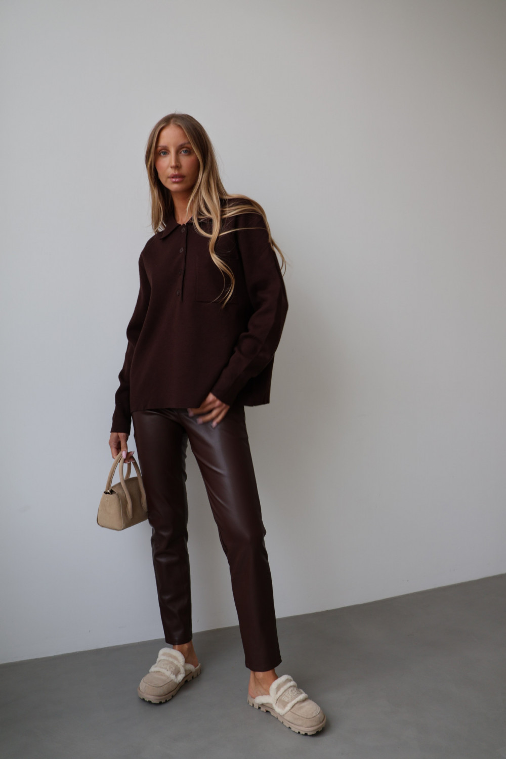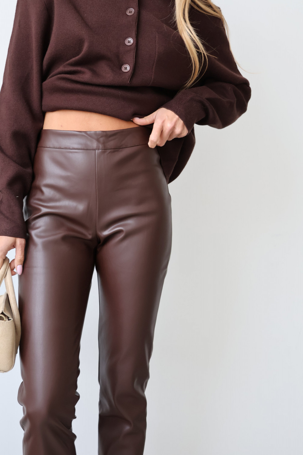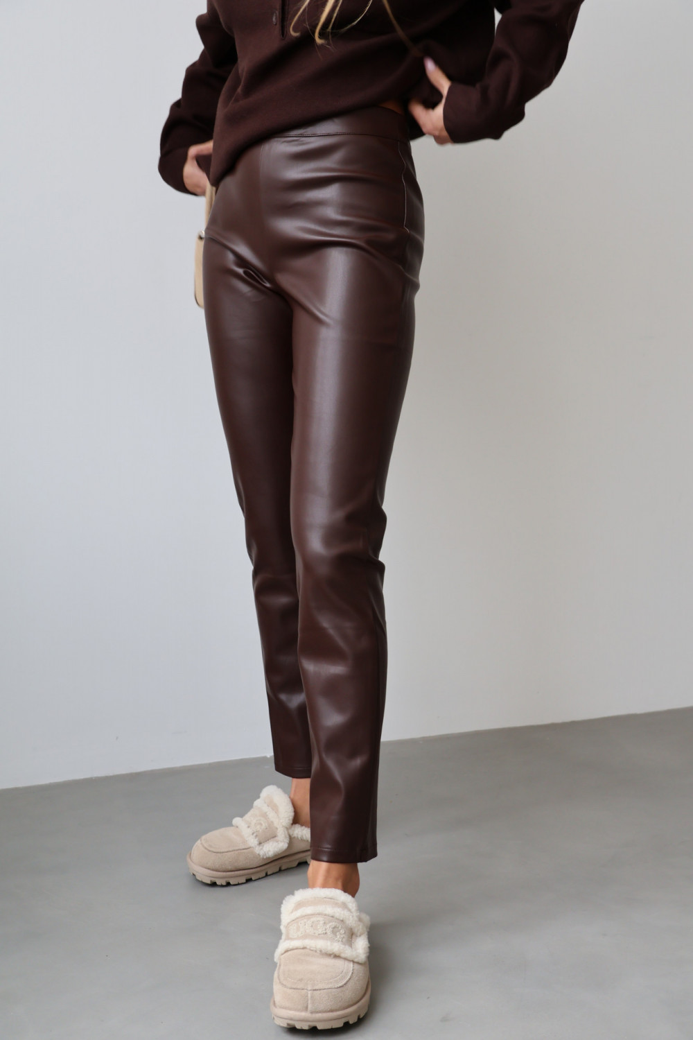 Legginsy z ekoskóry LECCE w kolorze czekolady to idealny wybór dla kobiet, które cenią styl, wygodę i uniwersalność w codziennych oraz wieczorowych stylizacjach.