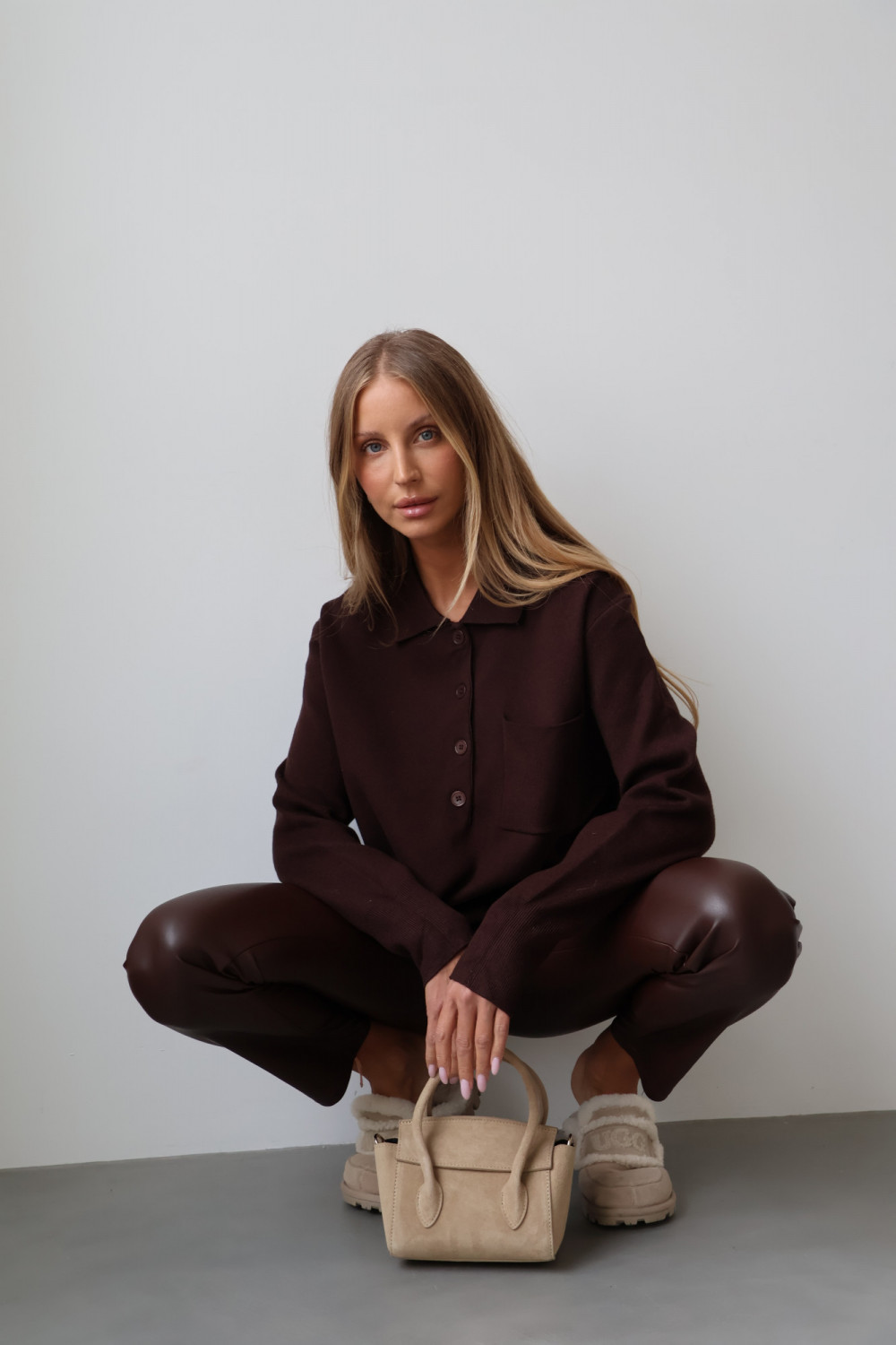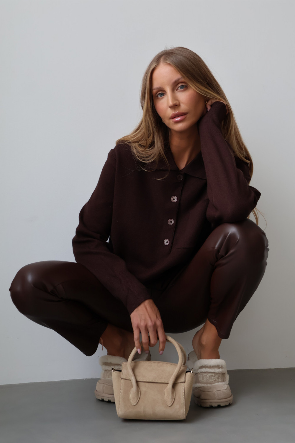 Głęboki, czekoladowy kolor nadaje legginsom klasy i uniwersalności, dzięki czemu łatwo zestawić je zarówno z casualowymi, jak i bardziej wyjściowymi elementami garderoby. Elastyczny materiał gwarantuje komfort noszenia przez cały dzień, a minimalistyczny design sprawia, że legginsy LECCE są ponadczasowym elementem każdej garderoby.