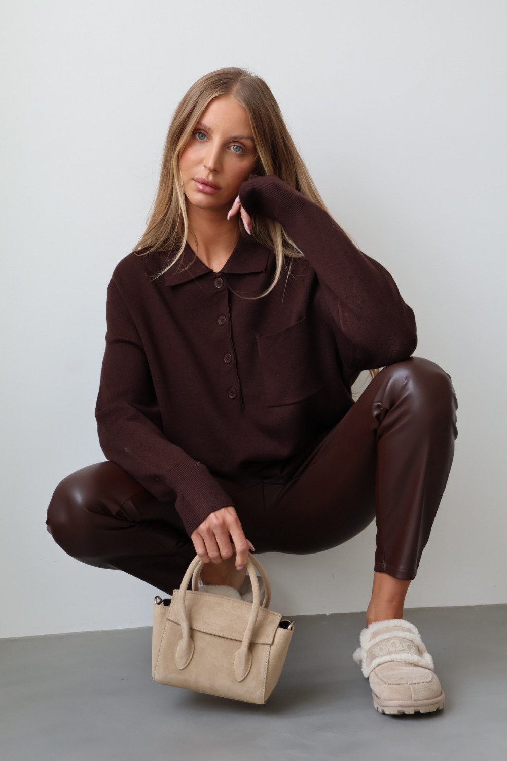 Legginsy LECCE w odcieniu czekolady to połączenie nowoczesnego stylu i wygody. Wykonane z wysokiej jakości ekoskóry, zapewniają doskonałe dopasowanie do sylwetki, podkreślając jej kształty i nadając efekt lekkości oraz elegancji.