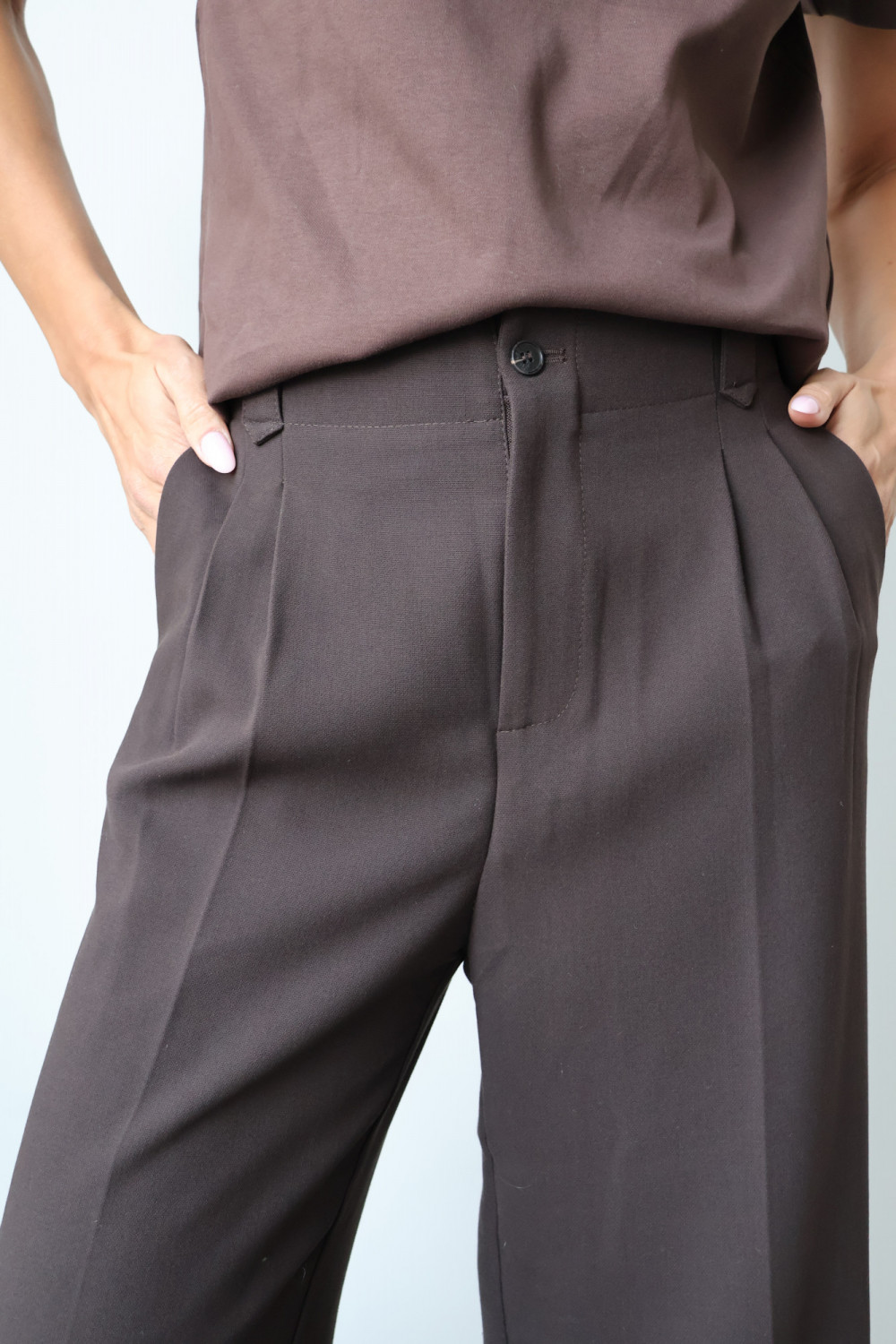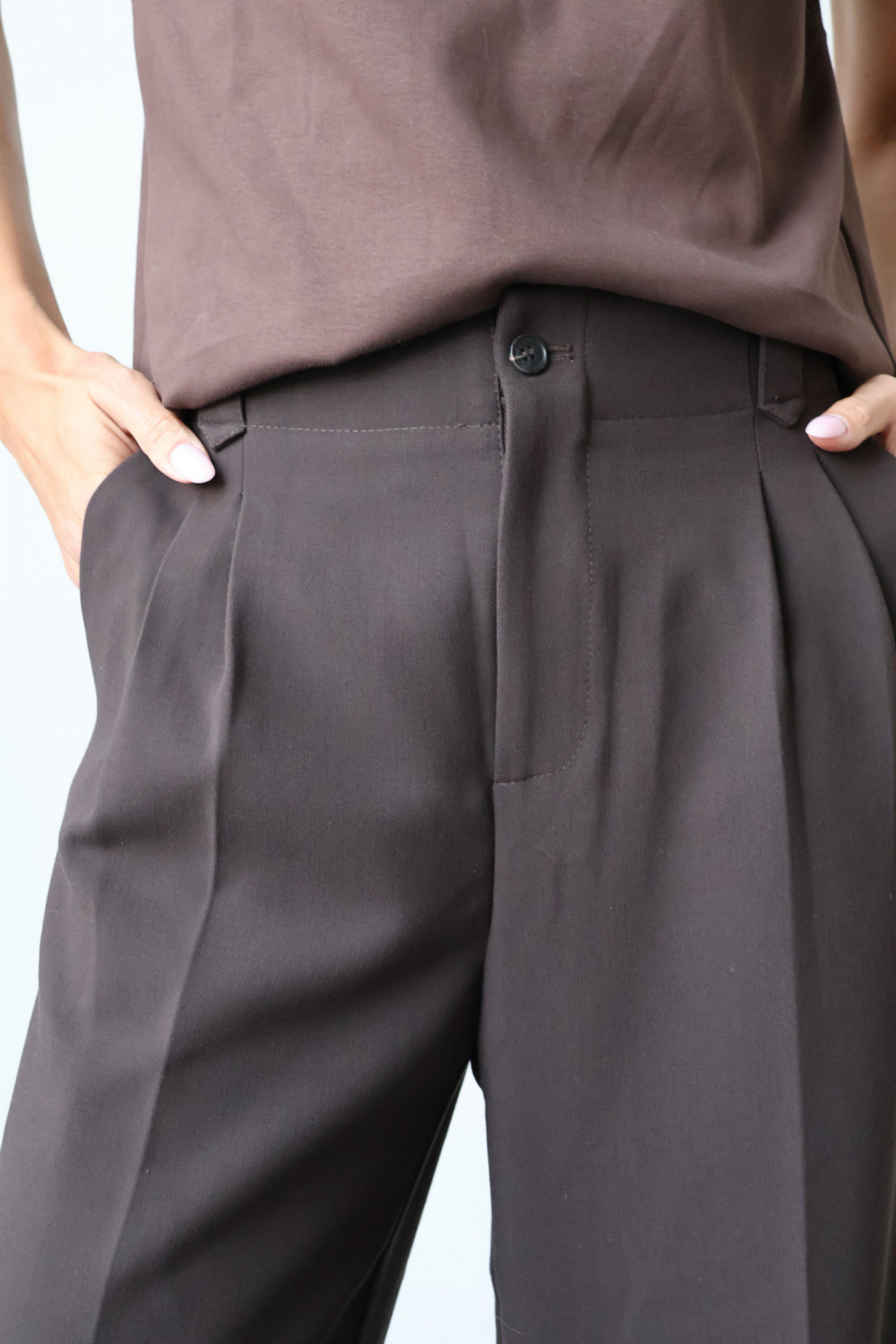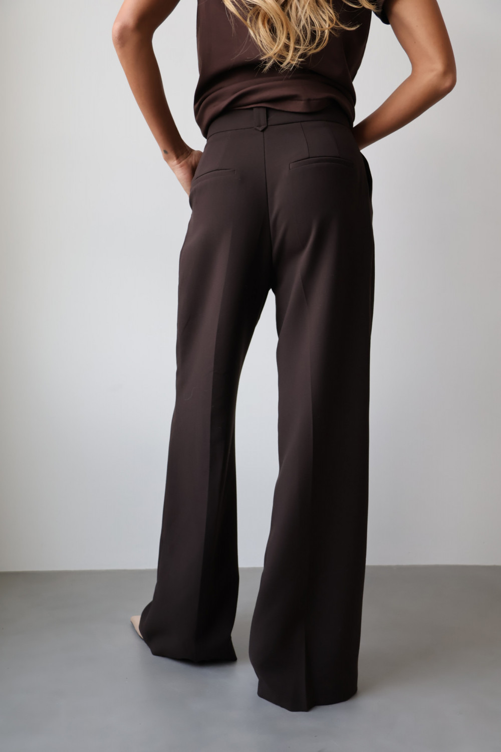 Spodnie ARLES w kolorze gorzkiej czekolady to idealny wybór dla kobiet, które cenią ponadczasowy krój, elegancję i wygodę – perfekcyjne zarówno do biura, jak i na bardziej formalne okazje.