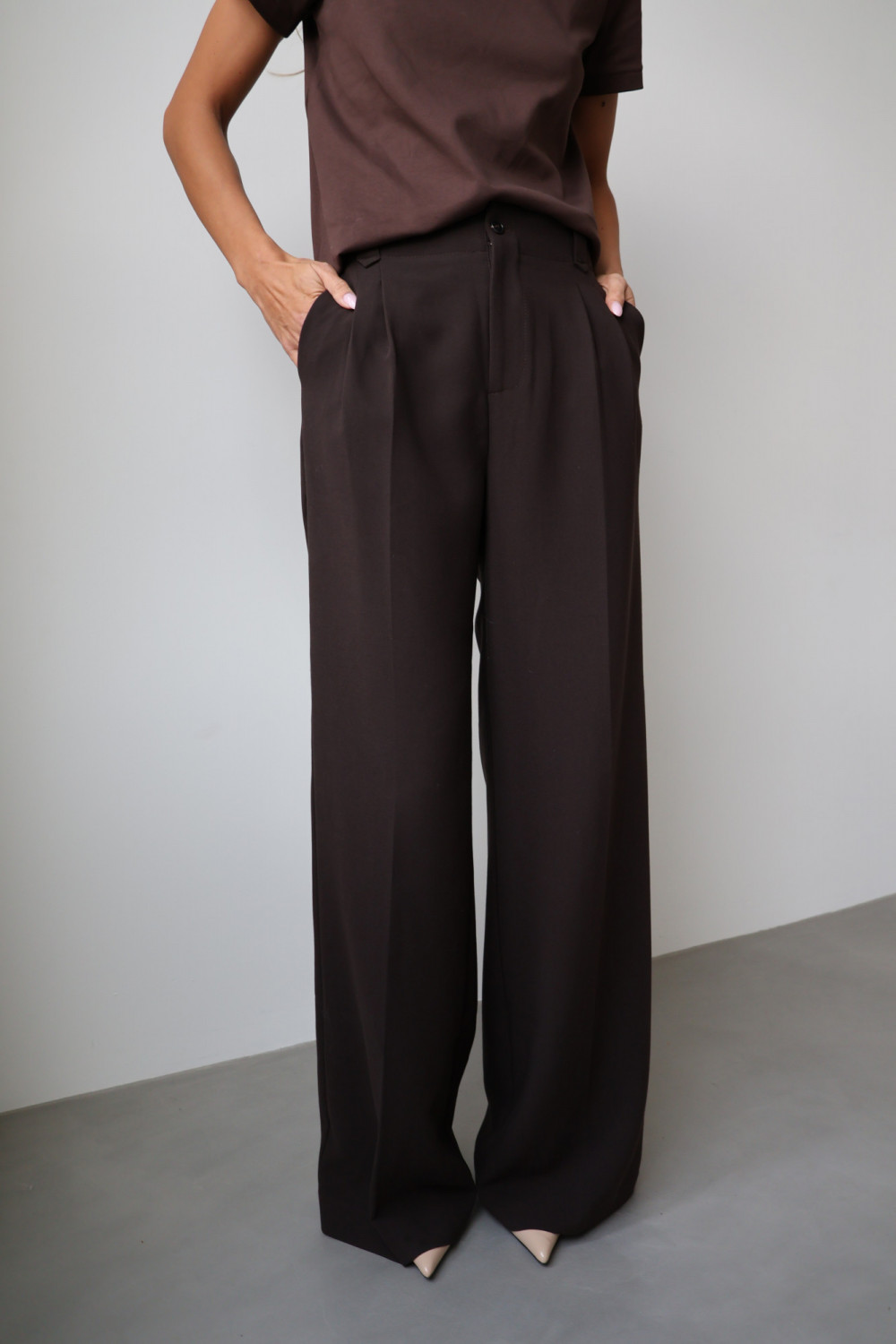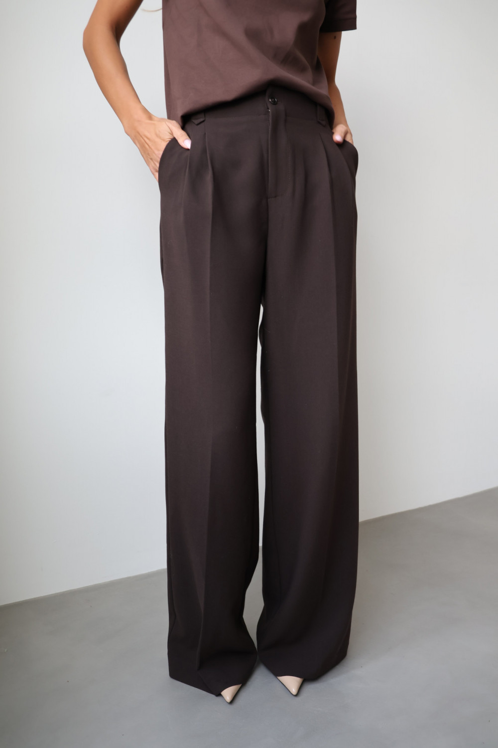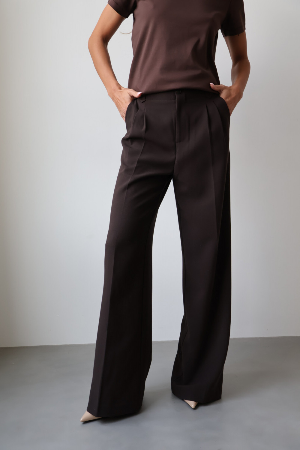 Spodnie ARLES w kolorze gorzkiej czekolady to idealny wybór dla kobiet, które cenią ponadczasowy krój, elegancję i wygodę – perfekcyjne zarówno do biura, jak i na bardziej formalne okazje.