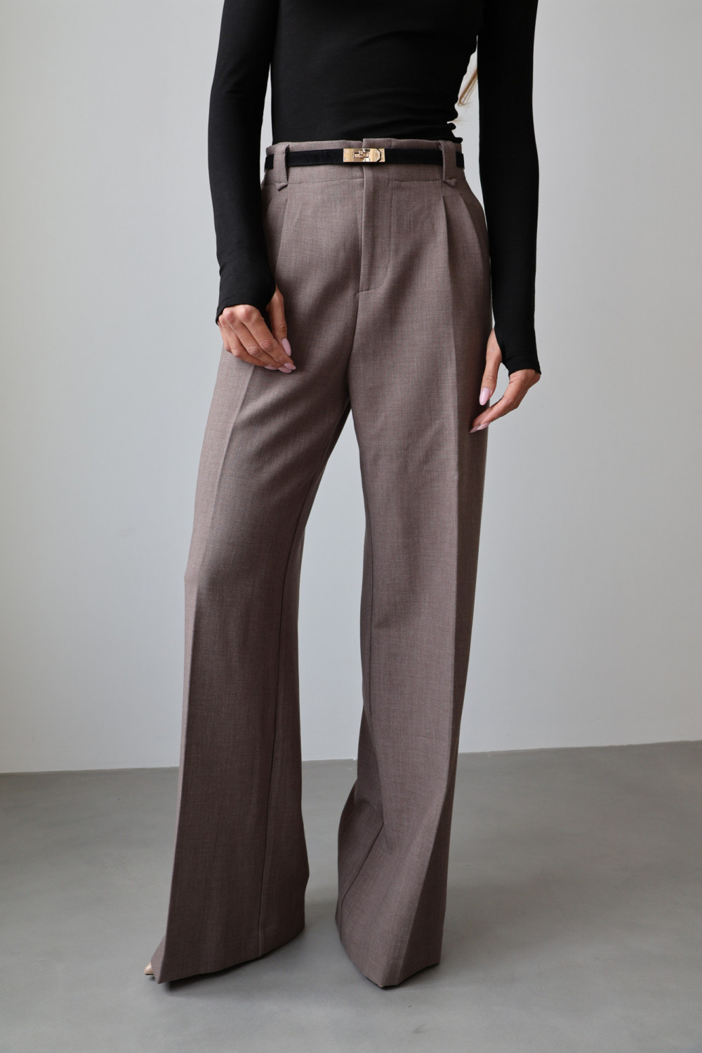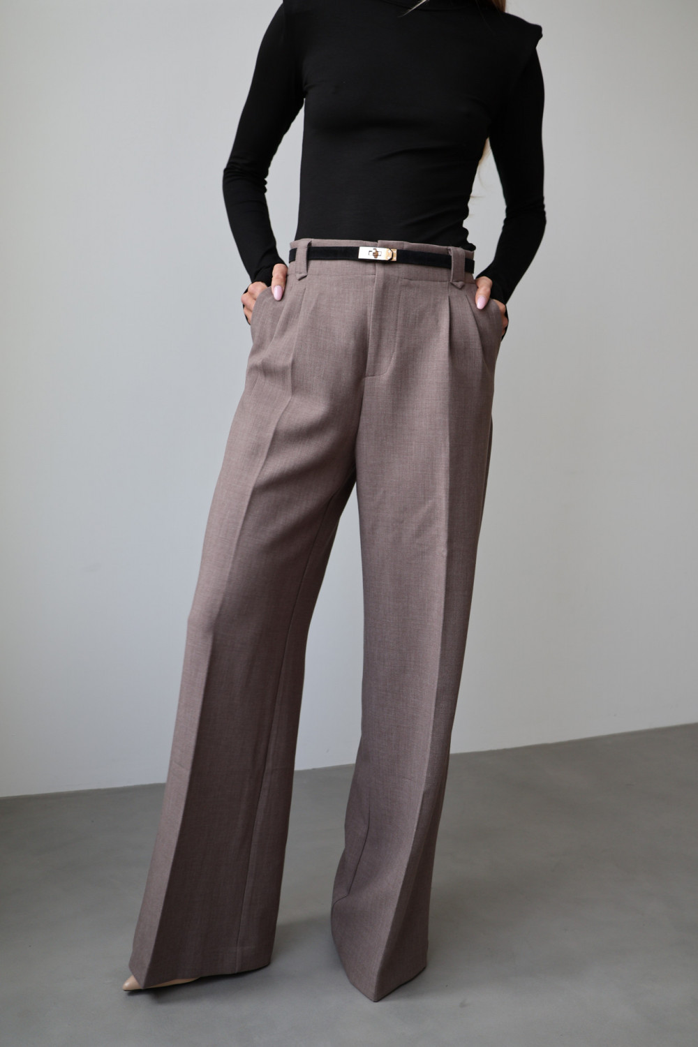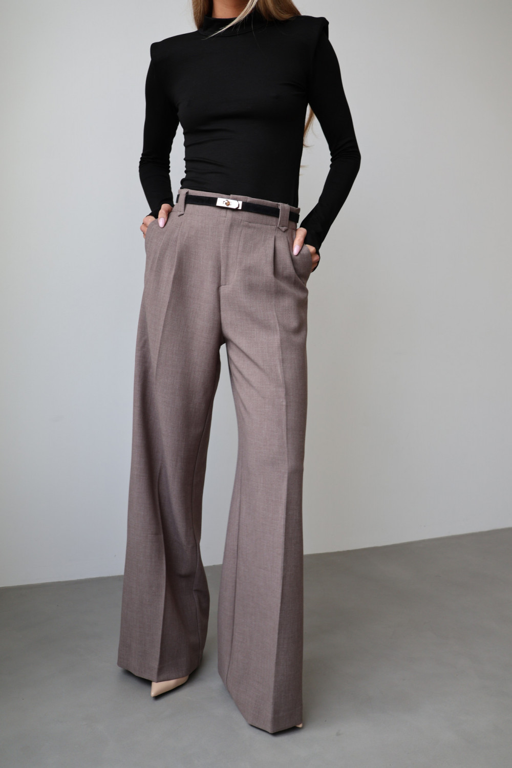 Spodnie ARLES w odcieniu norkowym to esencja elegancji w nowoczesnym wydaniu. Wysoki stan pięknie podkreśla talię, a rozszerzane nogawki optycznie wydłużają sylwetkę, nadając jej smukłości i lekkości. Wykonane z wysokiej jakości tkaniny, gwarantują komfort noszenia i idealne dopasowanie przez cały dzień.