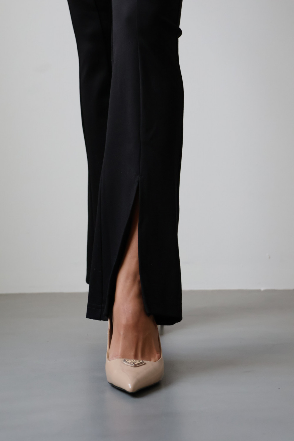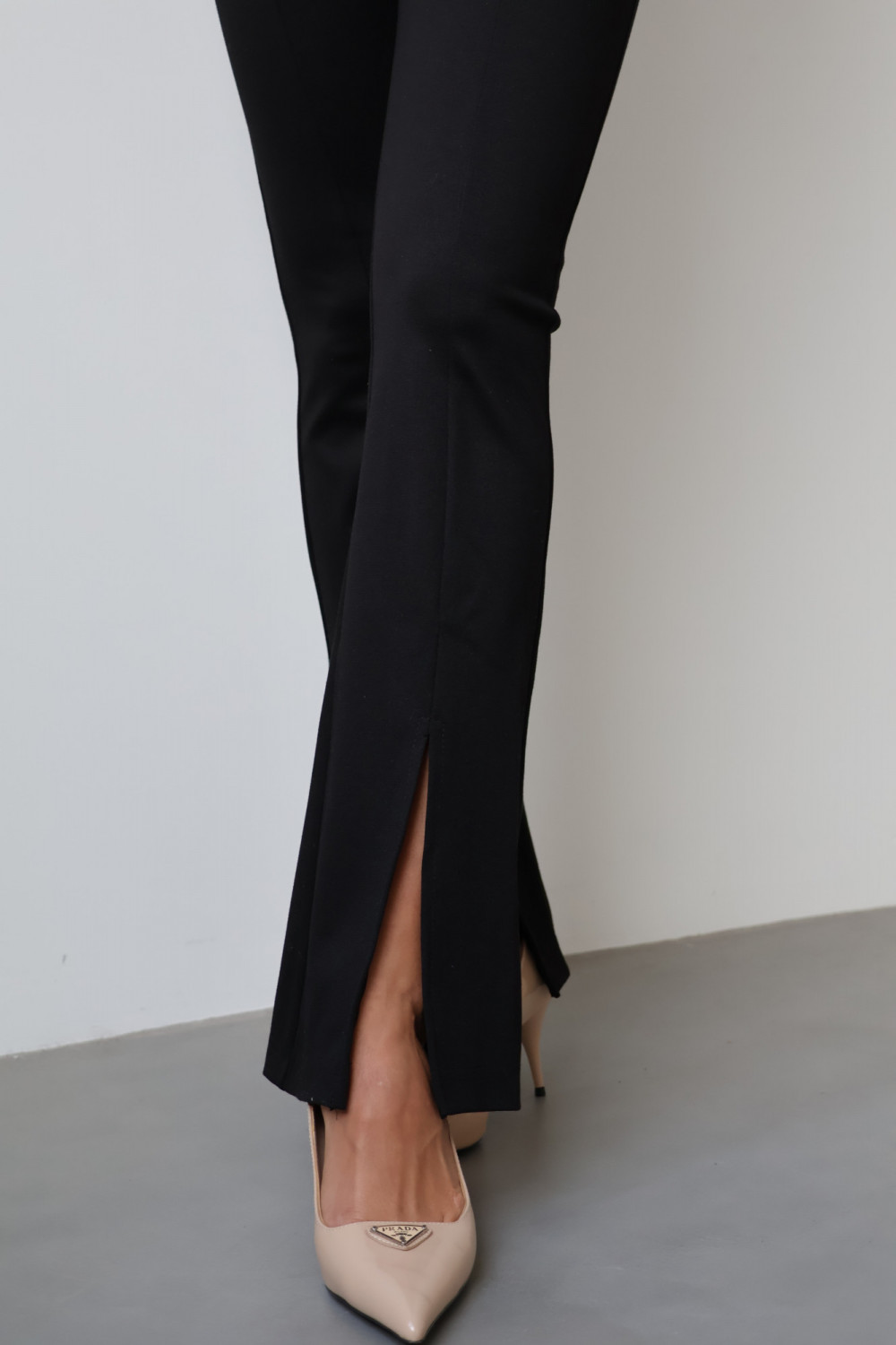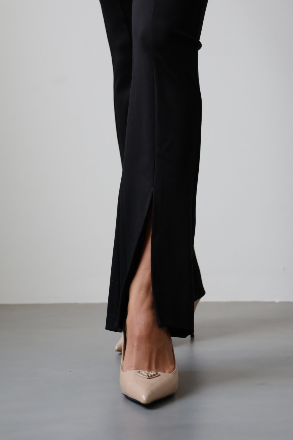 Subtelne rozcięcie przy nogawkach dodaje legginsom nowoczesnego charakteru, wprowadzając efektowny akcent do codziennych i wieczorowych stylizacji. Klasyczny, czarny kolor sprawia, że legginsy KATE łatwo zestawić z różnymi elementami garderoby, tworząc zarówno casualowe, jak i bardziej eleganckie outfity.