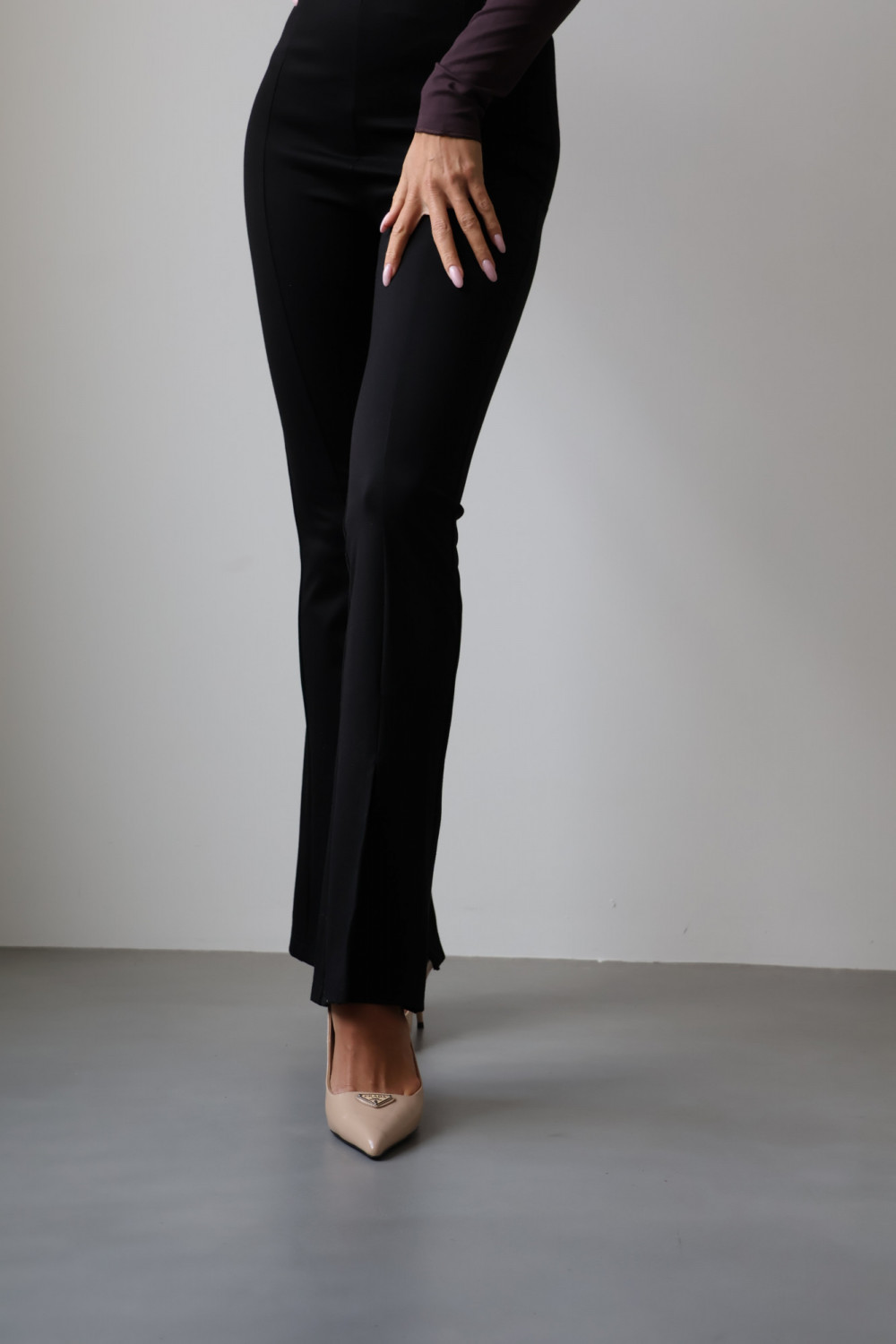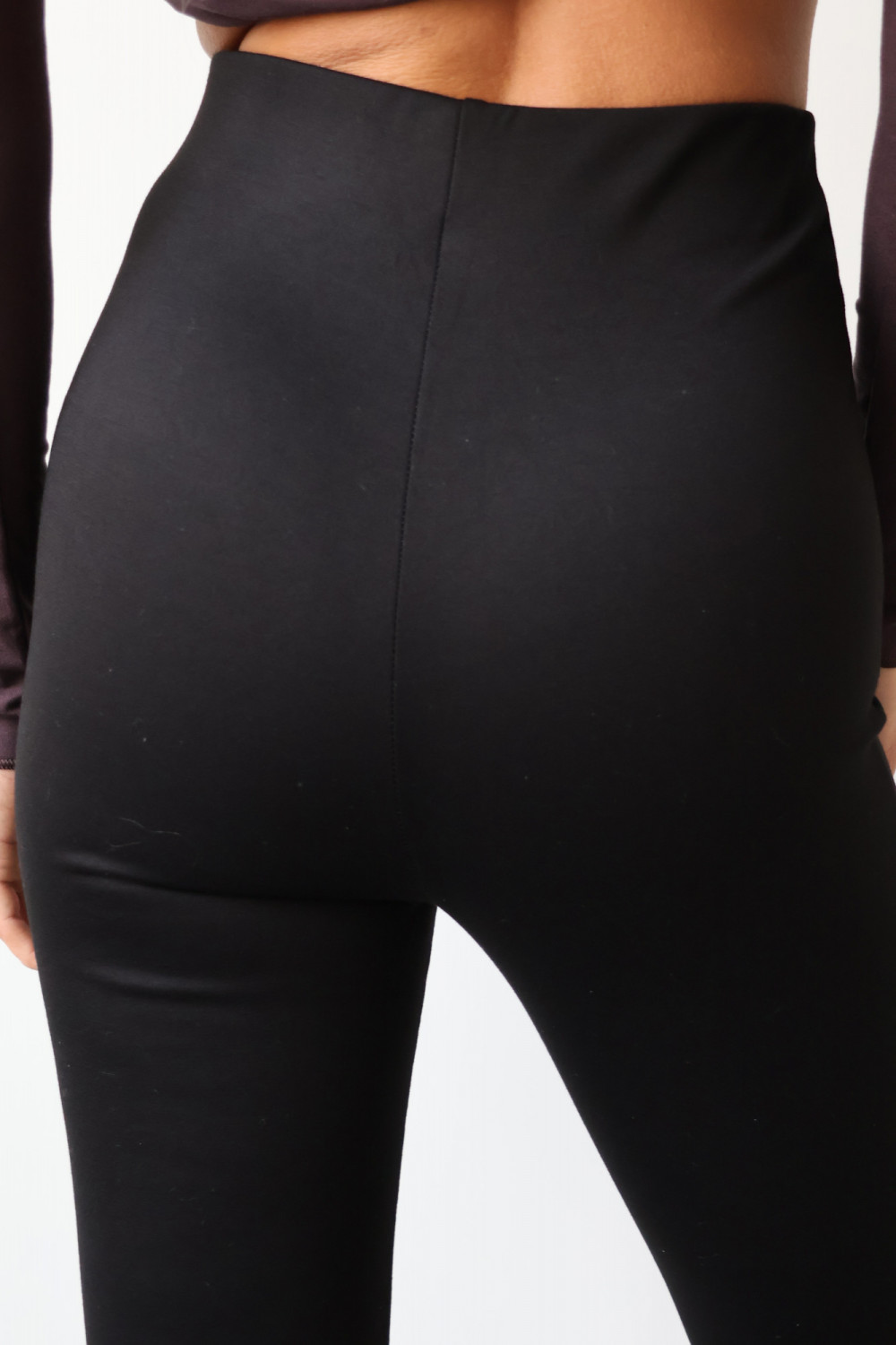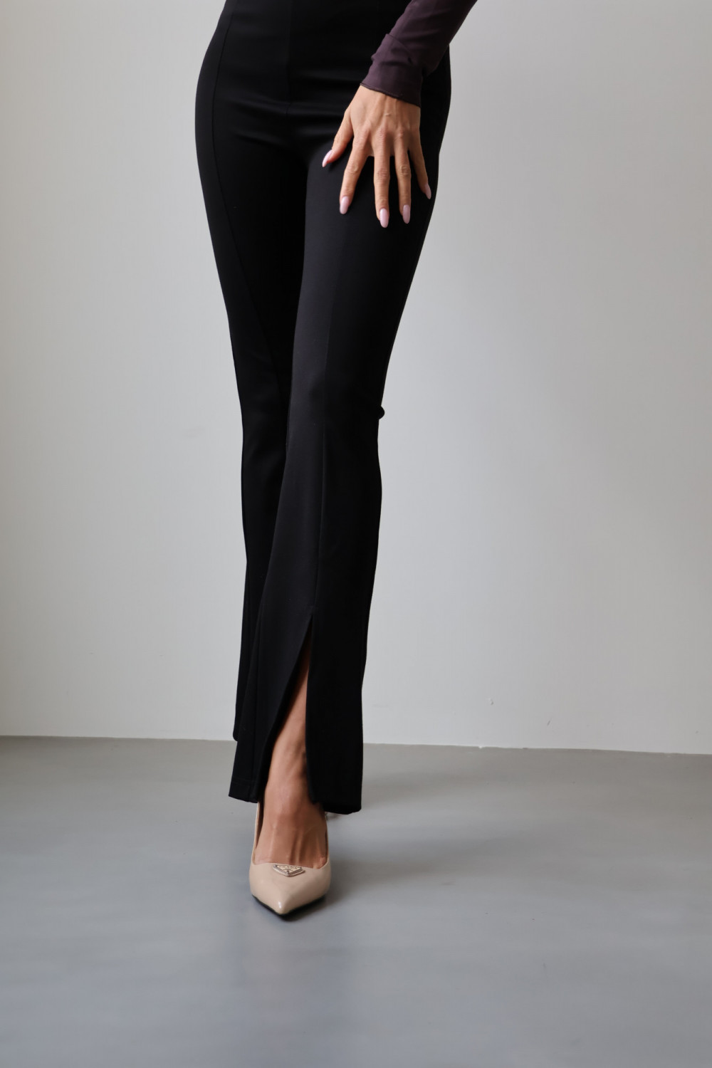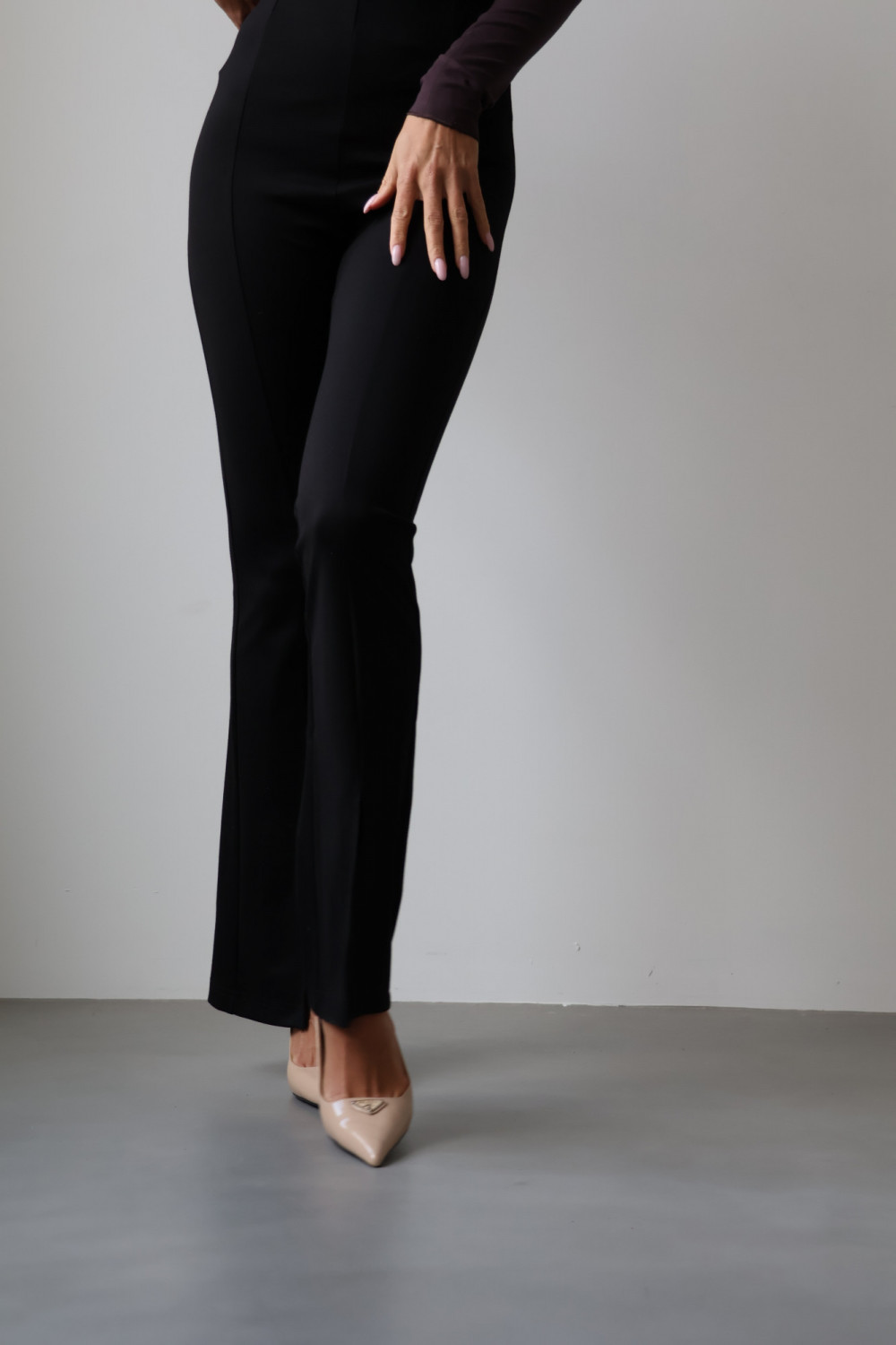Subtelne rozcięcie przy nogawkach dodaje legginsom nowoczesnego charakteru, wprowadzając efektowny akcent do codziennych i wieczorowych stylizacji. Klasyczny, czarny kolor sprawia, że legginsy KATE łatwo zestawić z różnymi elementami garderoby, tworząc zarówno casualowe, jak i bardziej eleganckie outfity.