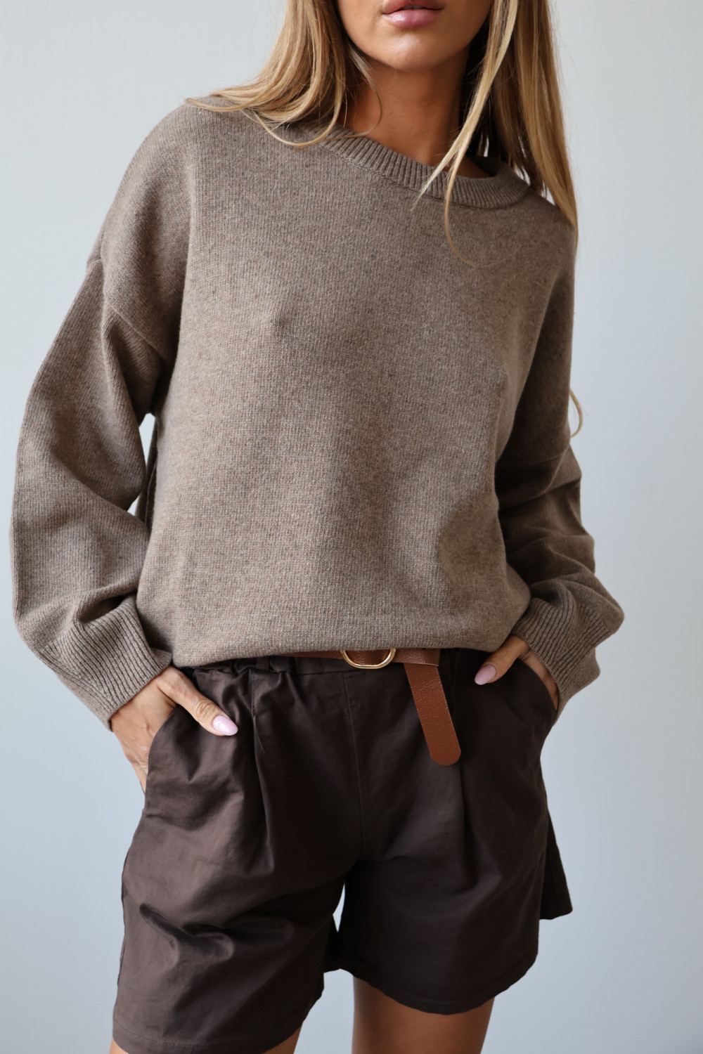 Sweter Lana w odcieniu taupe wykonany jest z wysokiej jakości wełny, która zachwyca miękkością, lekkością i naturalnym ciepłem. Materiał jest delikatny dla skóry i zapewnia komfort przez cały dzień, a klasyczny fason nadaje swetrowi subtelnej elegancji i ponadczasowego charakteru. Idealny wybór dla osób ceniących luksusowy komfort i wyrafinowany styl.