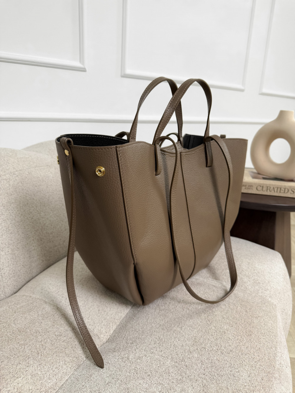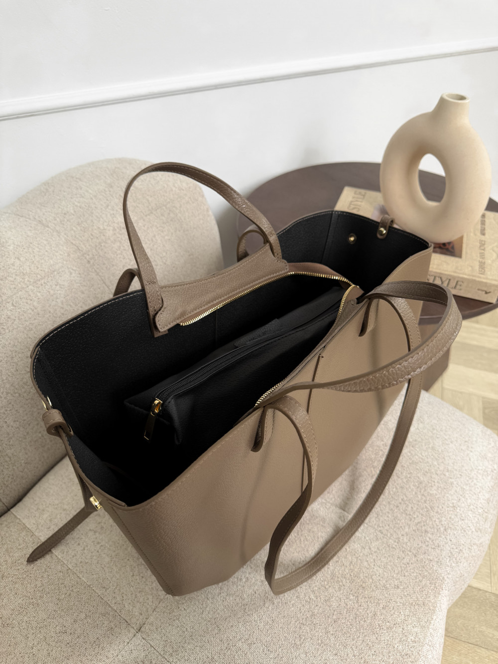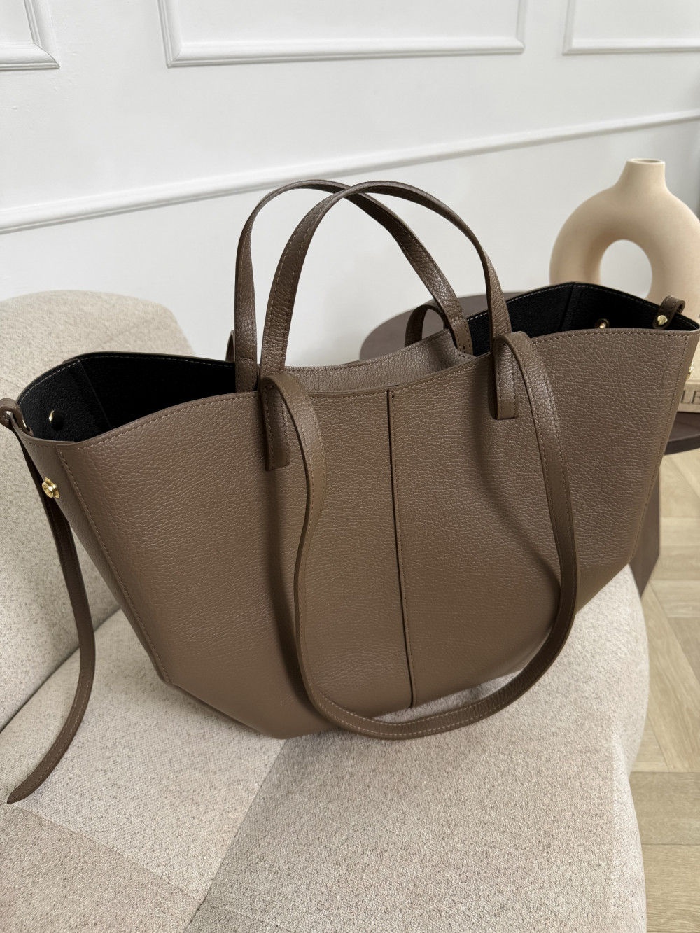 SOLENE MAXI w odcieniu taupe to wybór dla kobiet, które szukają pojemnej, a zarazem eleganckiej torebki – idealnej do pracy, na zakupy czy spotkania biznesowe, a także na wieczorne wyjścia.