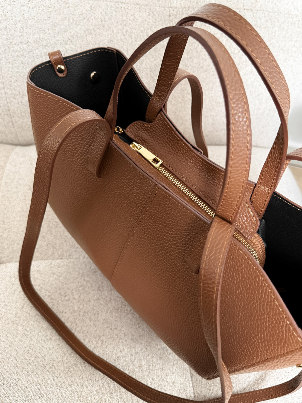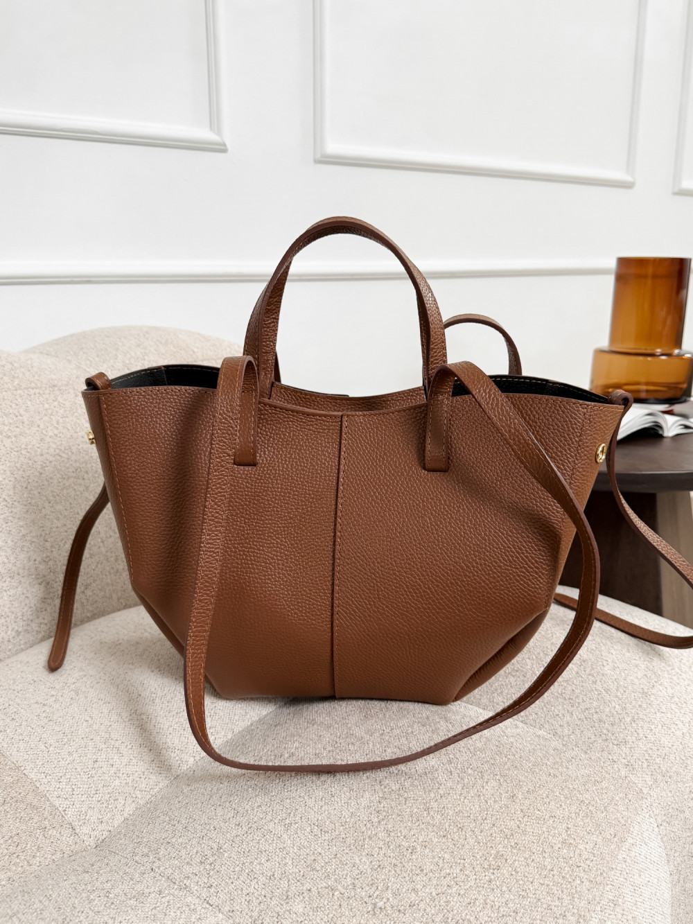 Torebka SOLENE w odcieniu camel to połączenie elegancji i funkcjonalności, które świetnie komponuje się z różnorodnymi stylizacjami. Wykonana z wysokiej jakości skóry naturalnej, zachwyca ciepłym, uniwersalnym odcieniem, który dodaje jej charakteru i ponadczasowego uroku. Minimalistyczny design sprawia, że to idealny wybór zarówno na co dzień, jak i na wyjątkowe okazje.