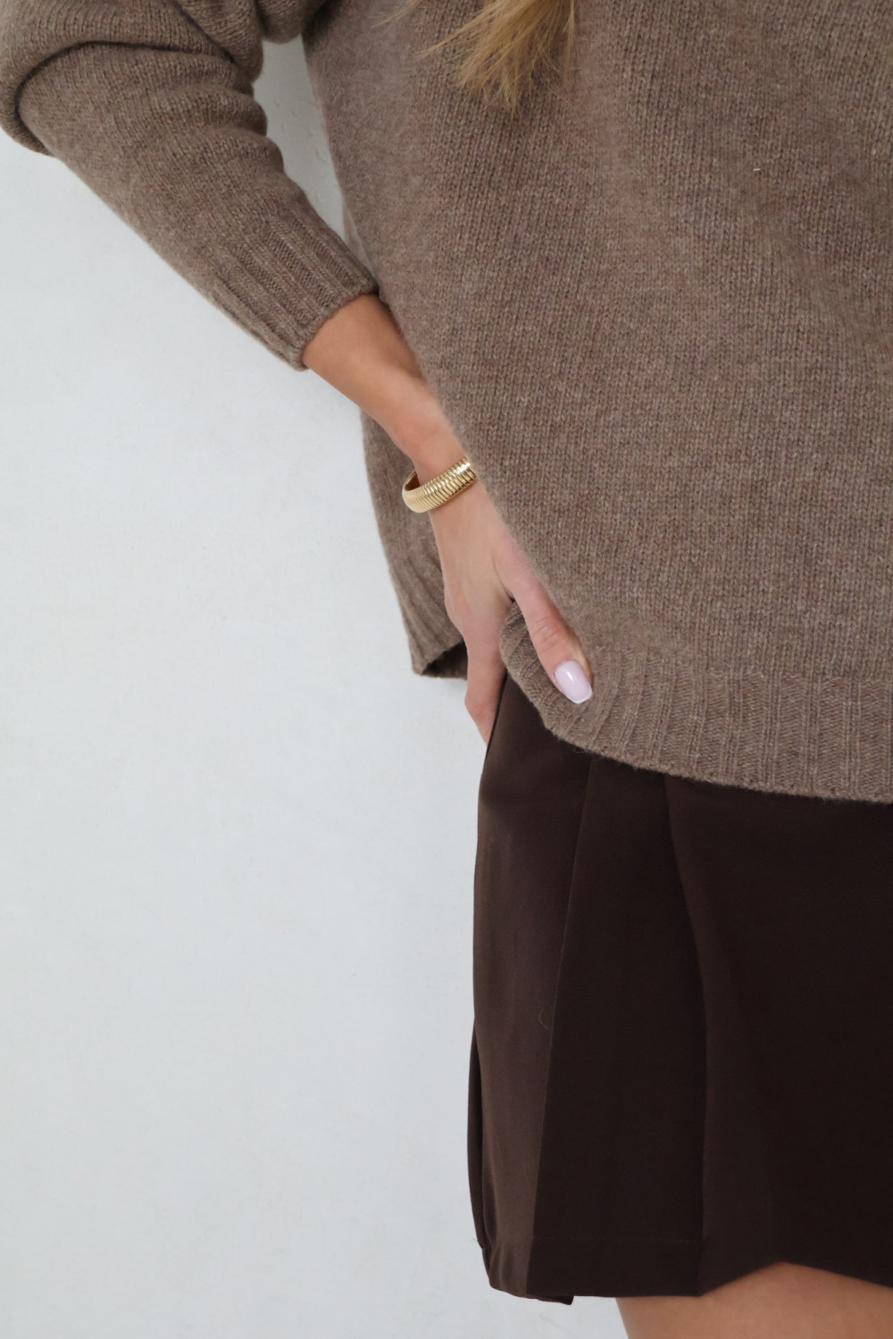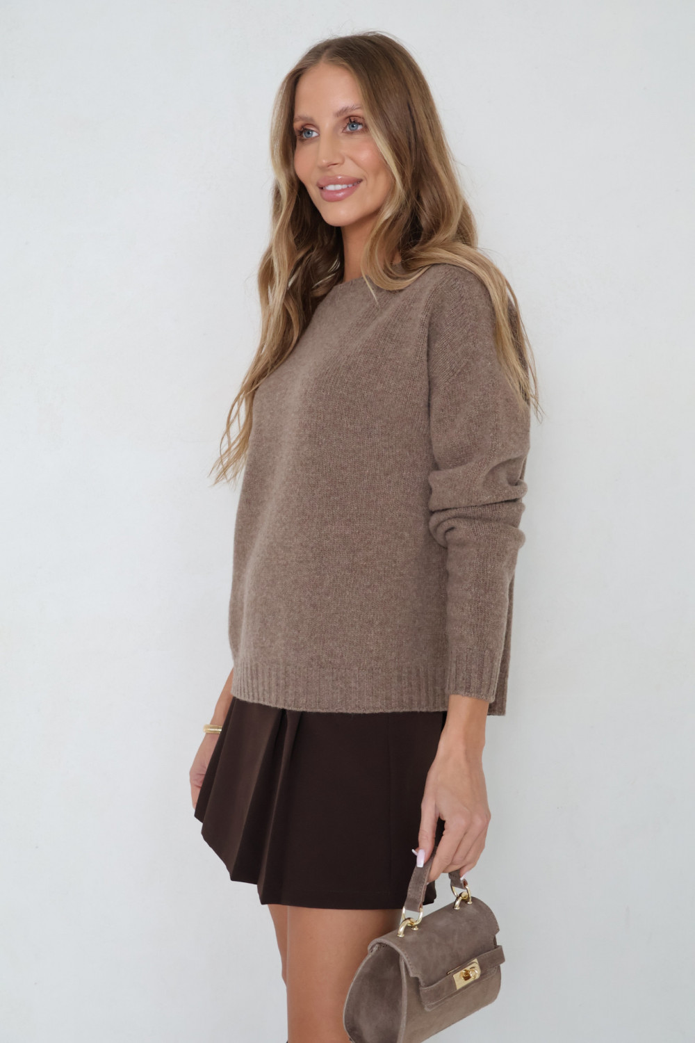 Klasyczny krój modelu LANCASTER nadaje mu ponadczasowy charakter, a neutralny odcień taupe ułatwia zestawianie swetra z różnymi elementami garderoby, od jeansów po spódnice i eleganckie spodnie. Model łączy luksus materiału z komfortem noszenia.