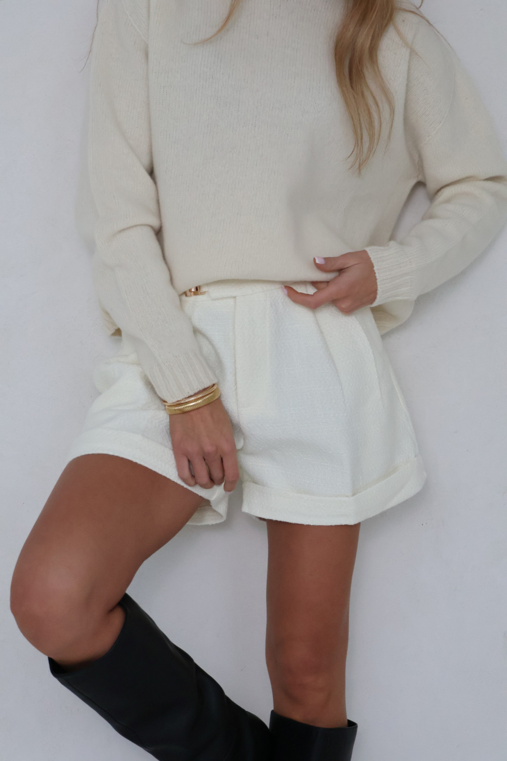 Szorty z wysokim stanem i klamrą białe BIARRI