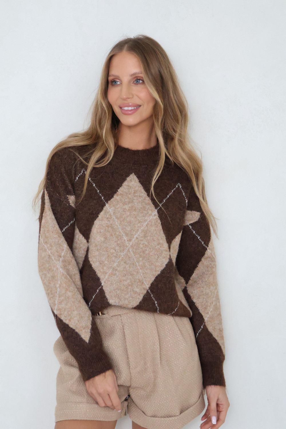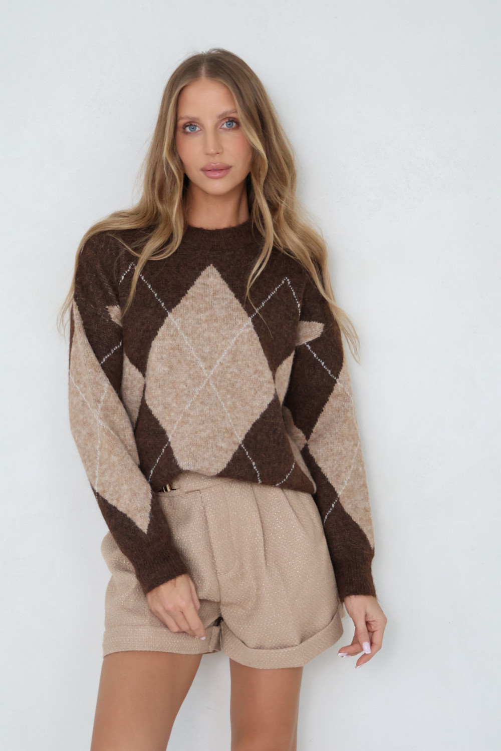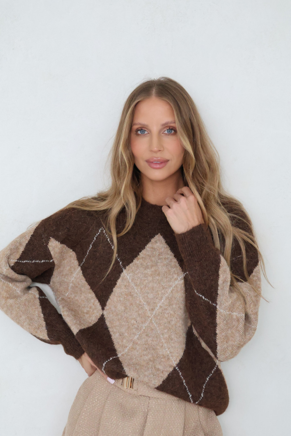 Sweter ROOMBY w romby wykonany jest z miękkiego, przyjemnego w dotyku materiału, który zapewnia komfort noszenia przez cały dzień. Klasyczny fason i subtelny wzór w romby nadają mu ponadczasowy charakter, dzięki czemu sweter sprawdzi się zarówno w codziennych, jak i bardziej eleganckich stylizacjach.