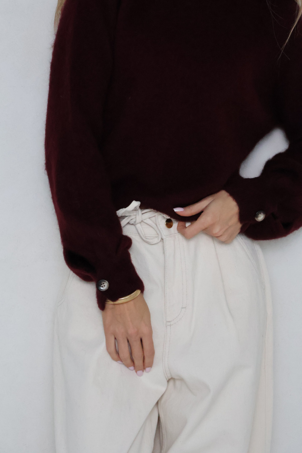 Sweter MERA wykonany jest z połączenia kid moheru i wełny merino, co zapewnia lekkość, puszystość i naturalne ciepło. Miękki i delikatny dla skóry materiał daje komfort noszenia przez cały dzień, a klasyczny fason nadaje swetrowi ponadczasowy charakter.