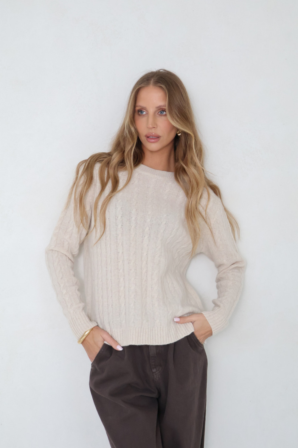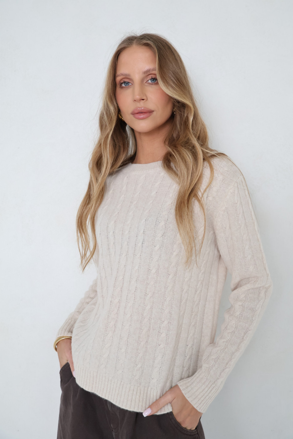 Sweter premium 100% wełna merino krem CAMBRIDGE