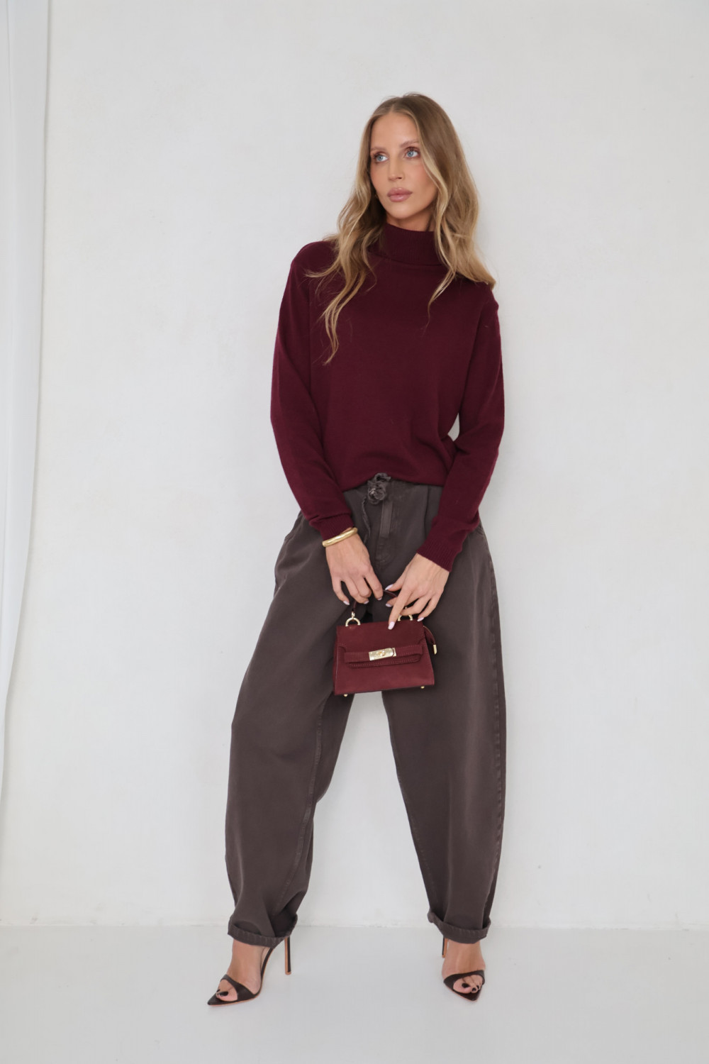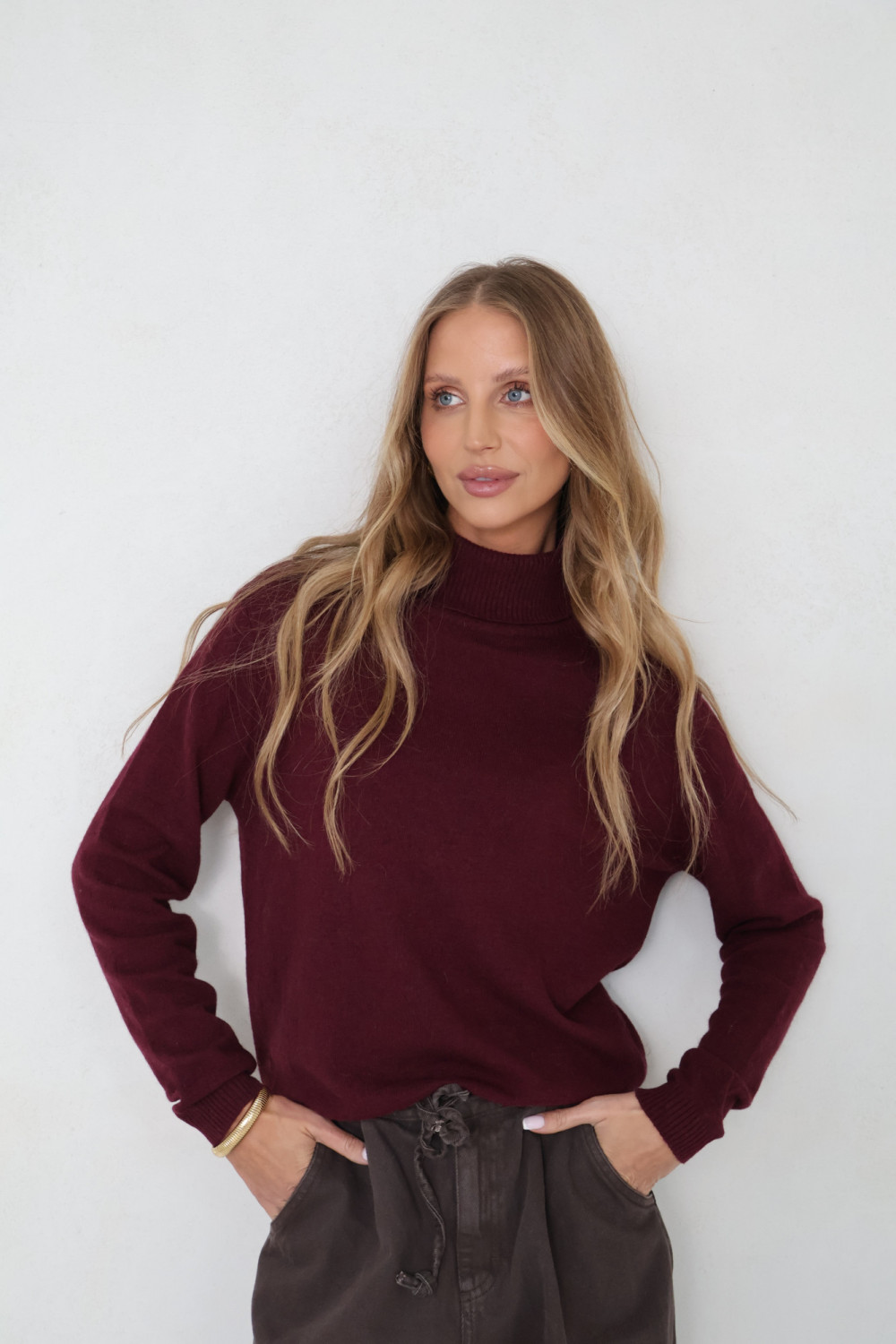 Głęboki odcień śliwki wprowadza wyrafinowany akcent do stylizacji, który łatwo zestawić zarówno z casualowymi spodniami, jak i eleganckimi spódnicami czy spodniami garniturowymi. Golf VEIL łączy luksus materiału z ponadczasowym fasonem.