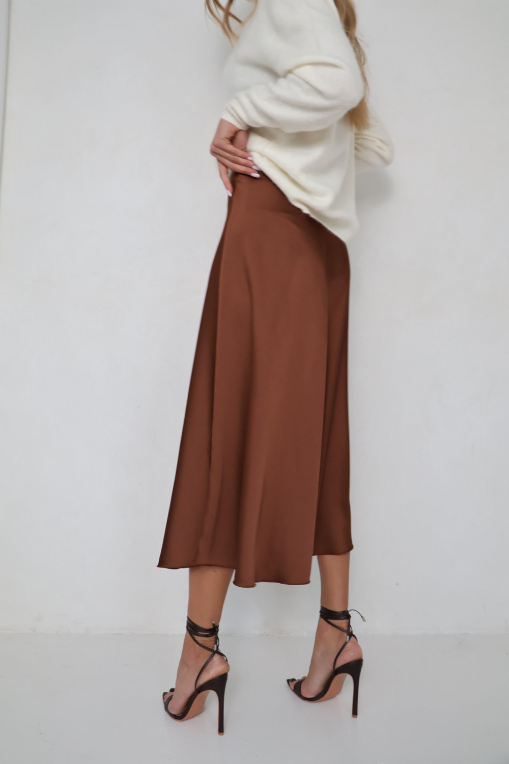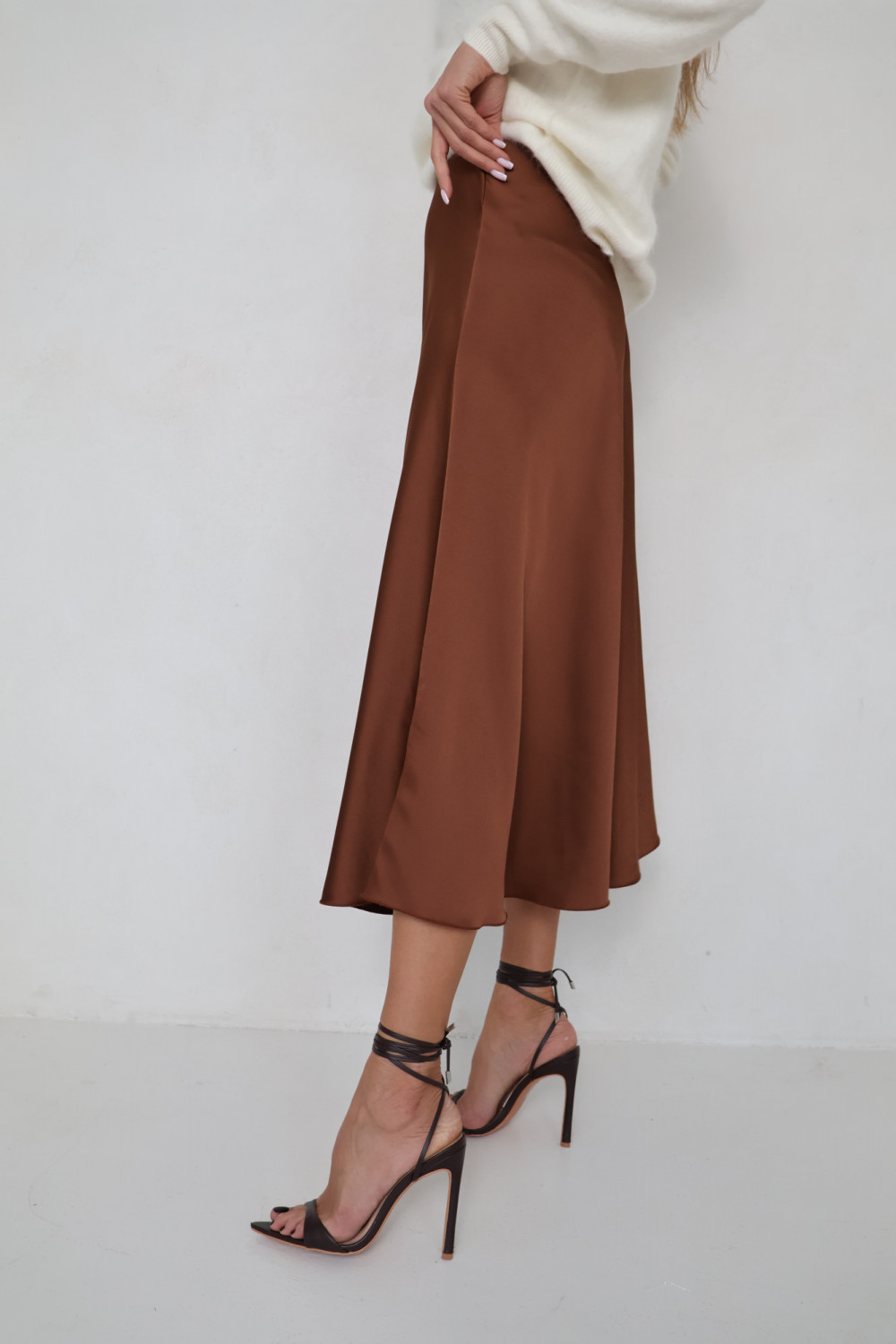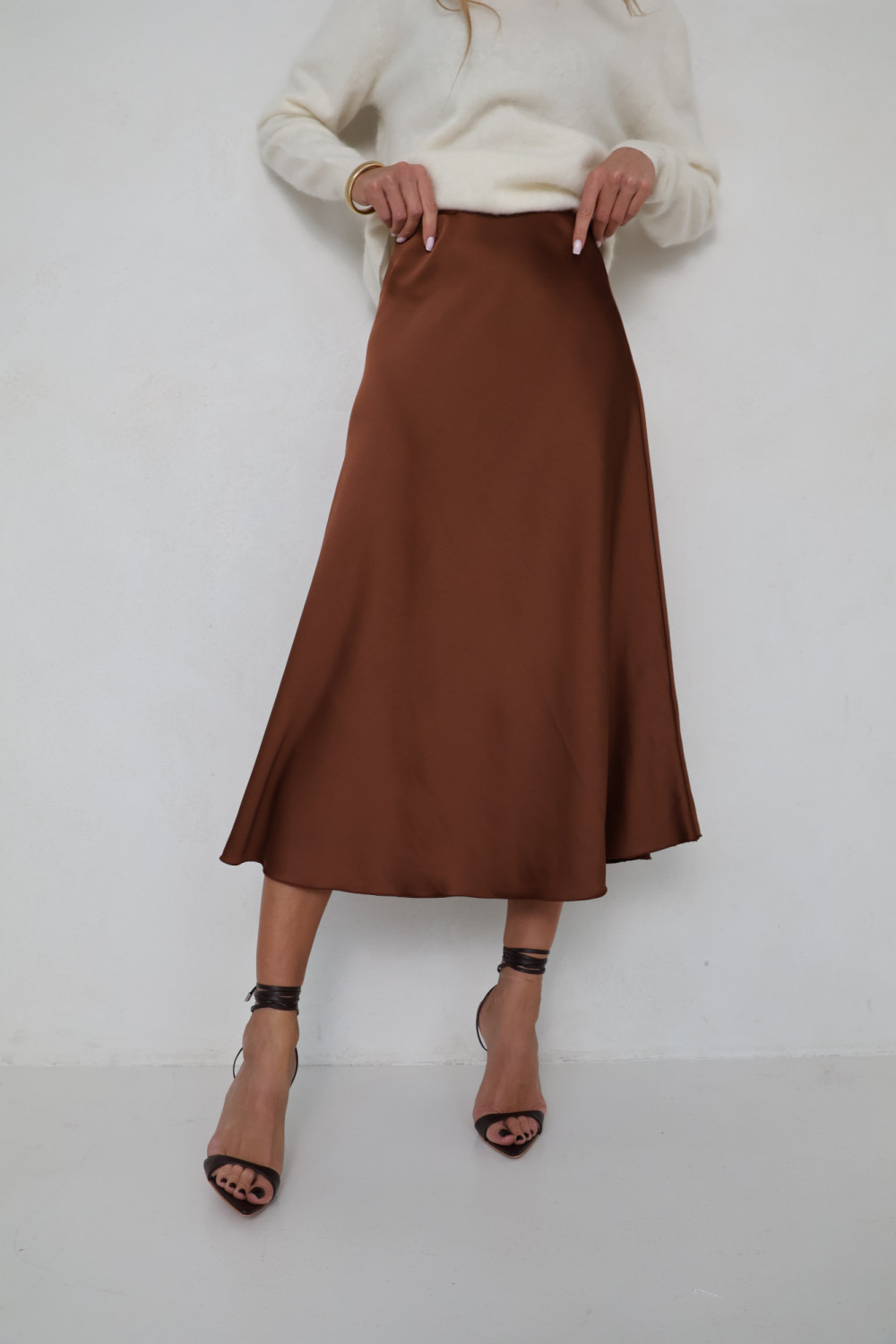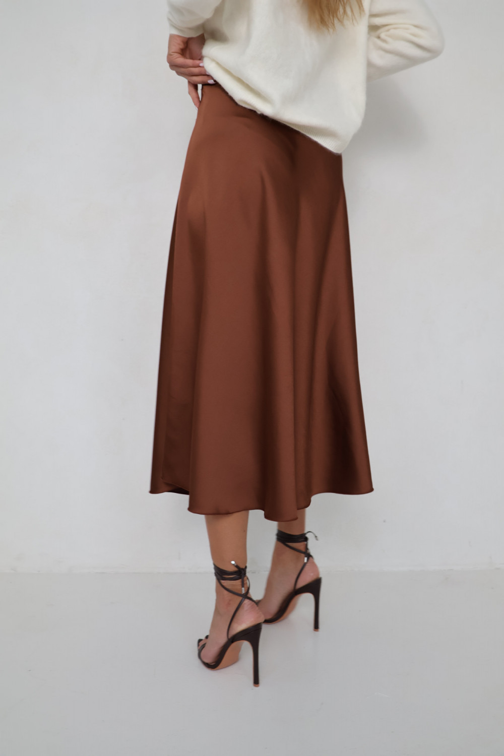 Spódnica 100% wiskoza satynowa brąz FIONA