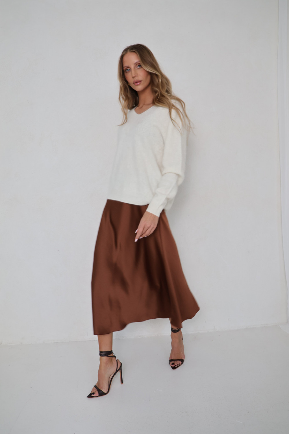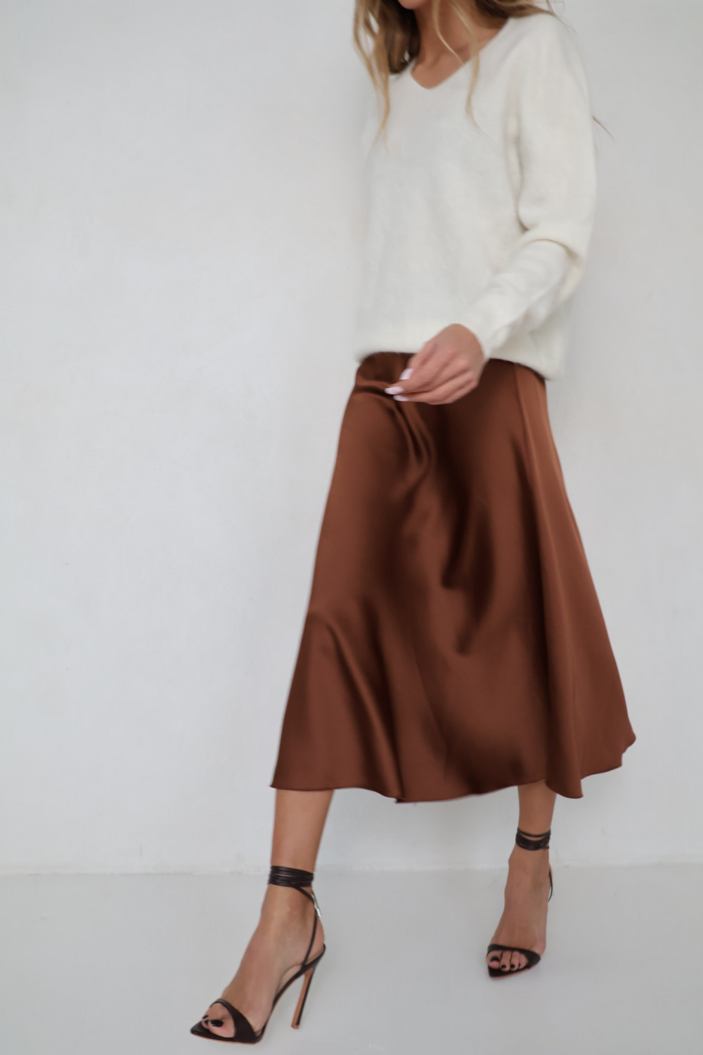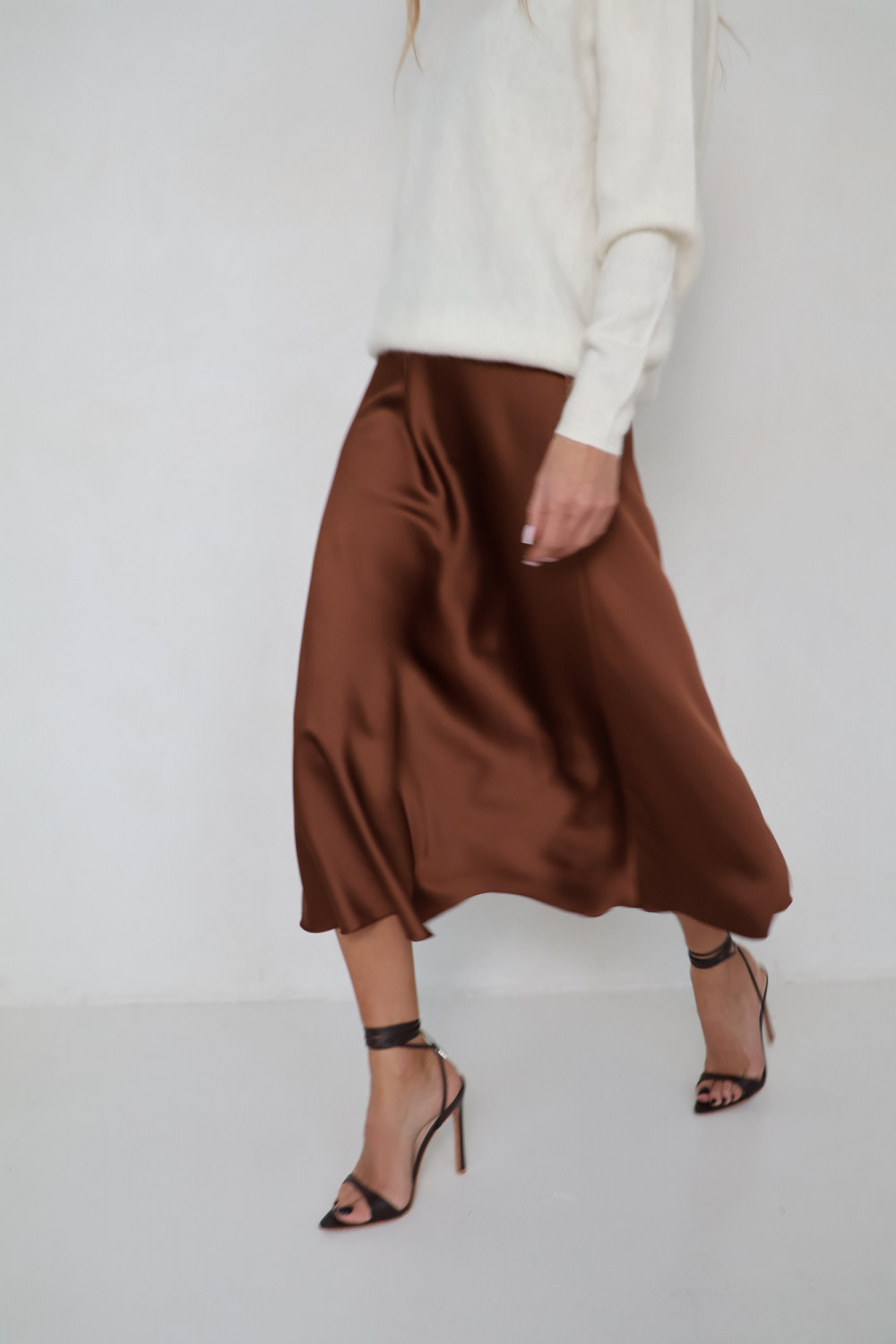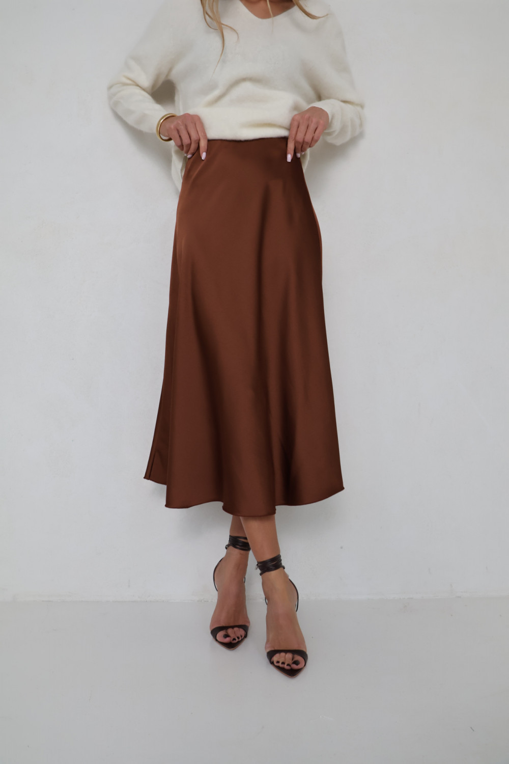 Spódnica 100% wiskoza satynowa brąz FIONA