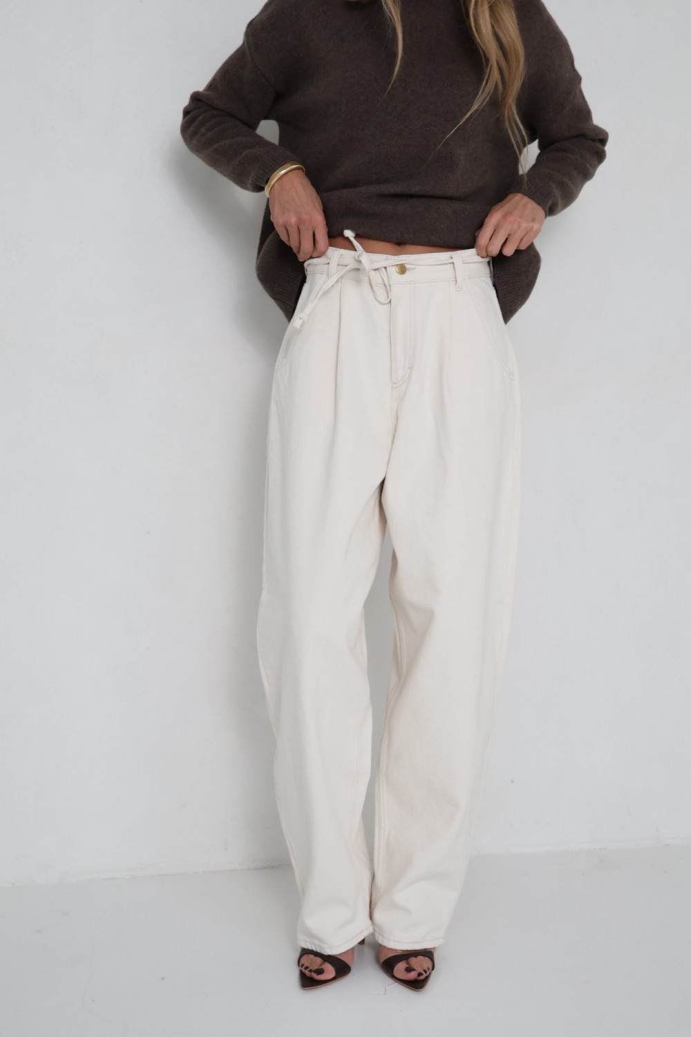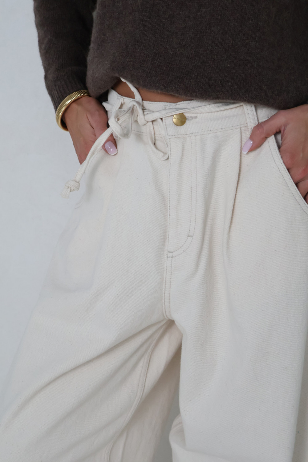 Kremowy odcień wprowadza neutralny, elegancki akcent, który łatwo zestawić z różnymi elementami garderoby. Spodnie JACKIE łączą wygodę, nowoczesny fason i ponadczasowy styl, sprawdzając się w codziennych i bardziej wyszukanych zestawieniach.