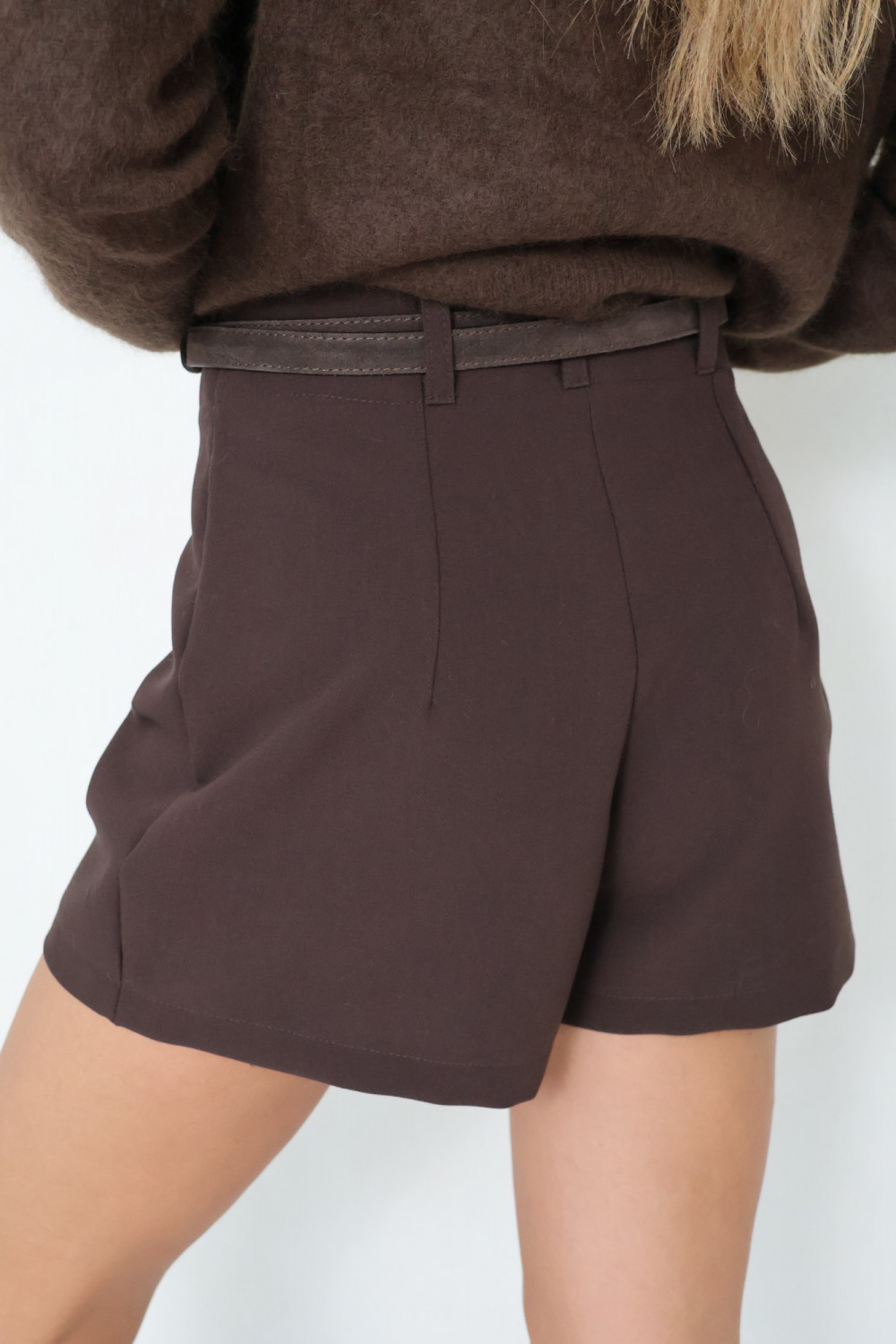 Czekoladowy kolor sprawia, że szorty łatwo zestawić z różnymi elementami garderoby, tworząc zarówno codzienne, jak i bardziej wyrafinowane stylizacje.